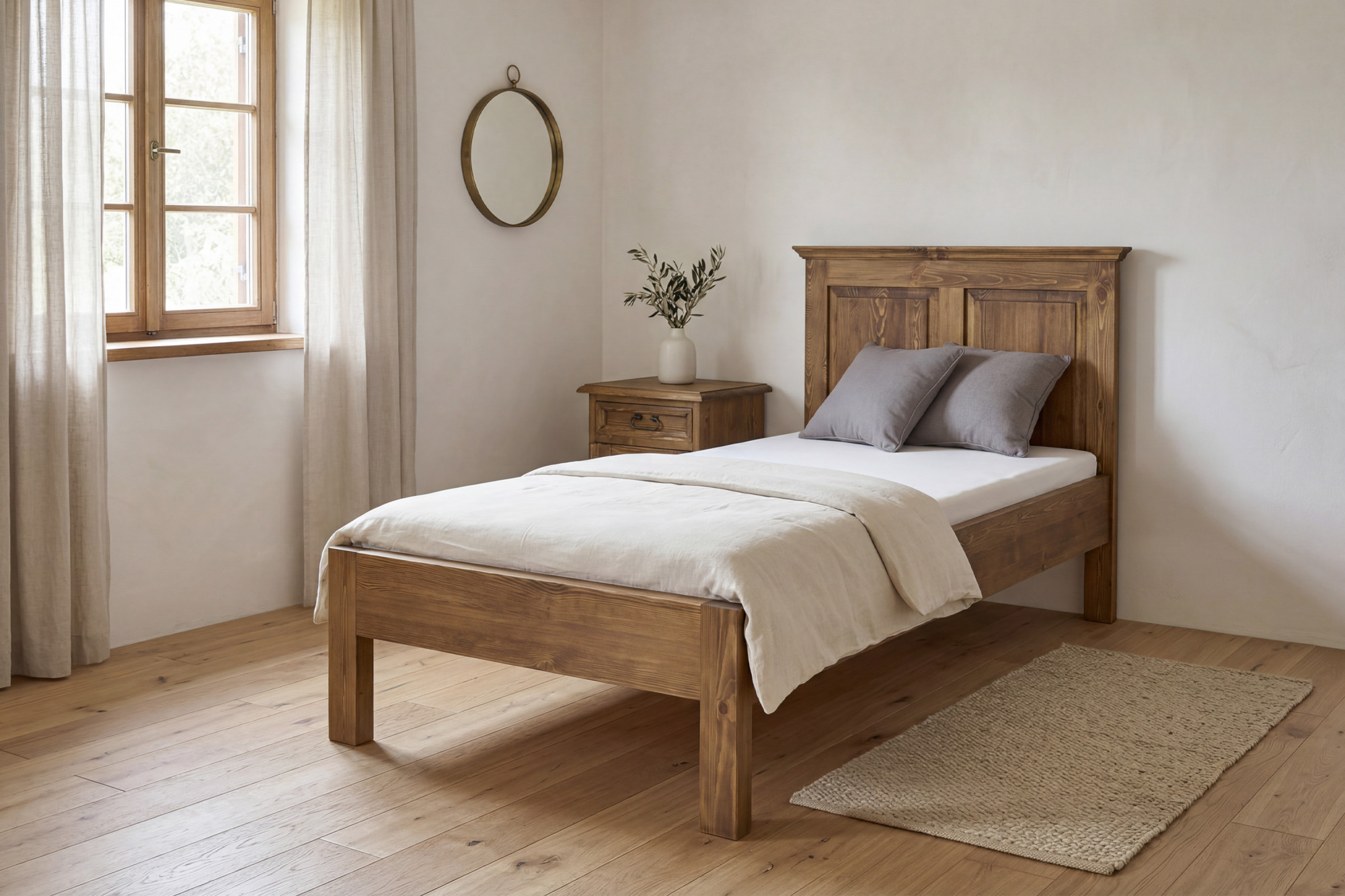 Jednolôžková rustikálna posteľ z masívu 90 x 200 cm – borovicová posteľ vo francúzskom štýle