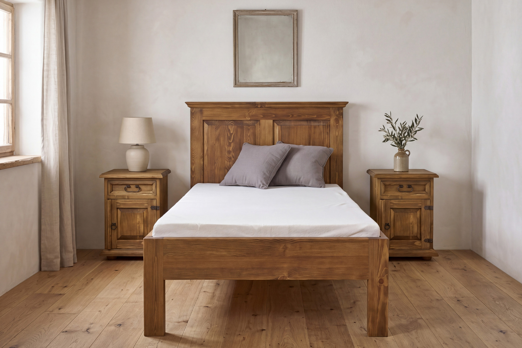 Rustikálny nábytok je ideálnou voľbou pre všetkých, ktorí chcú vytvoriť harmonický interiér s dušou. Borovicový masív ponúka nielen krásny prírodný vzhľad, ale aj veľmi dobrú odolnosť. Posteľ sa skvele hodí do spální zariadených vo vidieckom, provensálskom i tradičnom štýle a ľahko ju skombinujete s ďalšími kusmi rustikálneho nábytku.