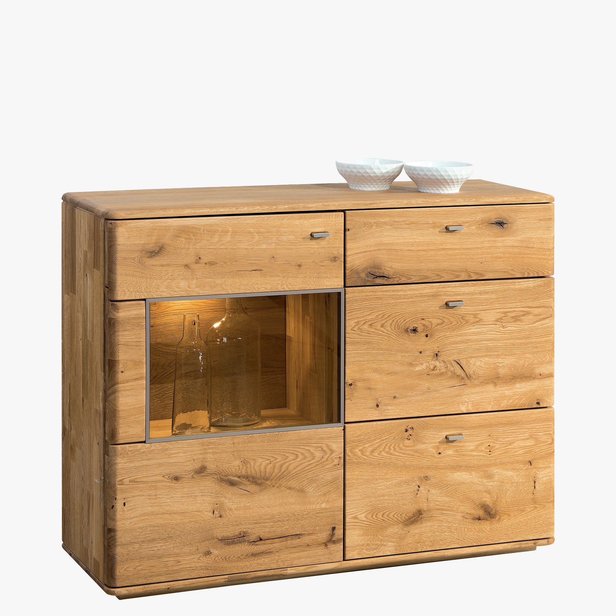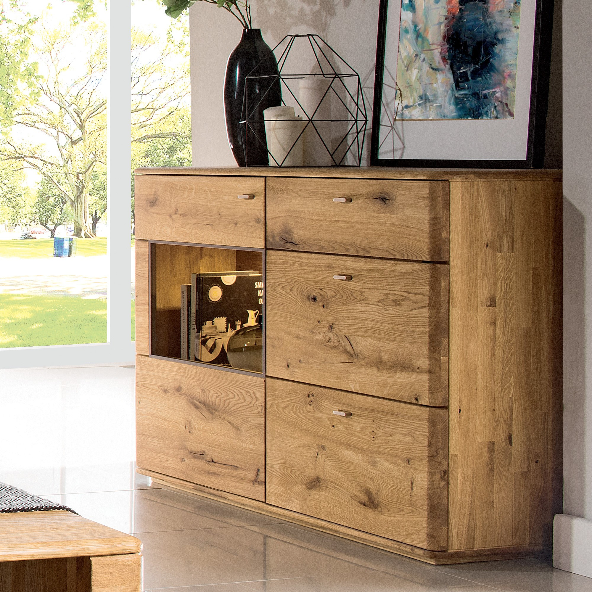 Nízka komoda s jednou presklenou časťou z dubu ON