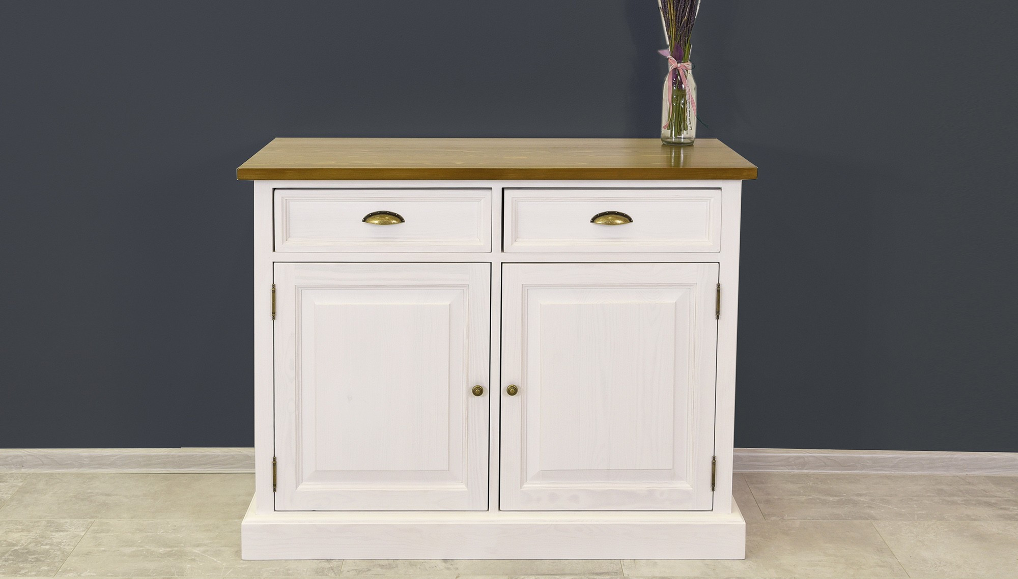 Komoda ponúka praktické úložné priestory – v strednej časti nájdete dvierka s vnútornou policou a horná časť je doplnená o dva samostatné šuplíky, kam pohodlne uložíte drobnosti. Vďaka svojmu nadčasovému prevedeniu je možné ju ľahko zladiť s ďalším nábytkom z kolekcie Provence, čím vytvoríte harmonický interiér. Samozrejmosťou je FSC certifikát dreva, ktorý potvrdzuje zodpovedný pôvod materiálu. Rustikálny charakter dotvárajú ručne kované úchytky, ktoré sú povrchovo ošetrené, odolné a nepúšťajú farbu. Táto komoda je ideálnou voľbou pre tých, ktorí hľadajú spojenie praktickosti, elegancie a prírodného štýlu.