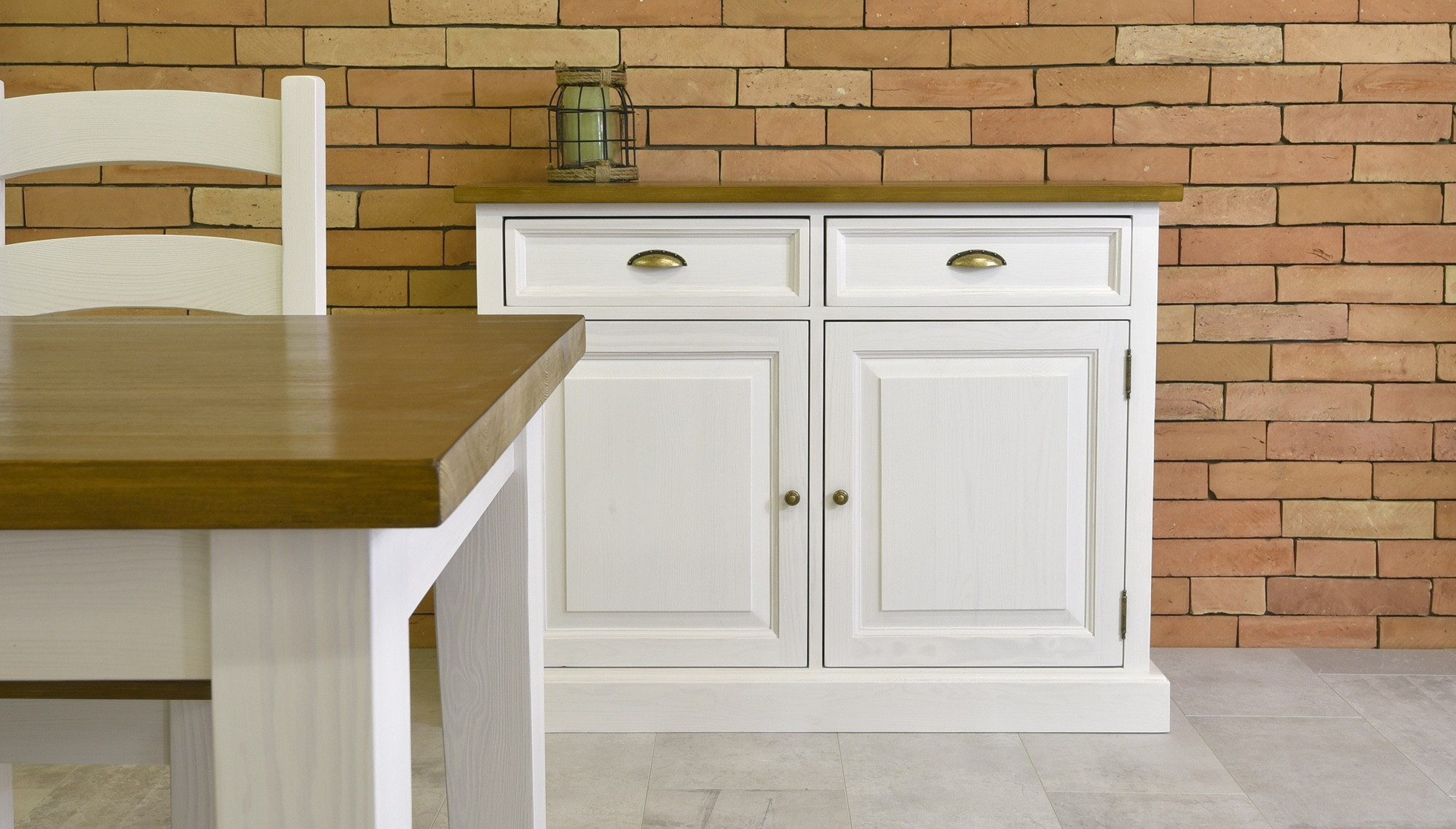 Drevená komoda v provence štýle je elegantný kus nábytku, ktorý vnese do vašej domácnosti kúzlo francúzskeho vidieka. Vyrobená je z 100% masívneho borovicového dreva, čo zaručuje pevnosť, stabilitu a dlhú životnosť. Komoda je dodávaná už kompletné zmontovaná, takže ju môžete začať používať ihneď po doručení. Povrchová úprava kombinuje hnedú lakovanú vrchnú dosku a biele ekologicky nezávadné časti, ktoré sú ošetrené voskom a jemným filmom laku. Táto kombinácia chráni nábytok proti každodennému opotrebovaniu a zároveň zvýrazňuje prirodzenú štruktúru dreva.