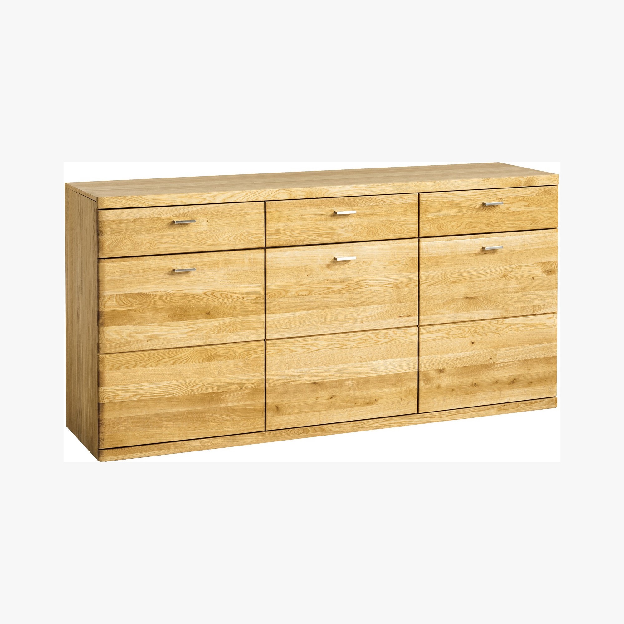 Komoda je vyrobená v kombinácii z prírodného dubového dreva a prírodnej dubovej dyhy, komoda sa dodáva už zmontovaná a je ošetrená kvalitným prírodným olejom. Komoda Boston typ 49 má v hornej časti 3 zásuvky s dojazdom soft-close. V spodnej časti sú 3 dvierka s vnútornou policou. Výhodou je tiež oznámenie termínu vašej novej obývacej zostavy aspoň 48 hodín vopred na presne stanovený čas.