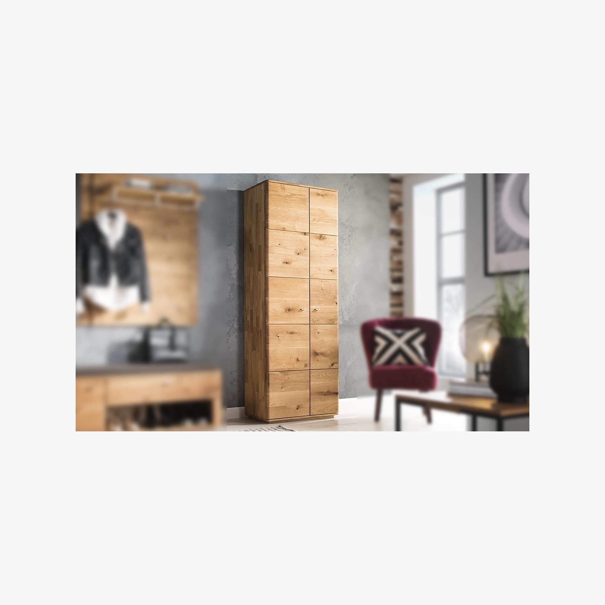 Luxusná skriňa do chodby vyrobená z dubového dreva. Skriňa typ Texas 01 sa dodáva už zložená. Vo vnútornej časti sa nachádzajú 2 police a tyč na vešanie kabátov. Predné dvierka aj vnútorná konštrukcia sú vyrobené z dubového dreva. Dvierka sú so zatváraním soft-close. Skriňu je potrebné pripevniť aj na stenu.