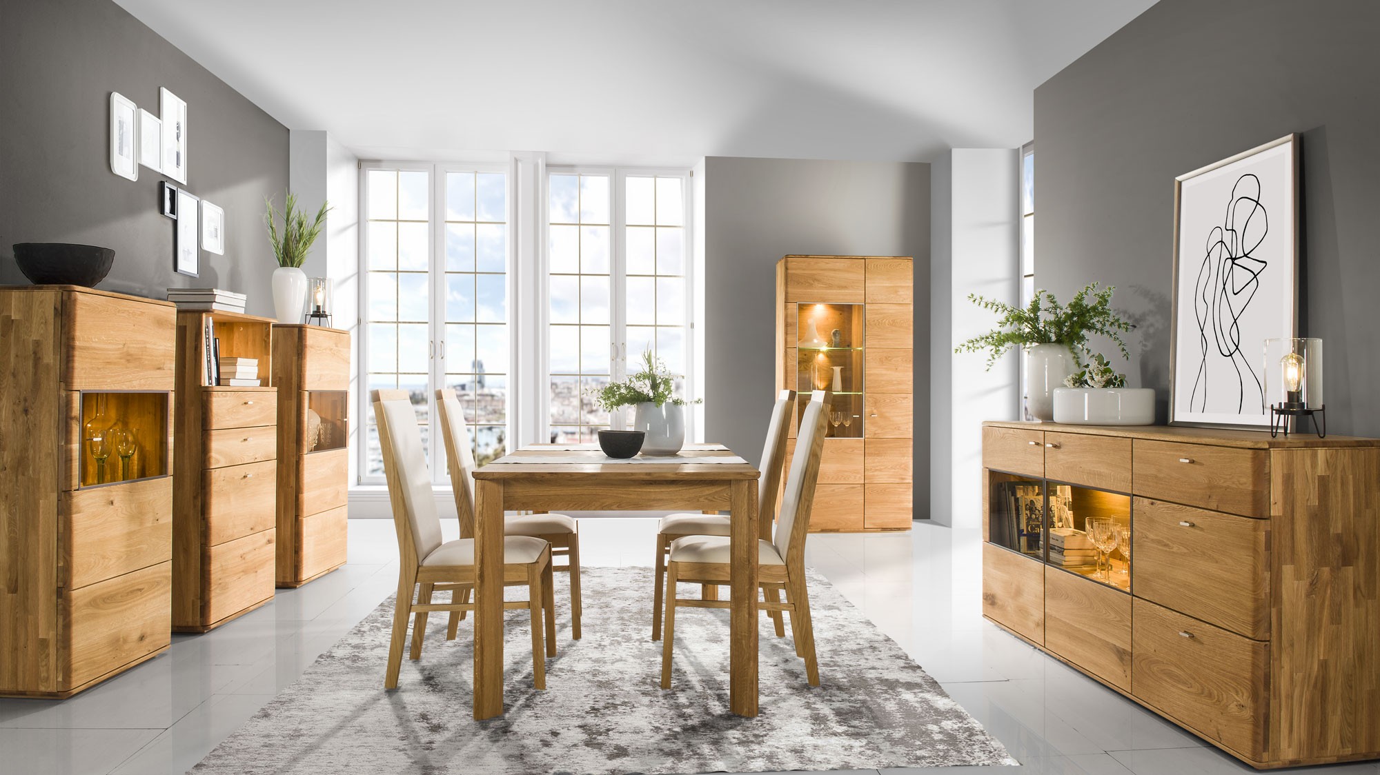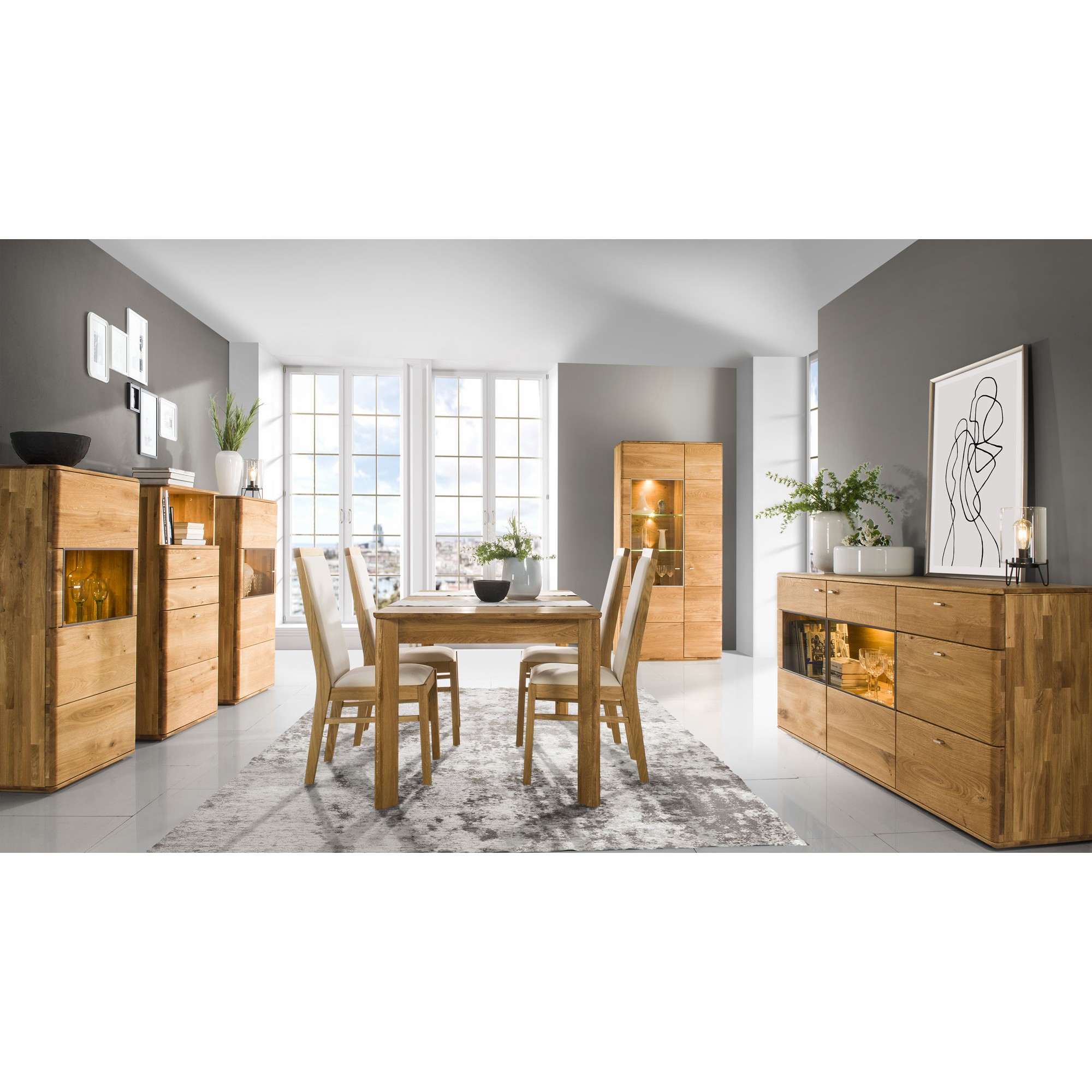 Exkluzívny nábytok vyrobený zo 100% dubového masívu, ktorý reprezentuje kolekcia Texas. Nábytok je určený pre náročného klienta, ktorý si potrpí nielen na skutočne prírodný nábytok ale aj dizajnové prevedenie. Nábytok je tak určený pre generácie, kde jeho hodnota bude rokmi len rásť. Celá kolekcia je ošetrená značkovým Nemeckým olejom LIVOS , čo je dokonalá ochrana pre dubový nábytok, kde na dotyk cítite stále prírodné drevo a zároveň drevu dovolí dýchať. Olejn je ekologicky nezávadný. Nábytok z kolekcie texas je brúsený a dôsledne vyberáme drevo. Nábytok zámerne obsahuje vybrané suky v dreve, ktoré sú aj zámerne vypadnuté, prípadne umelo dotvárané praskliny, ktoré sa kombinujú s prírodnými. Získate tak autentický kus prírodného nábytku, kde je precízne vyberané drevo tak aby jednotlivé kresby dreva k sebe pasovali.