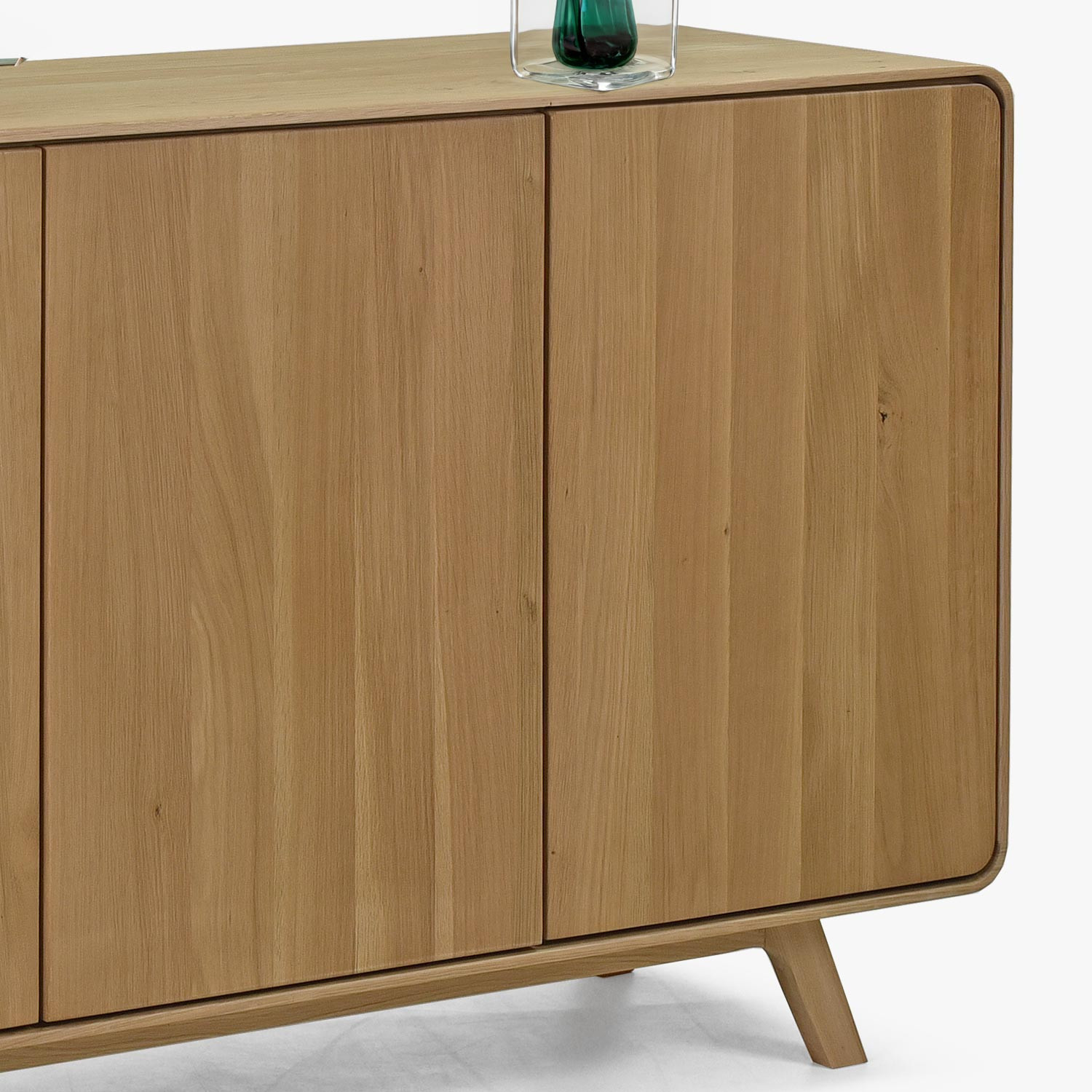 Prinášame vám exkluzívnu drevenú komodu z našej kolekcie Avalon, ktorá bola navrhnutá s ohľadom na vaše potreby a estetické požiadavky. Táto dubová komoda do spálne alebo do iných priestorov vášho domova je vyrobená z kvalitného dubového dreva s FSC certifikátom, čo zaručuje, že materiál pochádza z udržateľne obhospodarovaných lesov. Vrchná vrstva komody je ošetrená prírodným olejom v farbe dub biely, ktorý nielen zvýrazňuje prirodzenú krásu dreva, ale tiež chráni povrch pred každodenným opotrebením. Komoda ponúka široké využitie vďaka svojim trom dvierkam s otváraním typu "tip on" – po ľahkom zatlačení sa elegantne otvárajú, čo pridáva na praktickosti a modernom vzhľade nábytku. Vďaka moderným zaobleným rohom a dizajnu na nožičkách sa táto komoda stáva nielen úložným riešením, ale aj výrazným dizajnovým prvkom, ktorý obohatí každý interiér.