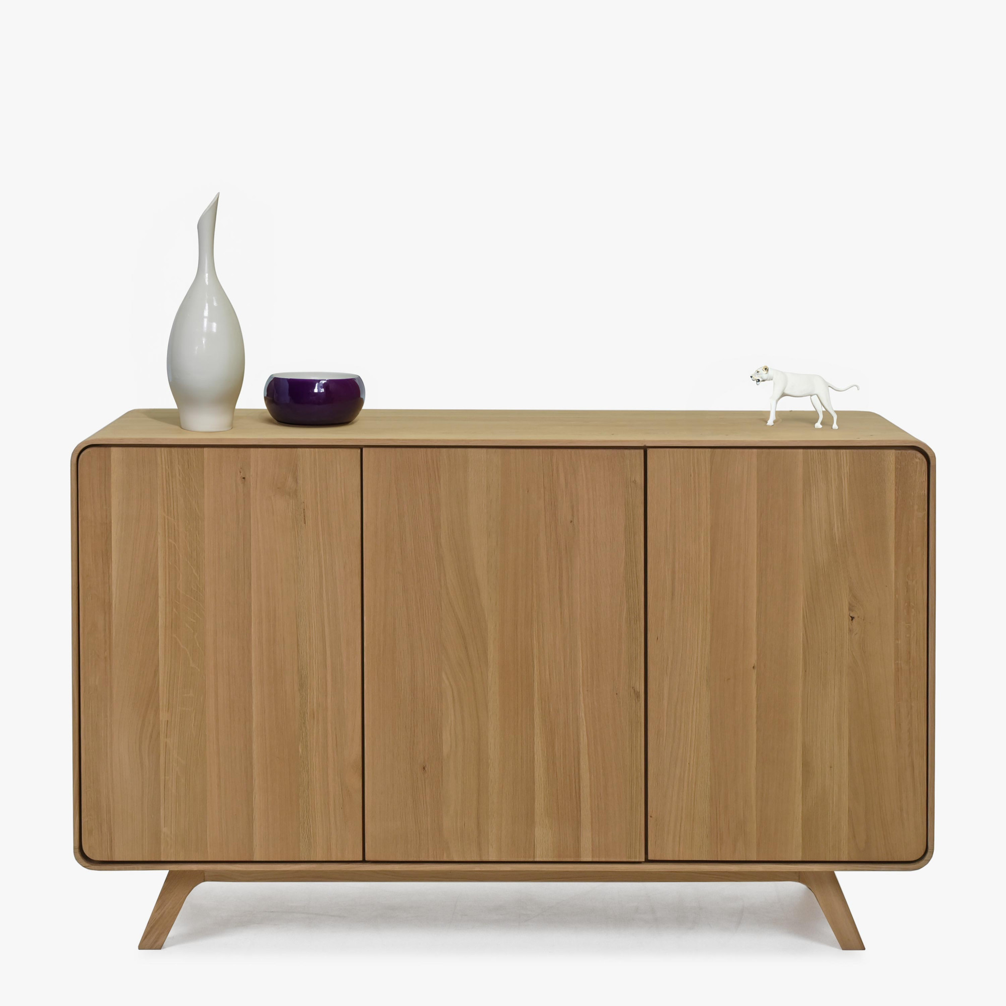 Drevená komoda dub biely s dvierkami na nožičkách - zaoblená