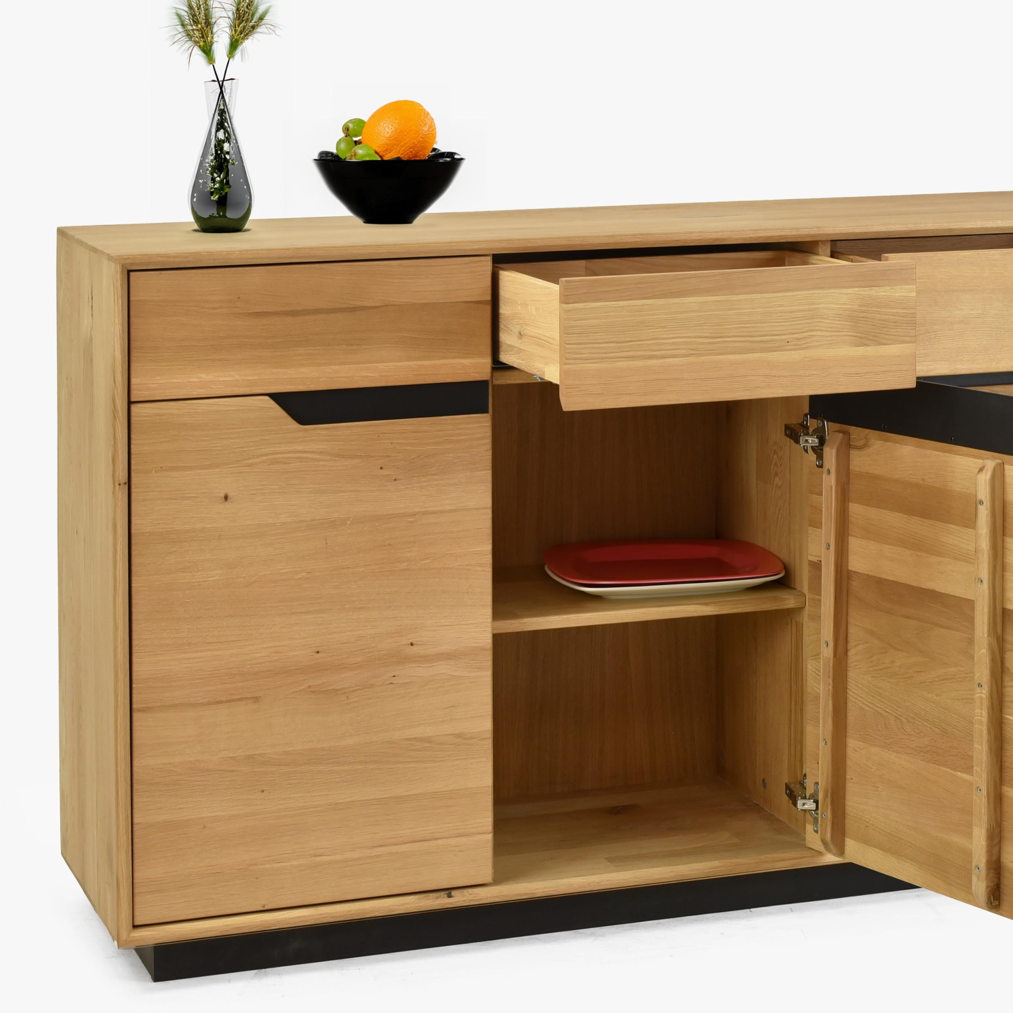 Každý kus nábytku Budapest je vyrobený s dôrazom na detail a kvalitu. Používame výlučne masívne dubové drevo s nadštandardnou hrúbkou 25 mm, ktoré zaručuje vysokú odolnosť a dlhú životnosť. Povrch nábytku je ošetrený prvotriednym dánskym olejom Woca v farbe dub natural, ktorý zvýrazňuje prirodzenú krásu dreva a zároveň ho chráni pred poškodením.
