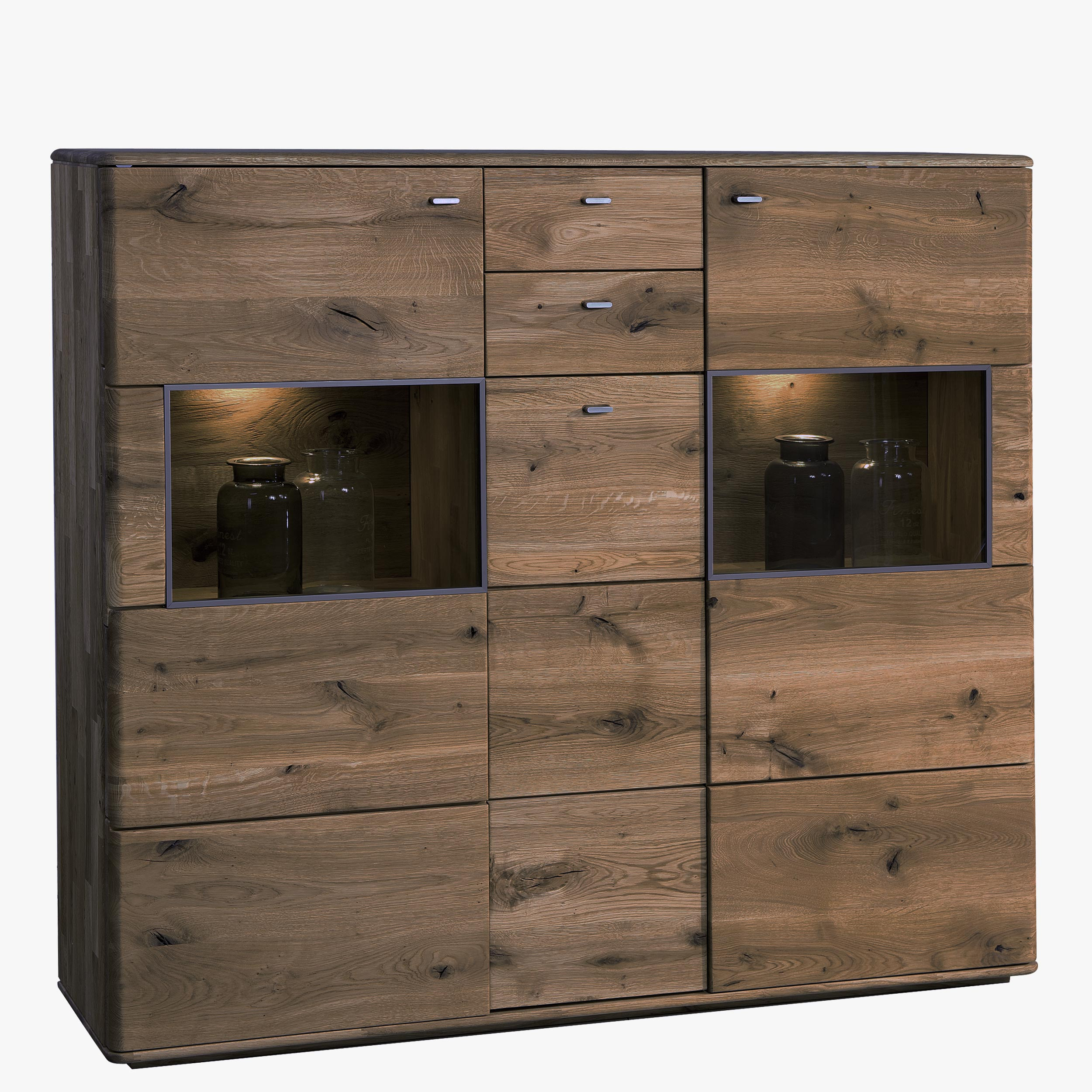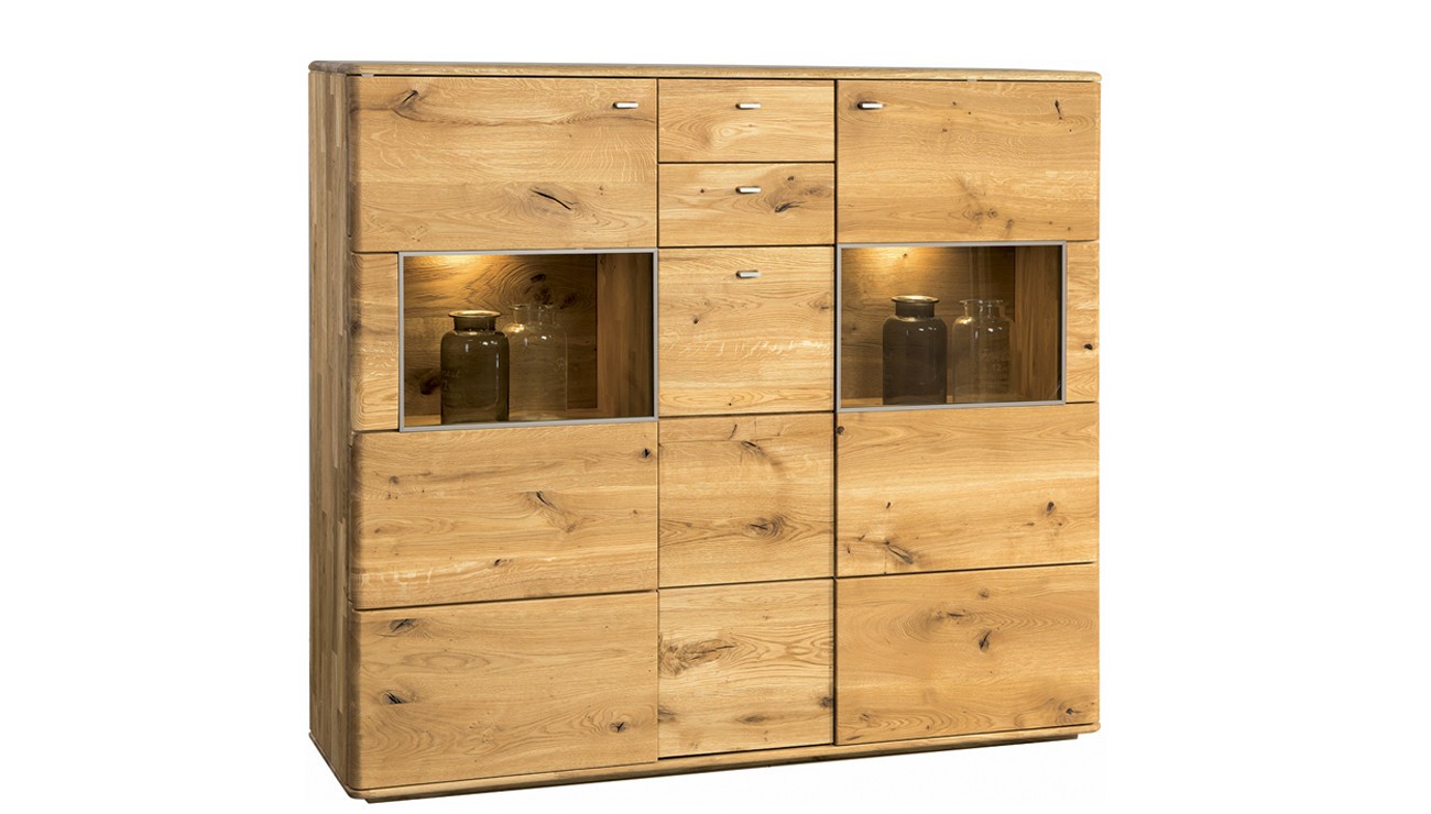 Vysoká a dlhá komoda s dvomi presklenými oknami, TYP 47 Texas farba dub pálený