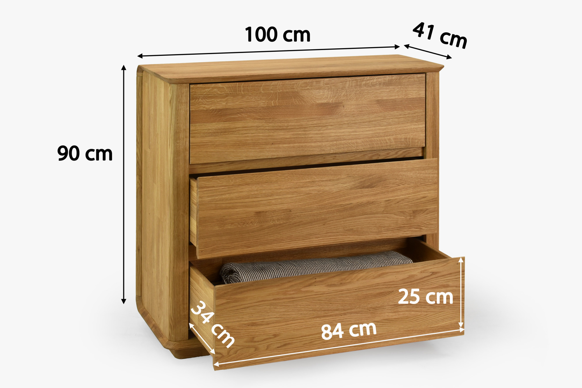 Prémiová dubová komoda so 3 zásuvkami, monako typ 43