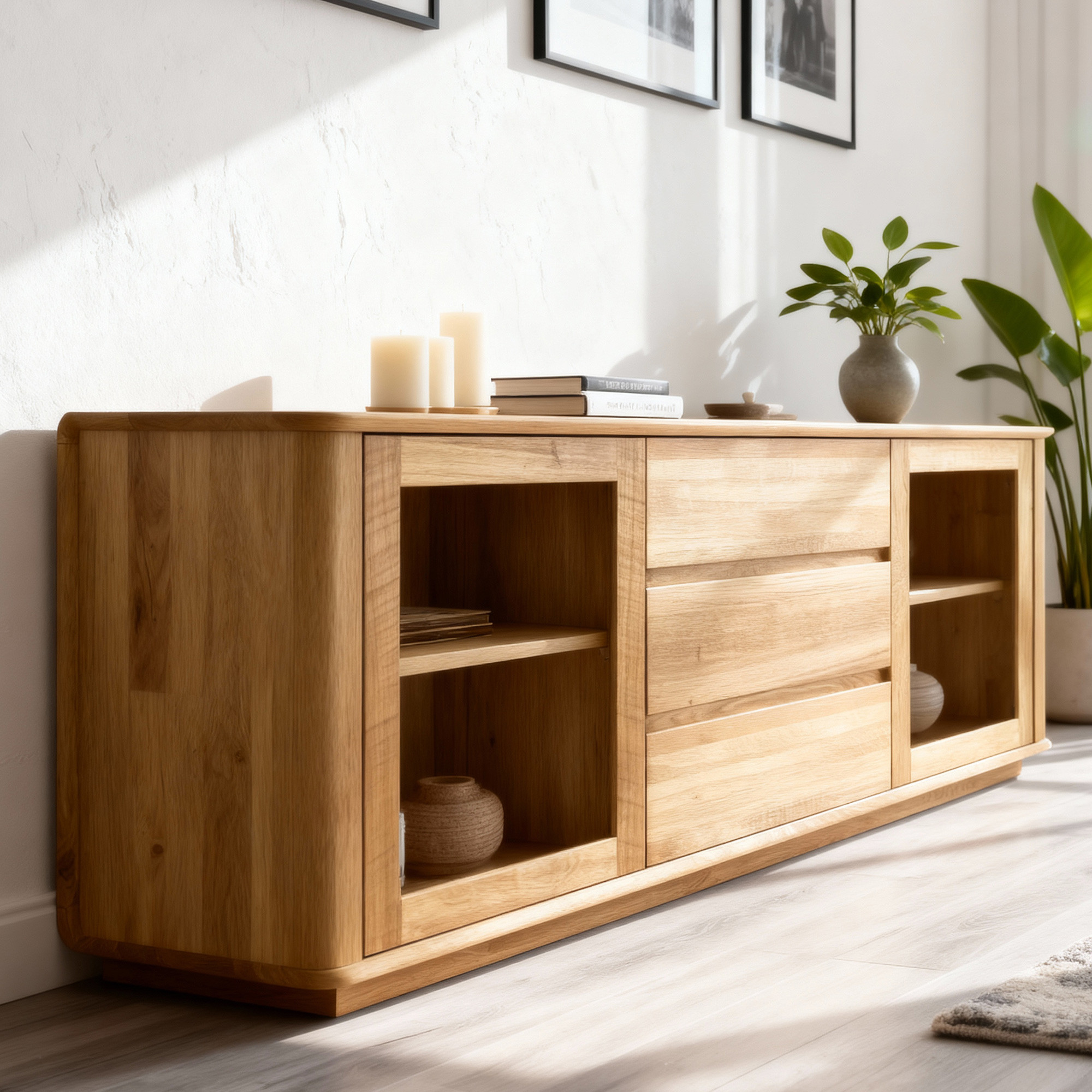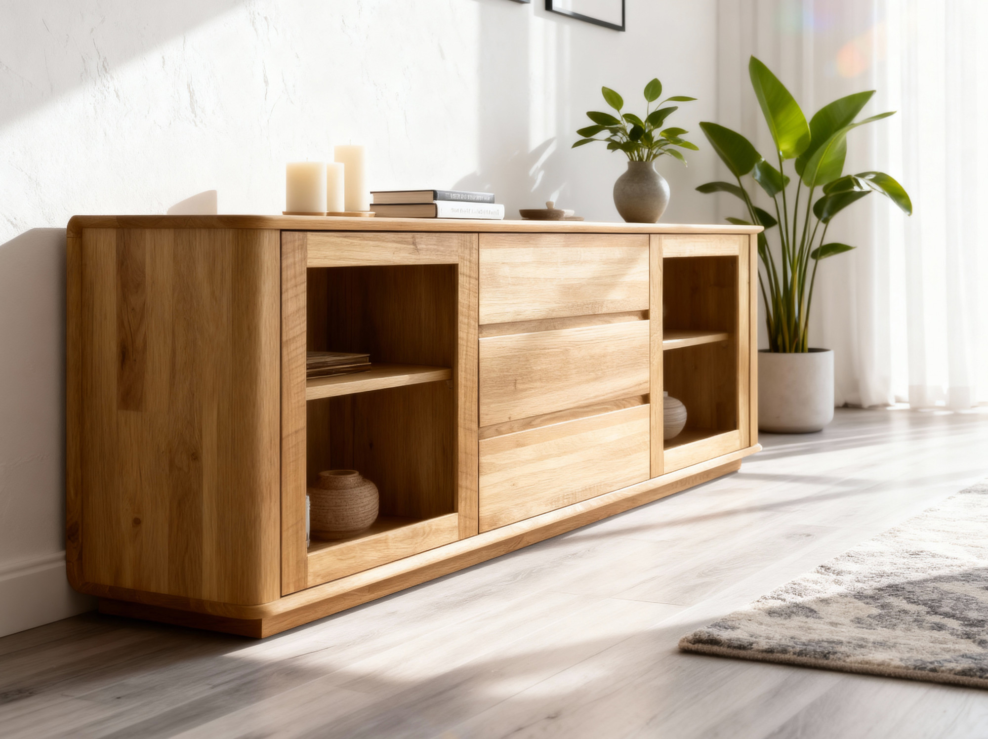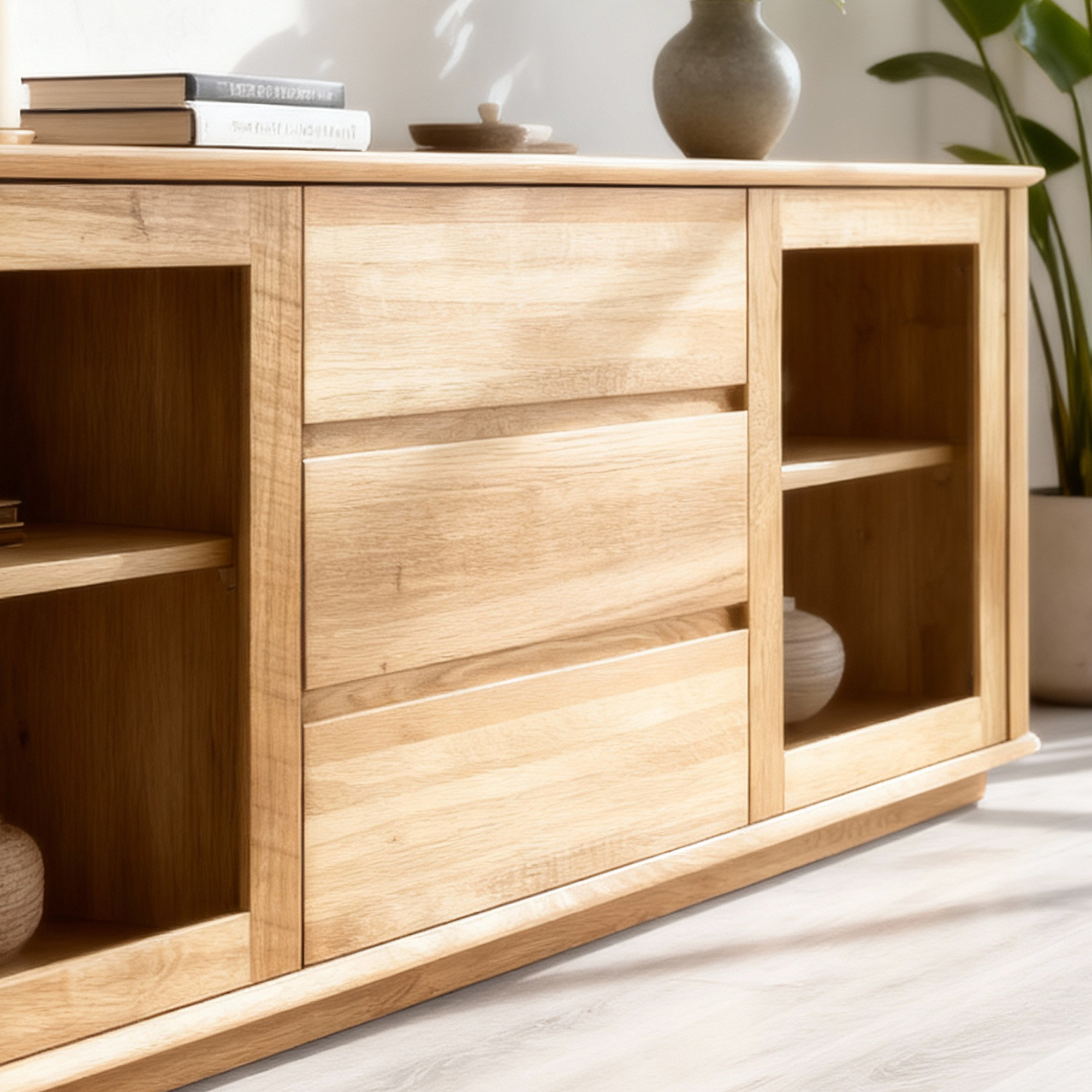 Prémiová dubová komoda s dvierkami a zásuvkami