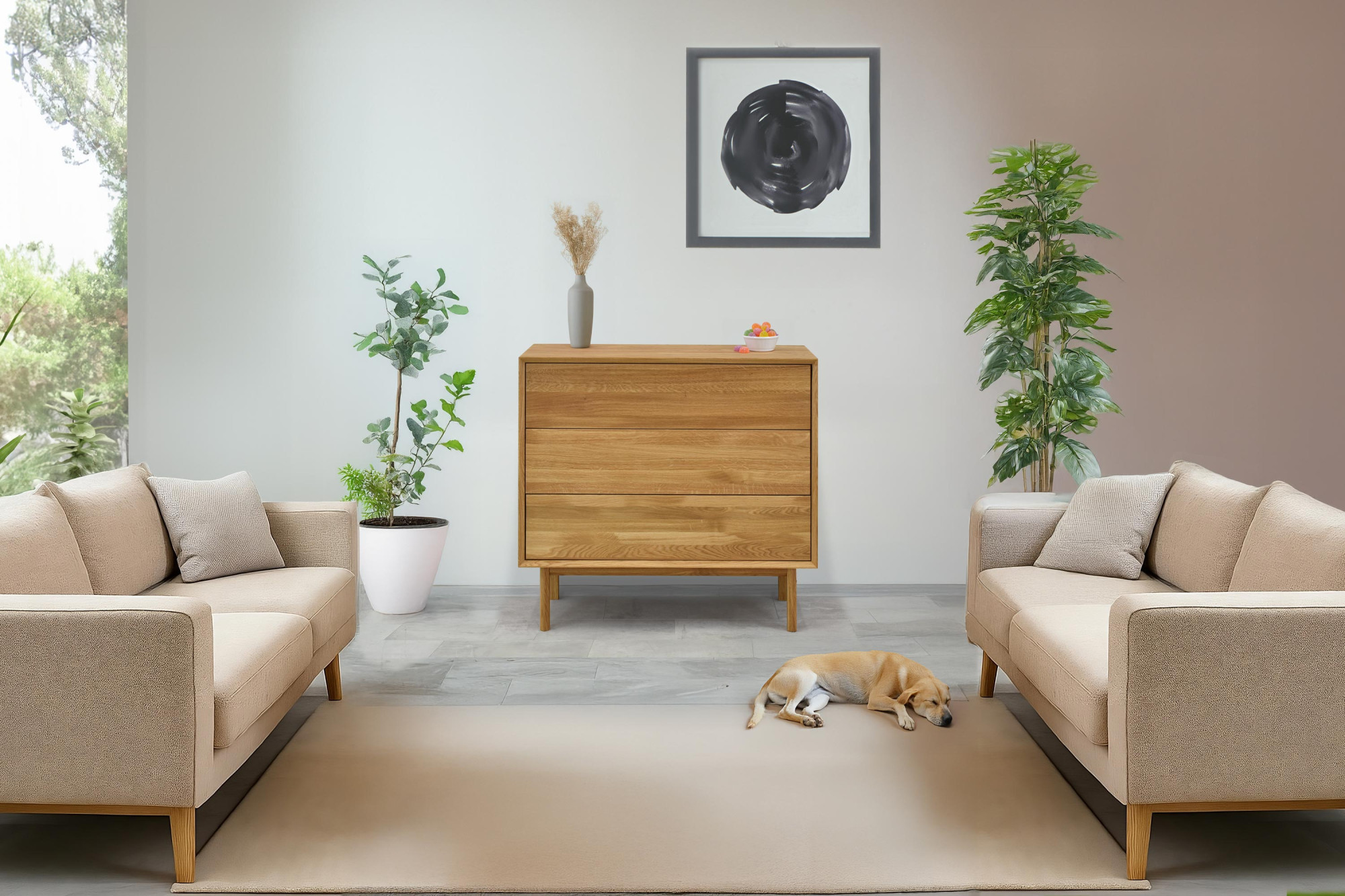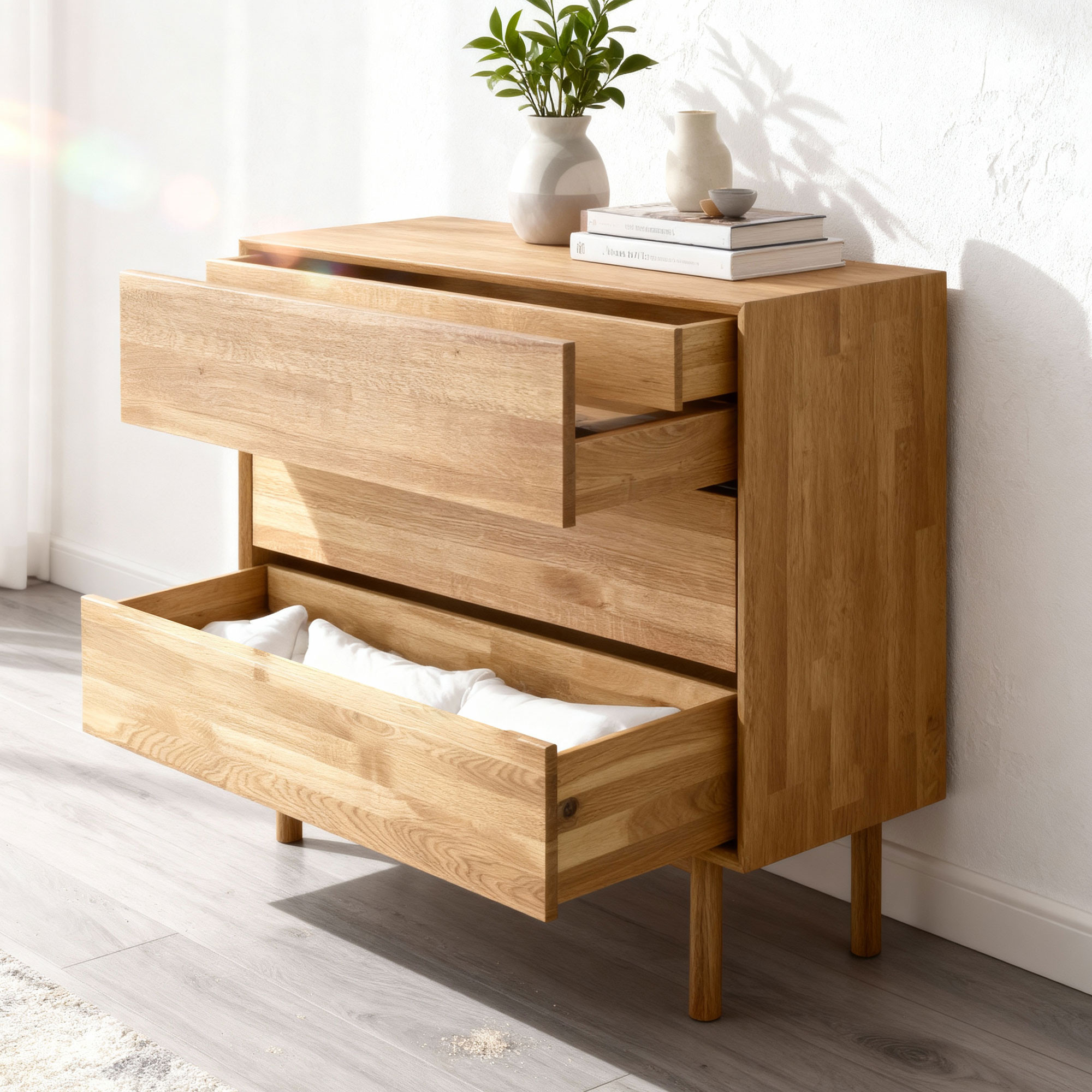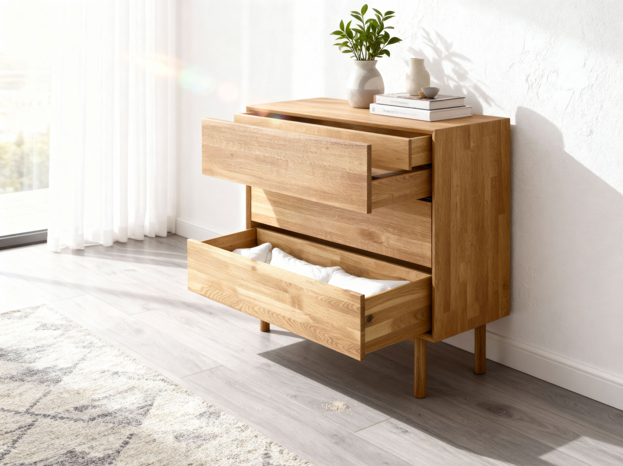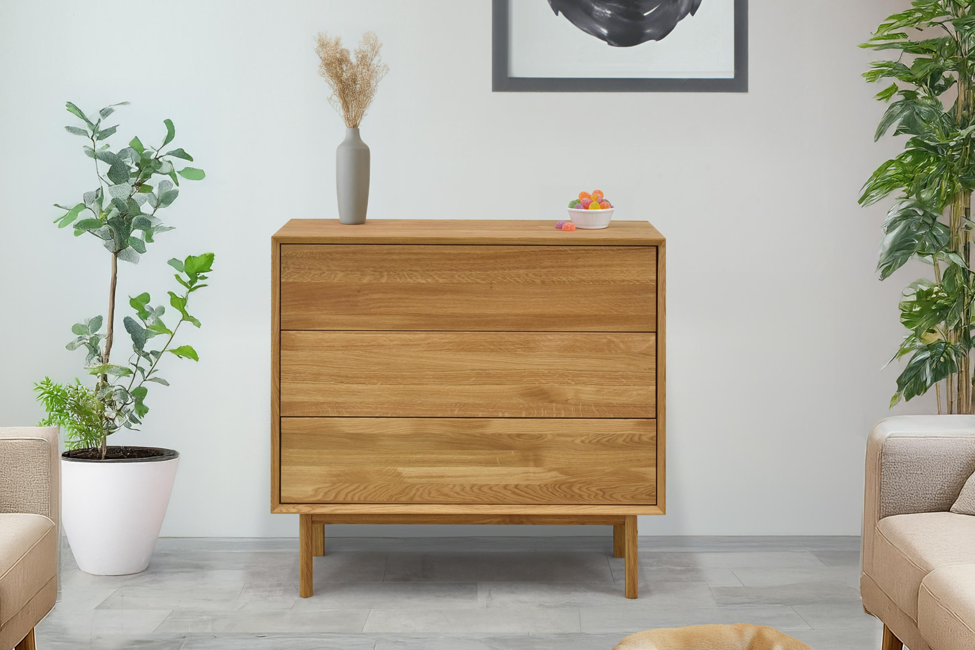 Dubová komoda so zásuvkami Oslo II na nožičkách