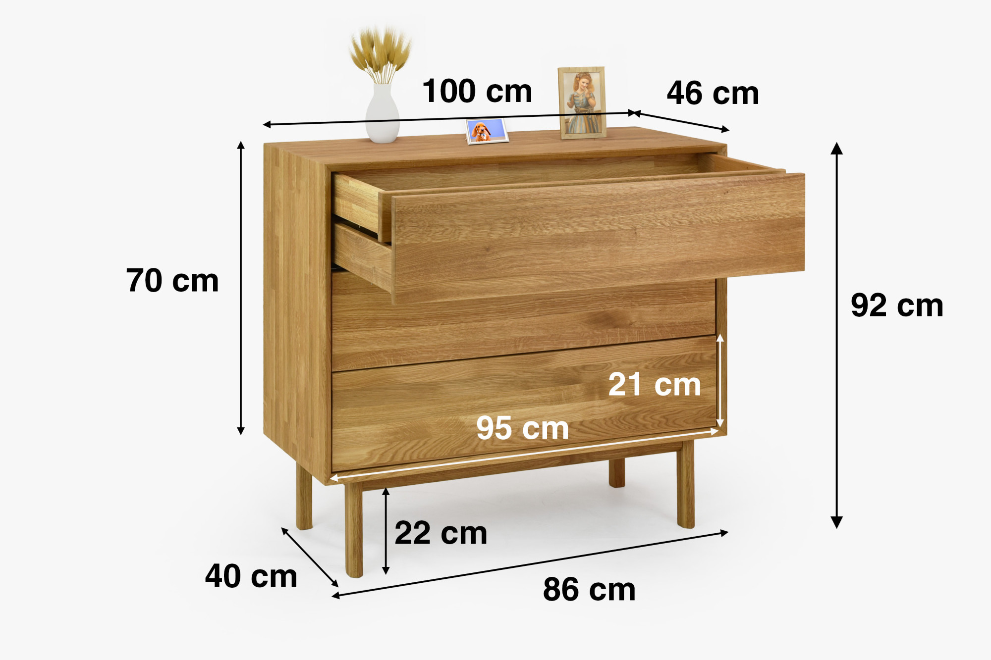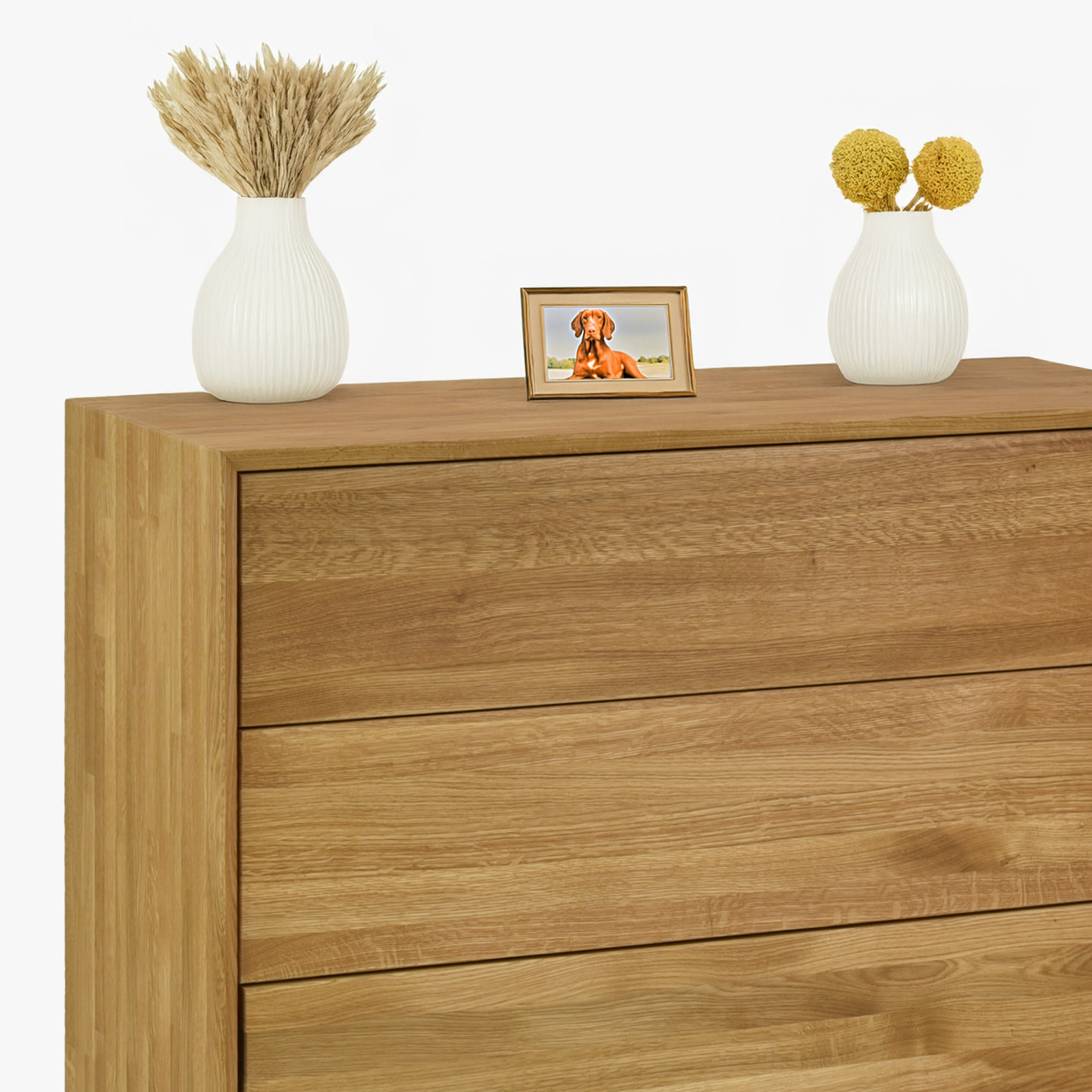 Dubová komoda so zásuvkami je ideálnou voľbou pre tých, ktorí hľadajú spojenie krásy prírodného materiálu a praktického využitia. Jej kvalitné spracovanie z masívneho dubu, moderný dizajn a dostatok úložného priestoru z nej robia nábytok, ktorý bude ozdobou vášho domova po dlhé roky. Vďaka FSC certifikácii navyše podporujete ekologicky zodpovednú výrobu.