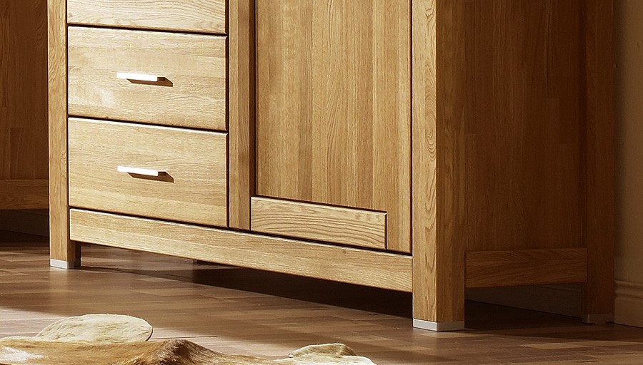 - Prírodná olejová úprava: Povrch komody je ošetrený prírodným olejom, ktorý zvyšuje odolnosť proti mechanickému poškodeniu a zároveň zvýrazňuje prirodzenú krásu drevenej štruktúry.