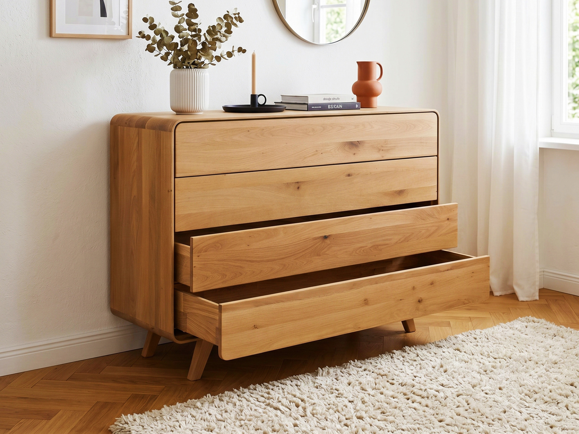 Dubová komoda Avalon 4 zásuvky 120 cm – dub natural