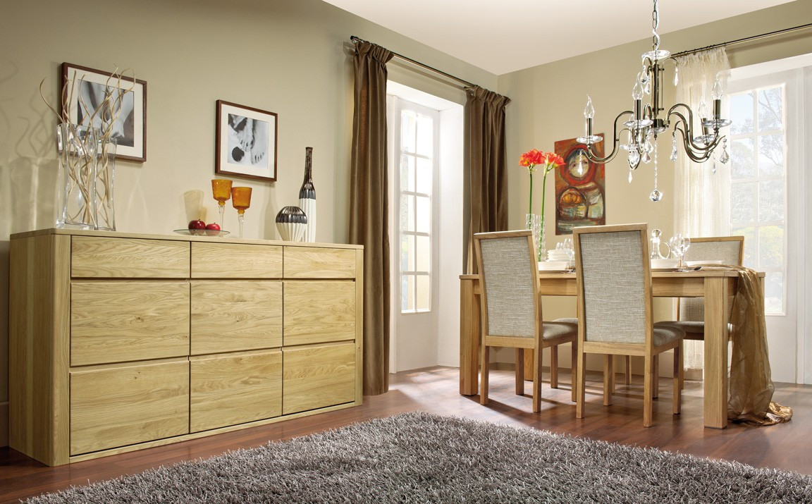 - Dlhá dubová komoda do obývačky ocenená za dizajn,