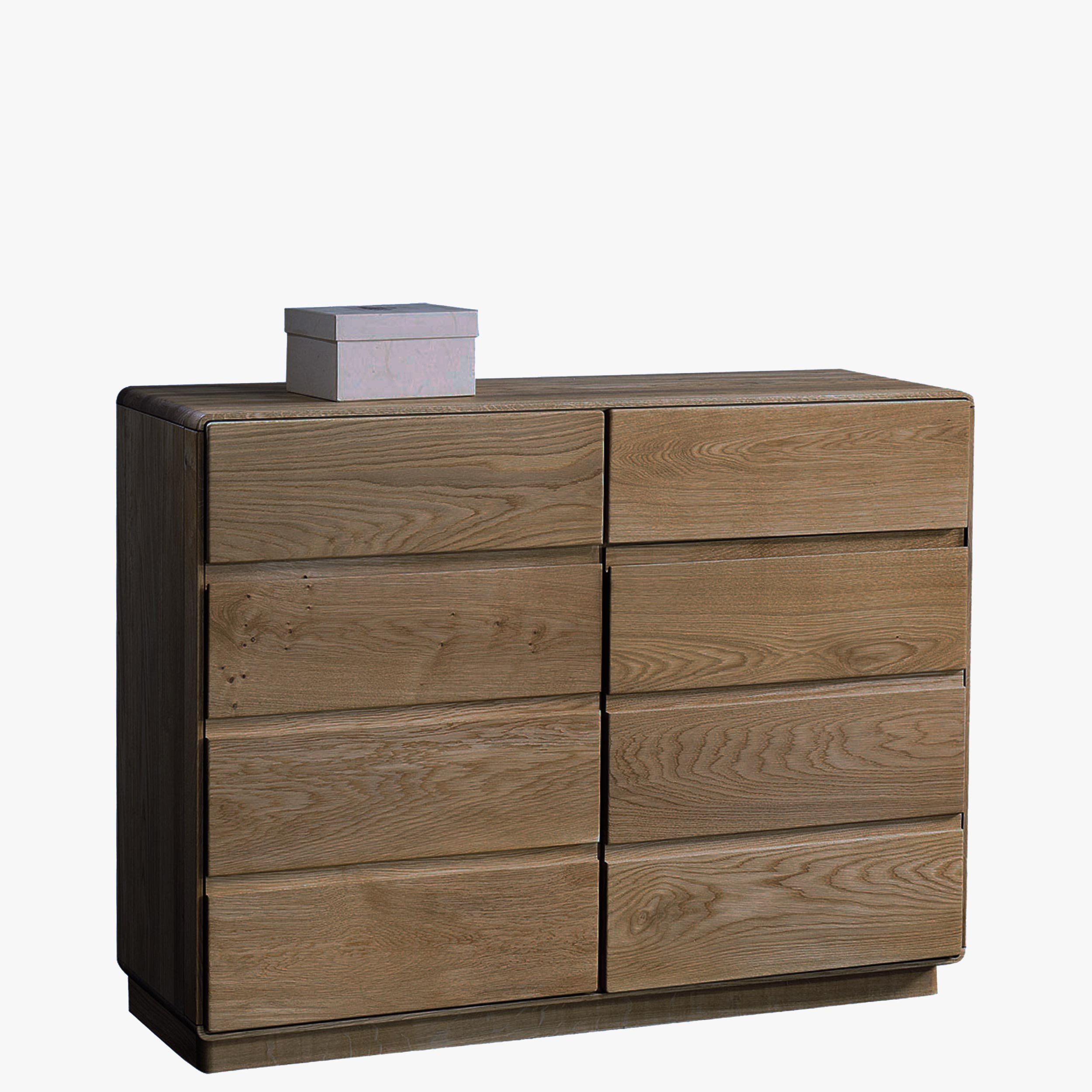 Drevená komoda z masívneho dubu predstavuje komponent vhodný nielen do spálne, ale aj do predsiene či obývačky. Každý interiér skrášli svojim vzdušným dizajnom, ktorému dominuje zaoblené hrany a čisté línie. Je vyrobená z masívu divokého dubu, ktorého krása zaujme doslova všetky vaše zmysly.