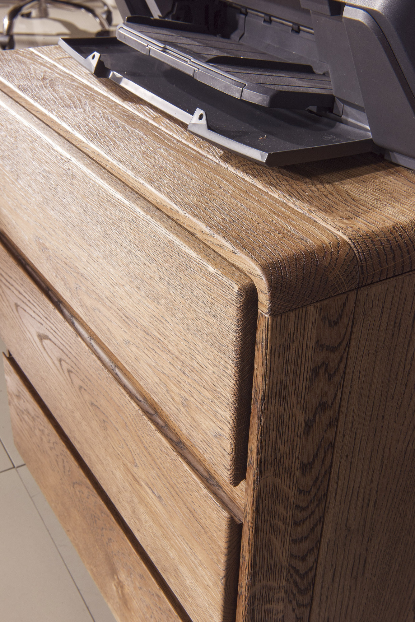Vrchná doska a zásuvky boli vyrobené z dubového masívu. Pre výrobu korpusu a bokov komody bola zvolená prírodná drevená dubová dyha. Zadnú stenu tvorí drevená preglejka. Ide o kombináciu tých najkvalitnejších materiálov, s ktorými sa v súčasnosti pri výrobe nábytku stretnete.