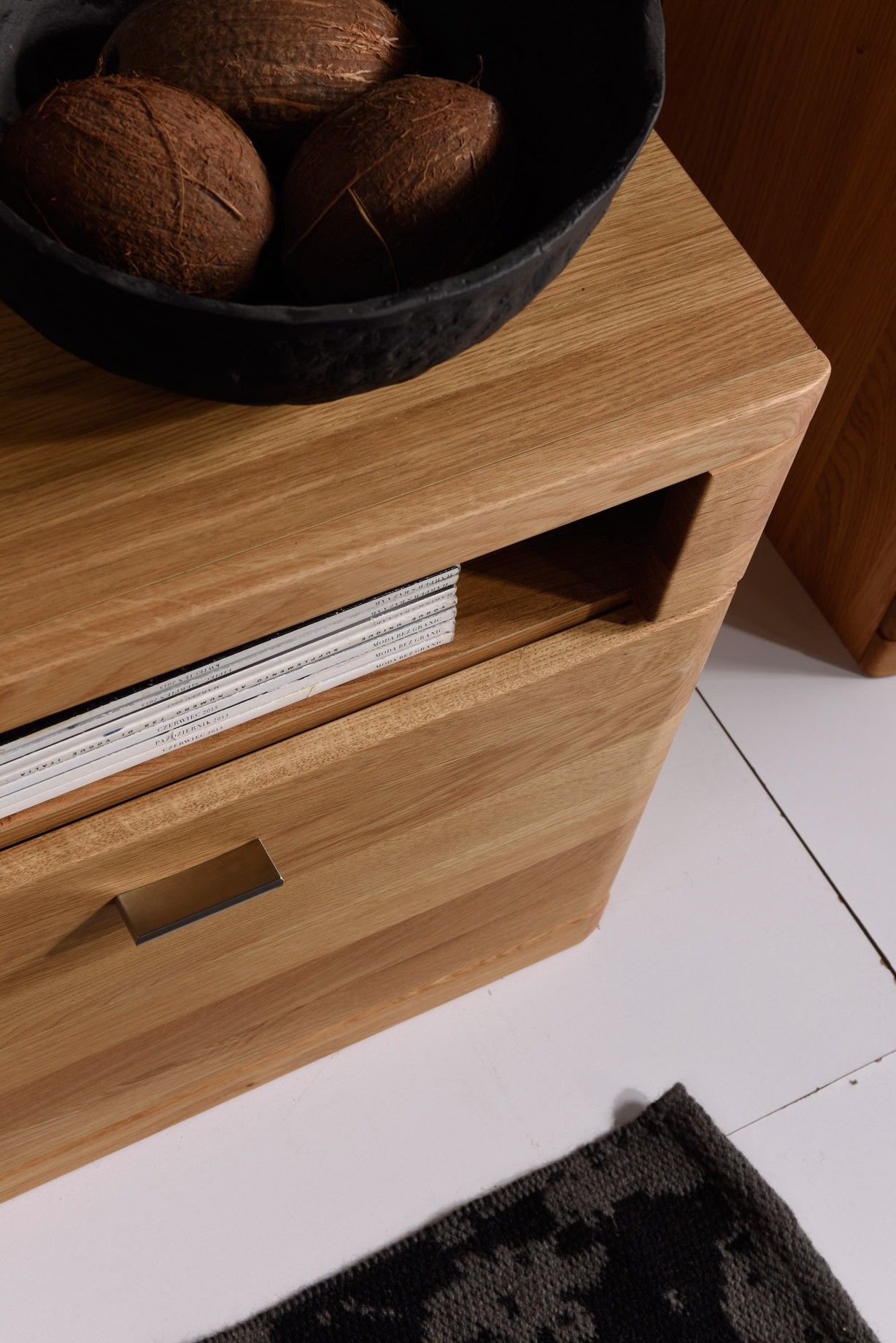 Nadčasový nábytok vyrobený v kombinácii z prírodného dubového dreva a prírodnej dubovej dyhy. Nábytok je určený do obývacej izby a jedálne. Nábytok má nadčasový dizajn, je ošetrený prírodným olejom. V kolekcii nábytku Boston nájdete TV komodu v dvoch dĺžkach, presklenú vitrínu, konferenčný stolík, rovnako dizajnovú komodu. Nábytok sa dodáva už zložený bez osvetlenia, za príplatok je možné si osvetlenie dokúpiť. Predné čelá komody a dvierok sú dubové drevo, vrchná doska - bočné výplne korpusu sú prírodná dubová dyha.
