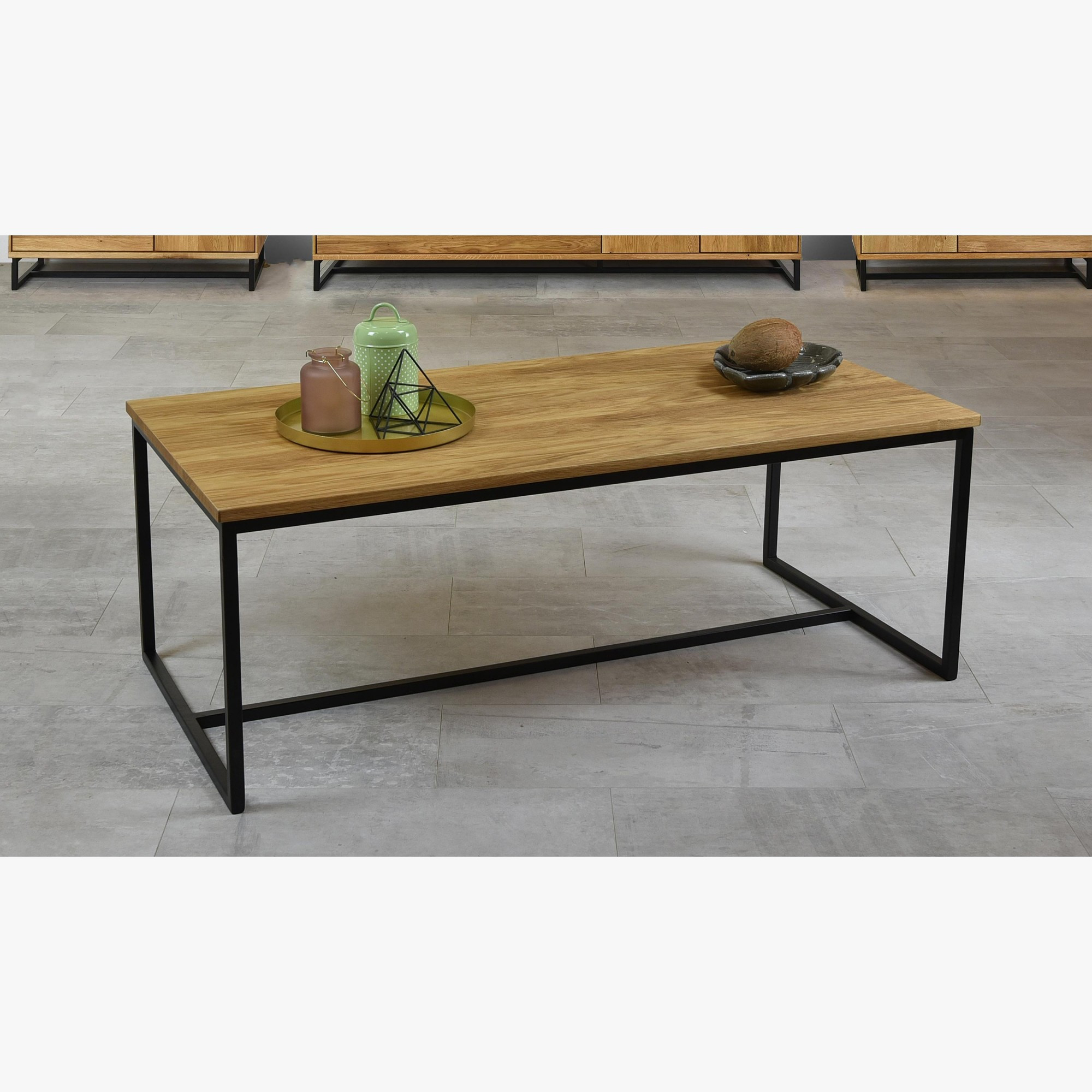 Moderný konferenčný stolík v industriálnom štýle, kde konštrukcia nôh tvorí čierne kovové nohy. Vrchná doska stolíka je vyrobená z originálnej prírodnej dubovej dyhy, kde každý kus je autentický a jedinečný. Stolík je ošetrený olejovo voskovanou povrchovou úpravou. Na údržbu používajte prípravky určené na olejovo voskovaný nábytok. Nábytok je vyrobený najmodernejšími CNC strojmi, čo zaručuje najvyššiu kvalitu. Prezrite si všetky druhy a modely z kolekcie Lagos.
