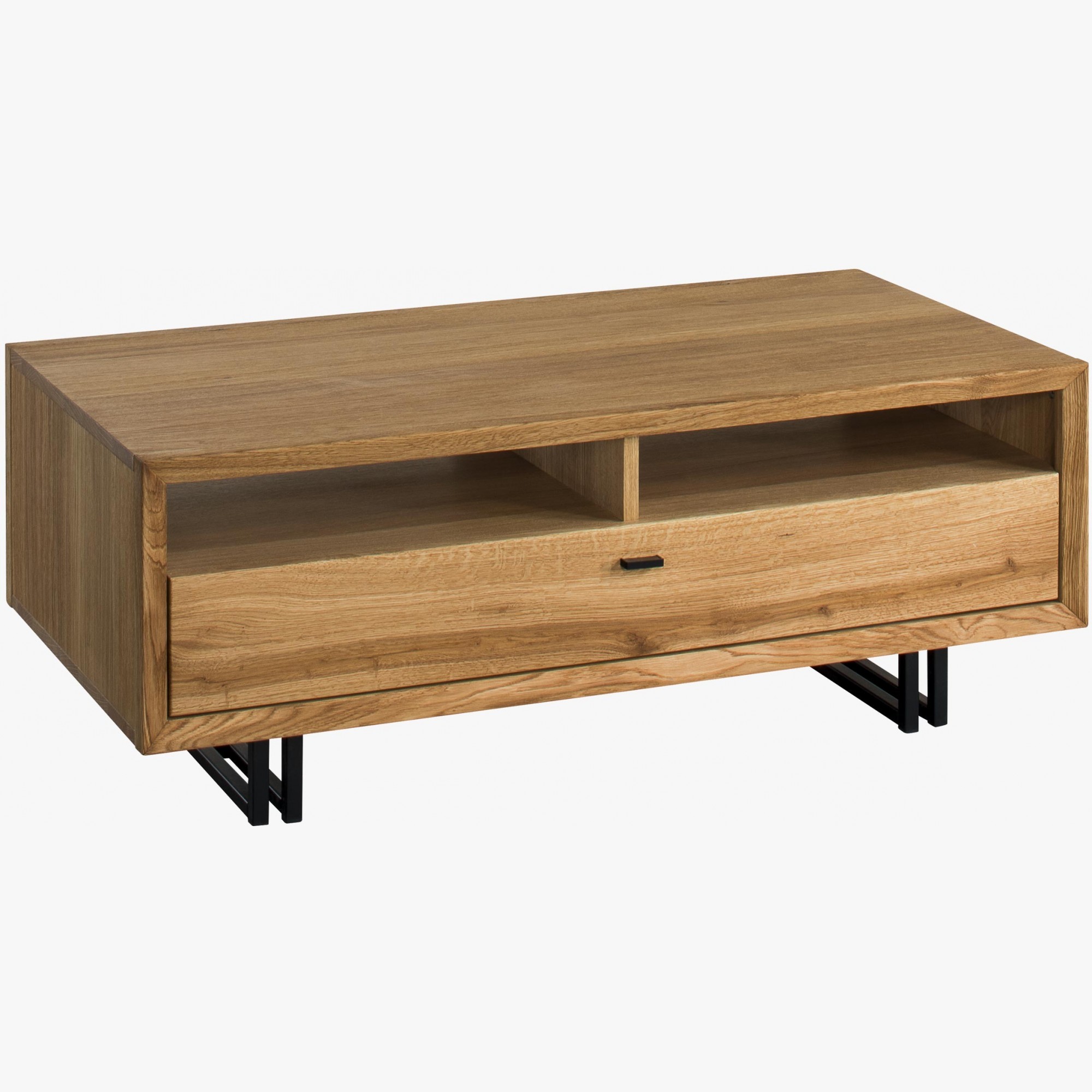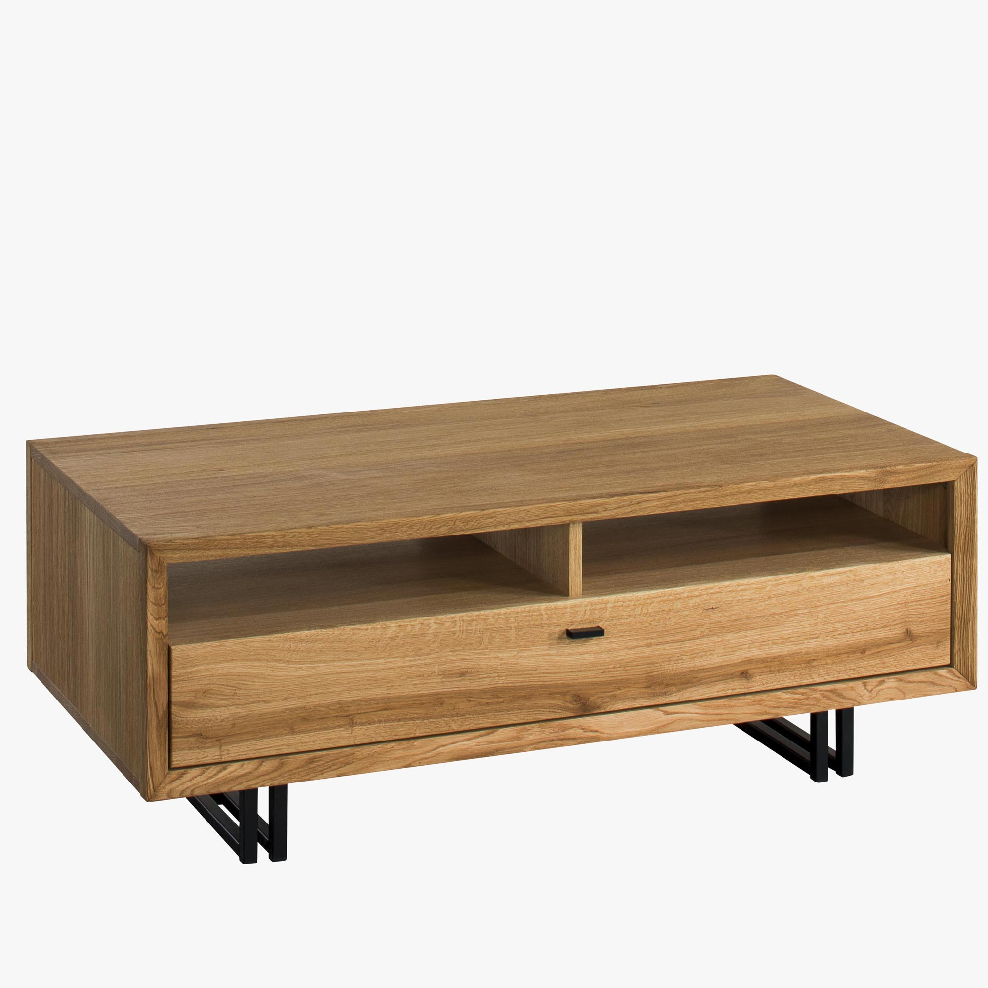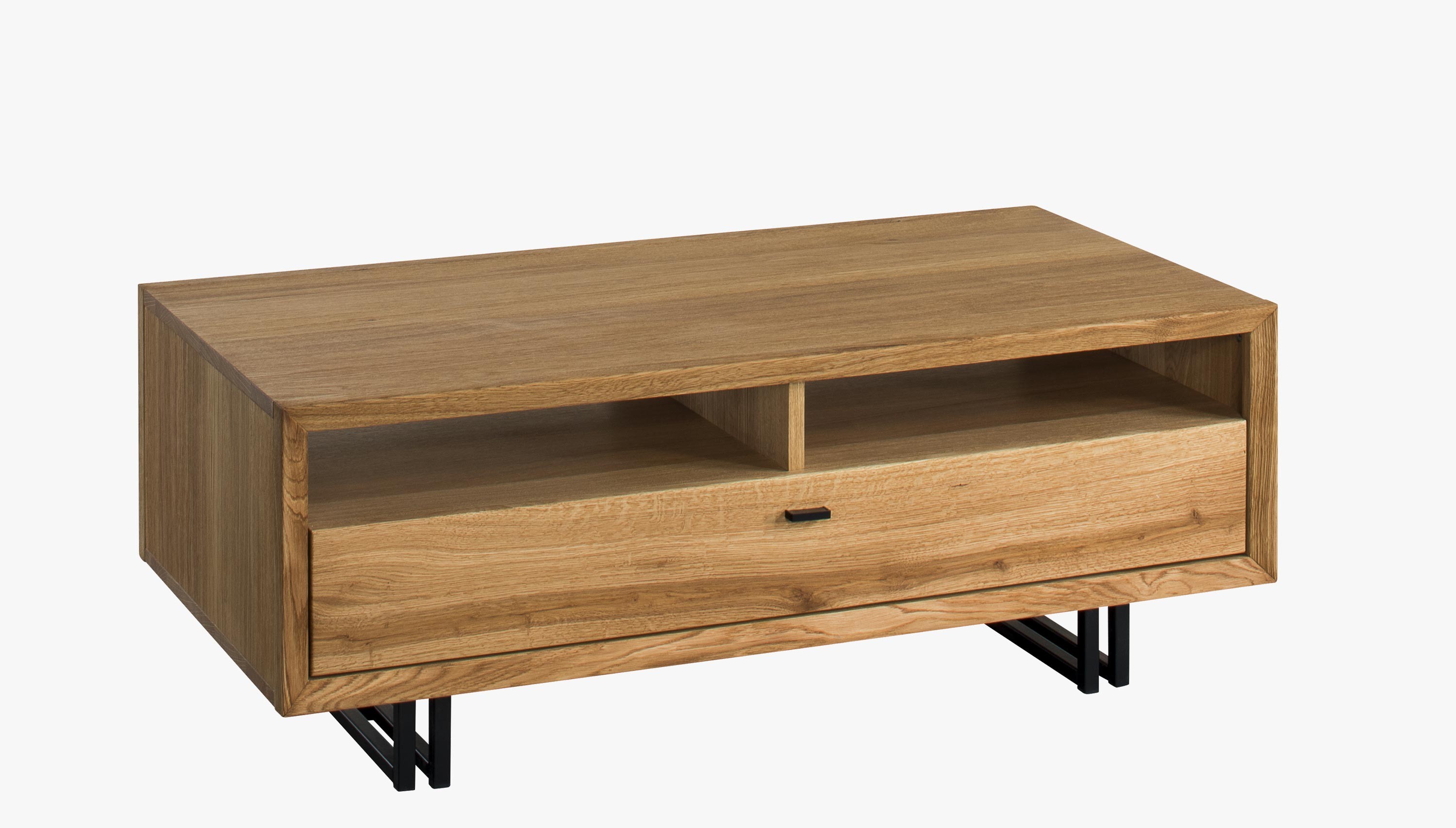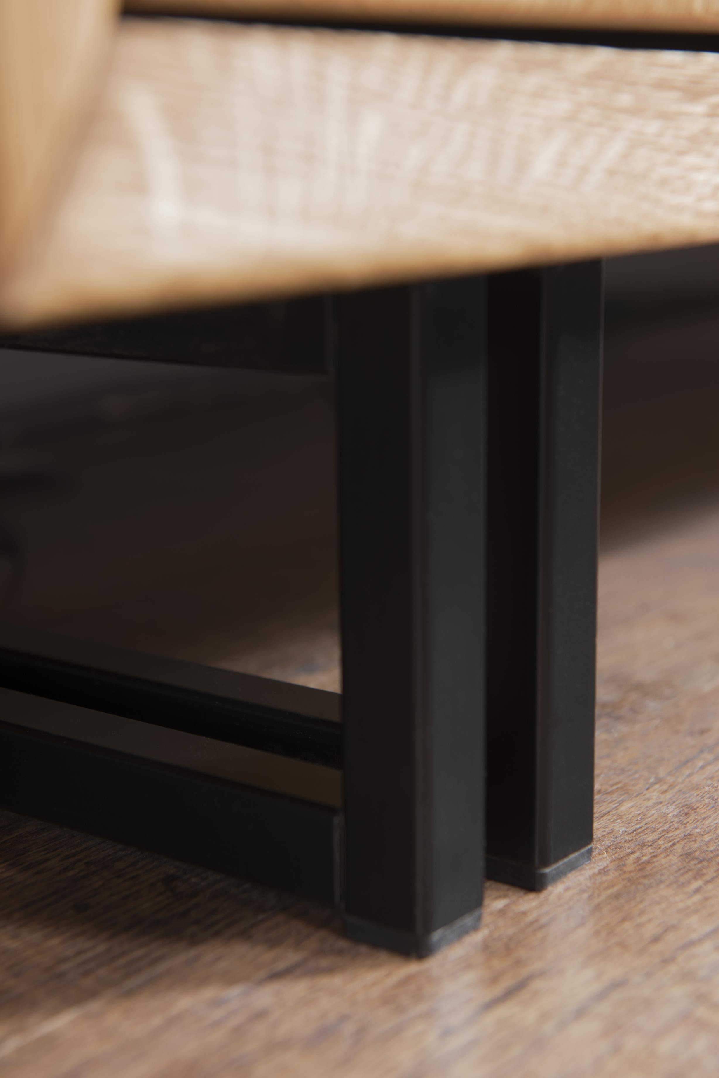 Konferenčný stolík Vigo 64 (šírka 120 cm, výška 45 cm, hĺbka 60 cm) sa dodáva už profesionálne zmontovaný, takže ho môžete ihneď používať. Tento prémiový stolík s kovovými nohami v kombinácii s čiernym dubovým drevom je dokonalým spojením moderného dizajnu a prírodných materiálov. Vyrobený z kvalitného prírodného dubového dreva a dubovej dyhy, stolík Vigo ponúka nielen štýlový vzhľad, ale aj vysokú funkčnosť.