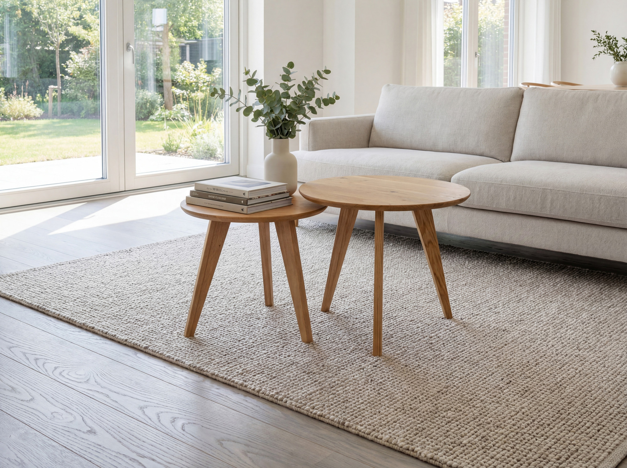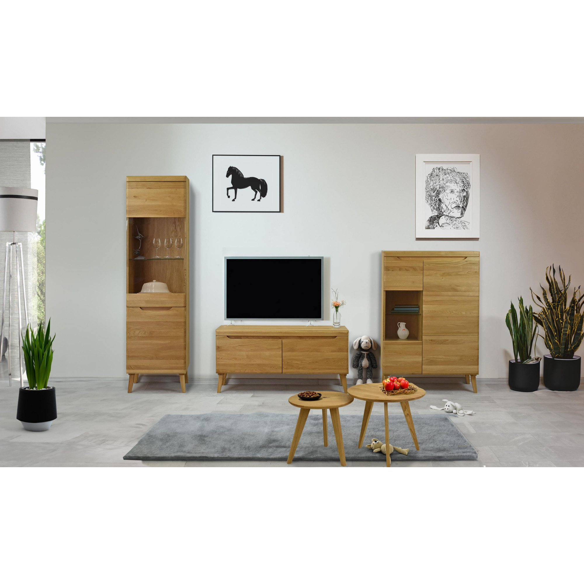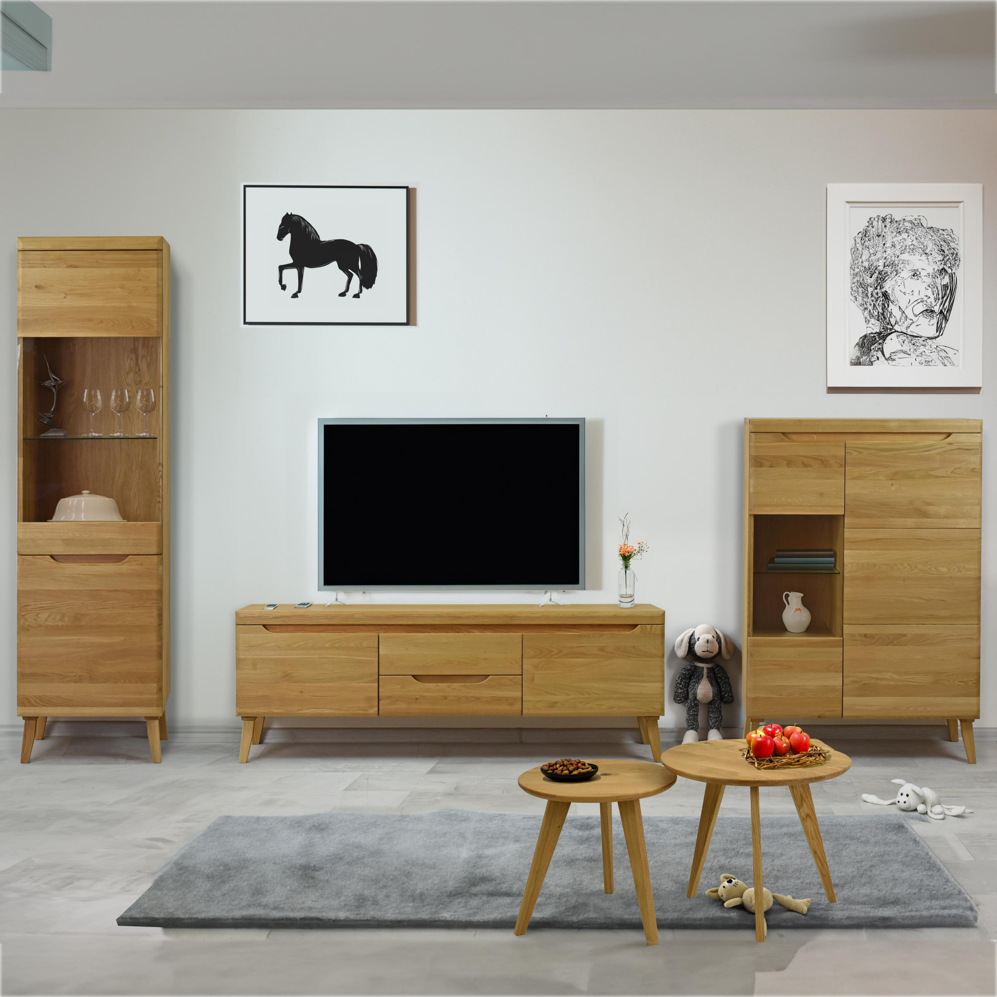Nadčasový nábytok vyrobený aj z prírodného dubového dreva. Nábytok je určený do obývacej izby. Nábytok má nadčasový dizajn, je ošetrený prírodným olejom. Zaujímavou kombináciou je použitie aj dvoch stolíkov vedľa seba