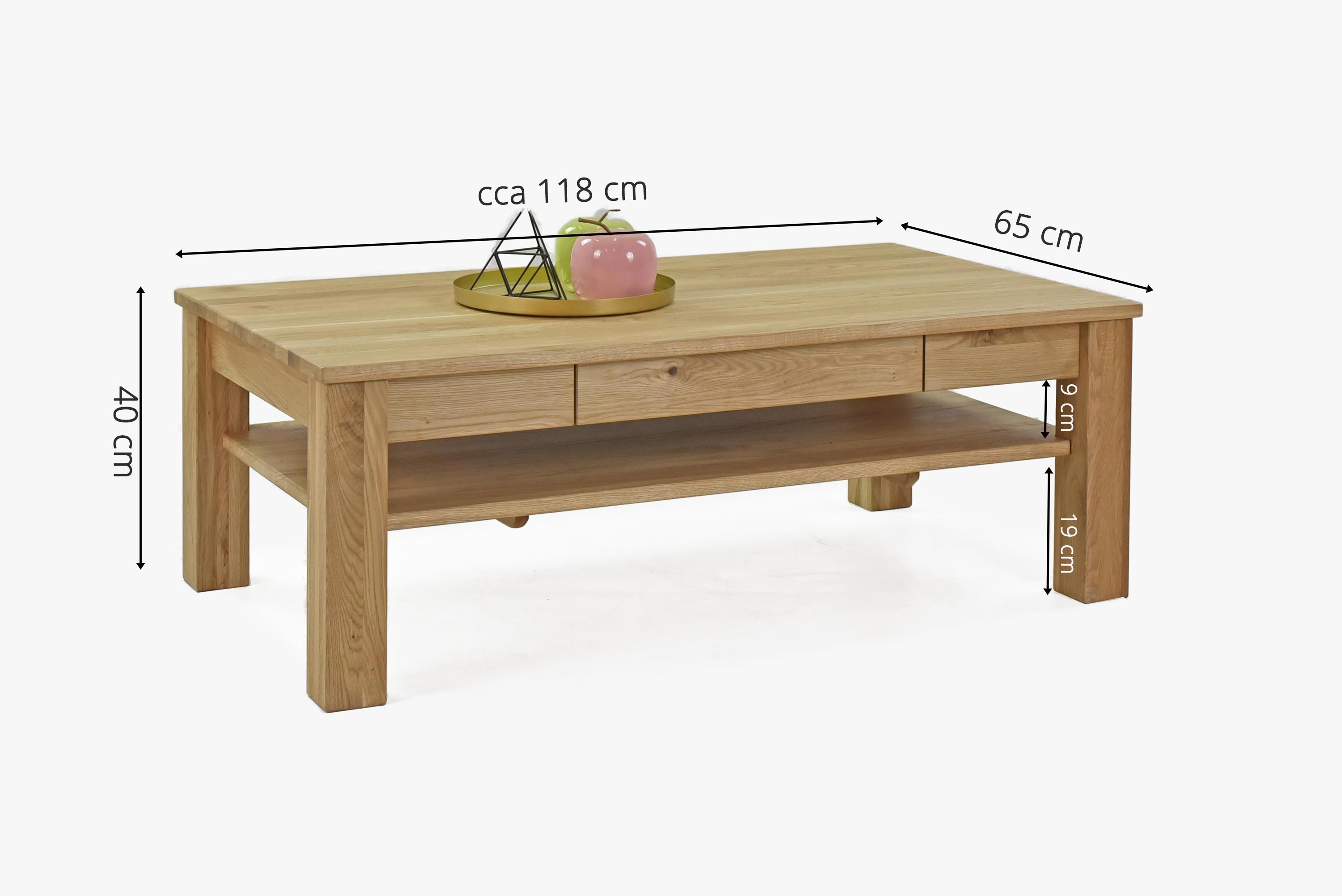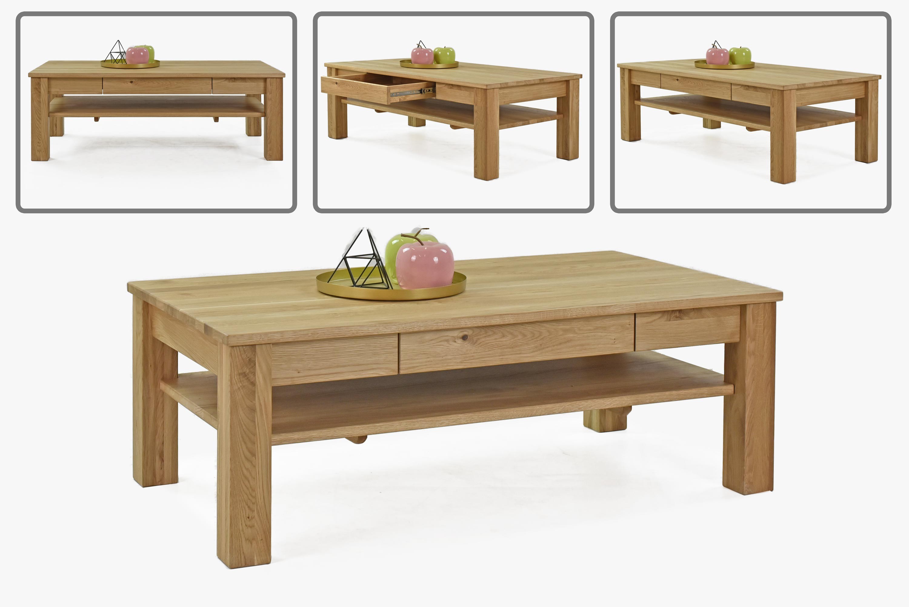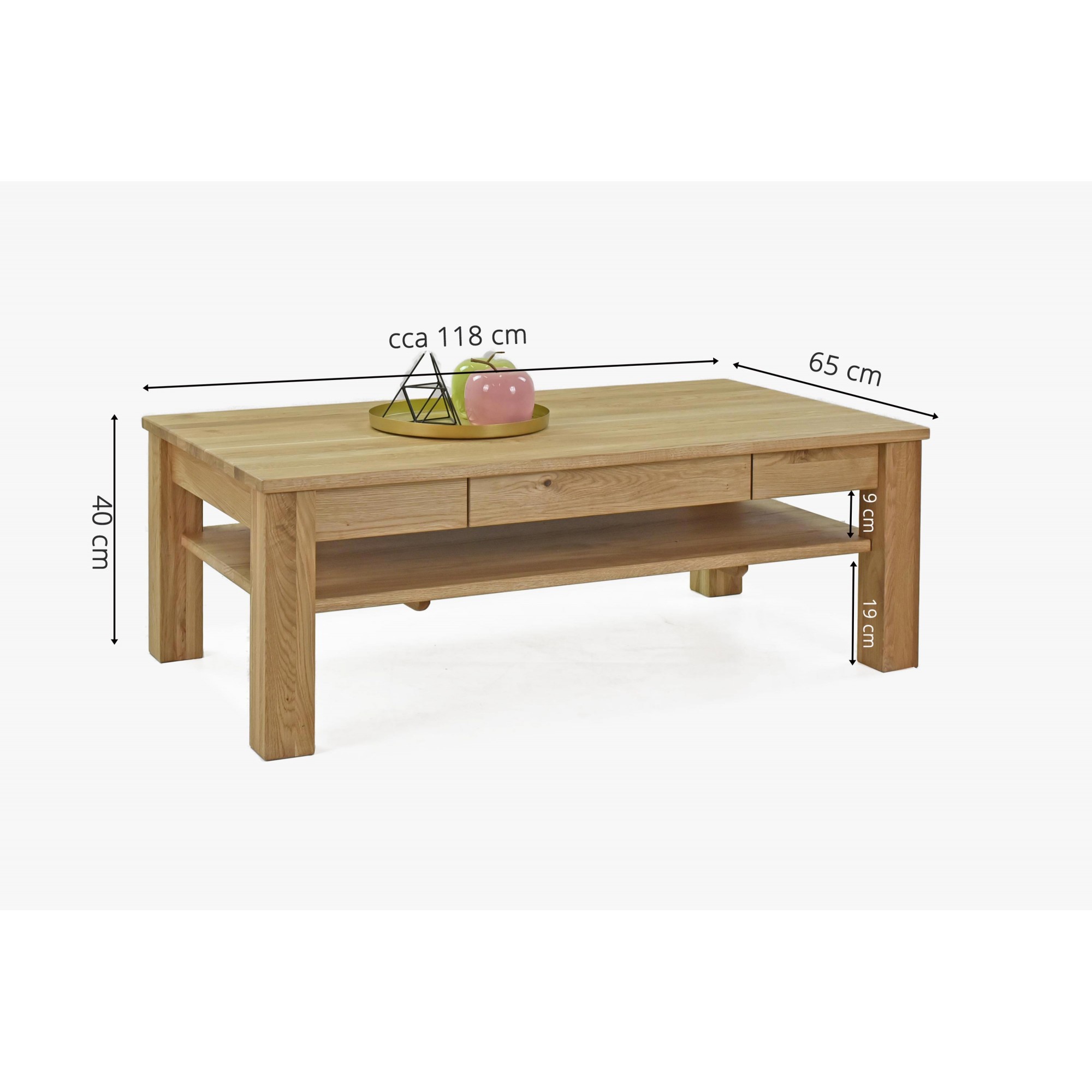 Dubový konferenčný stolík z masívu vrátane políc a zásuvkou, model Milton
