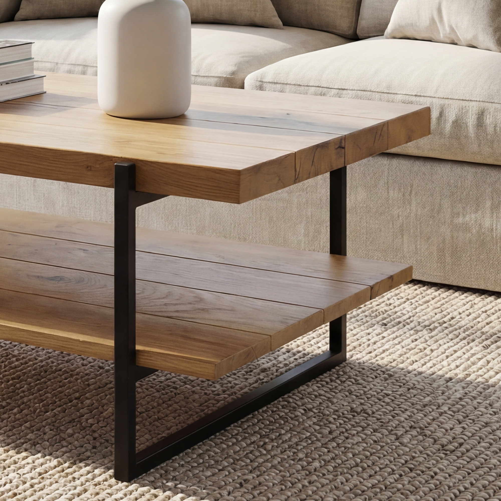 Masívny konferenčný stolík s policou dub