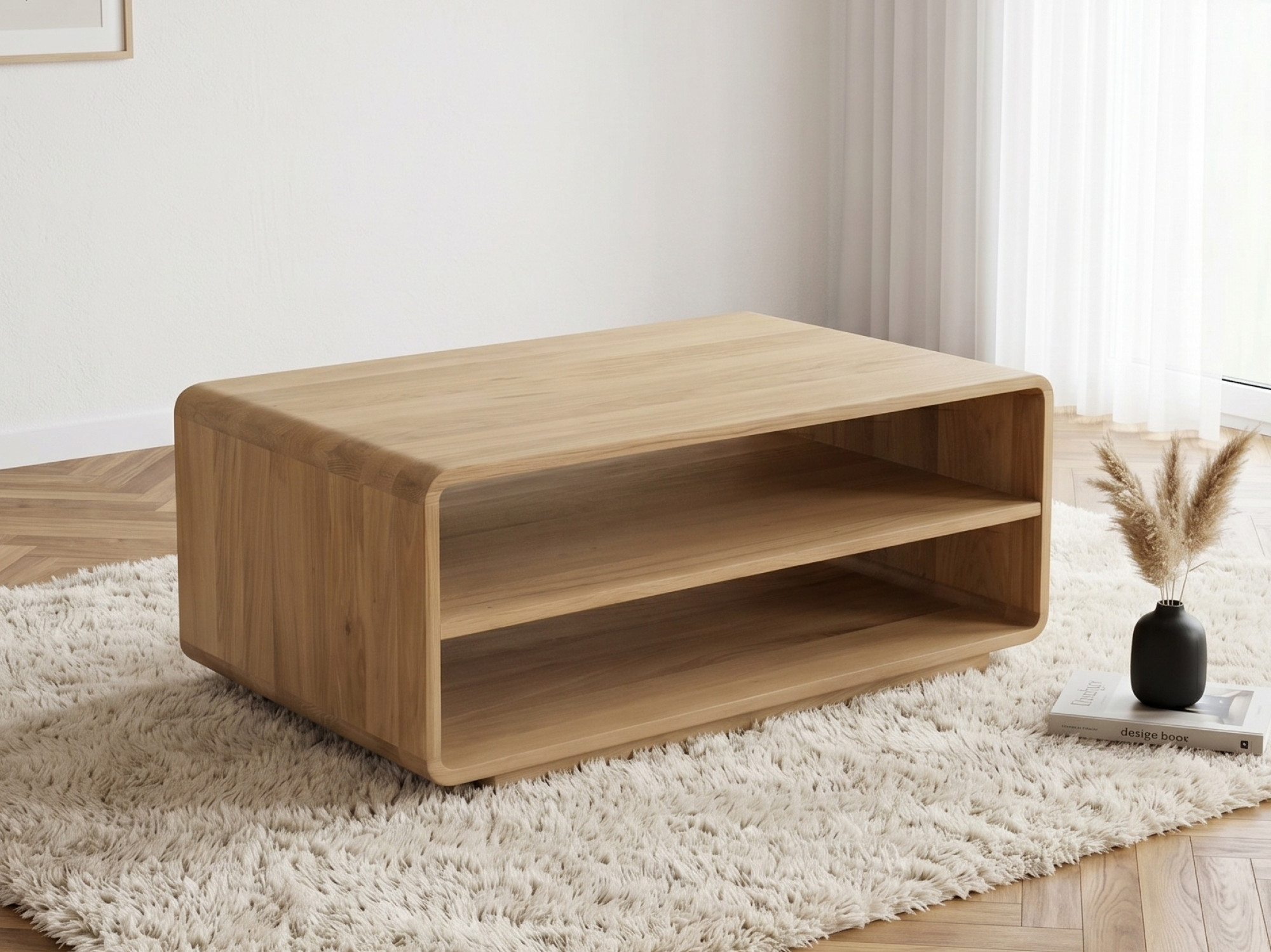 Predstavujeme Vám zaoblený drevený konferenčný stolík, ktorý je skvelým príkladom spojenia moderného dizajnu a praktickosti s využitím prírodných materiálov. Vyrobený z vysoko kvalitného dubového dreva s FSC certifikátom, tento stolík nielenže podčiarkne krásu vášho domova, ale zároveň prispeje k udržateľnosti životného prostredia. Povrch stolíka je ošetrený prírodným olejom v farbe dub biely, čo zvýrazňuje prirodzenú textúru dreva a dodáva mu elegantný vzhľad. Vďaka zaobleným rohom a odkladaciemu priestoru ponúka tento konferenčný stolík nielen estetický zážitok, ale aj praktické využitie pre každodenné potreby. Produkt je dodávaný už zmontovaný, čo zákazníkom uľahčuje inštaláciu a umožňuje okamžité použitie.