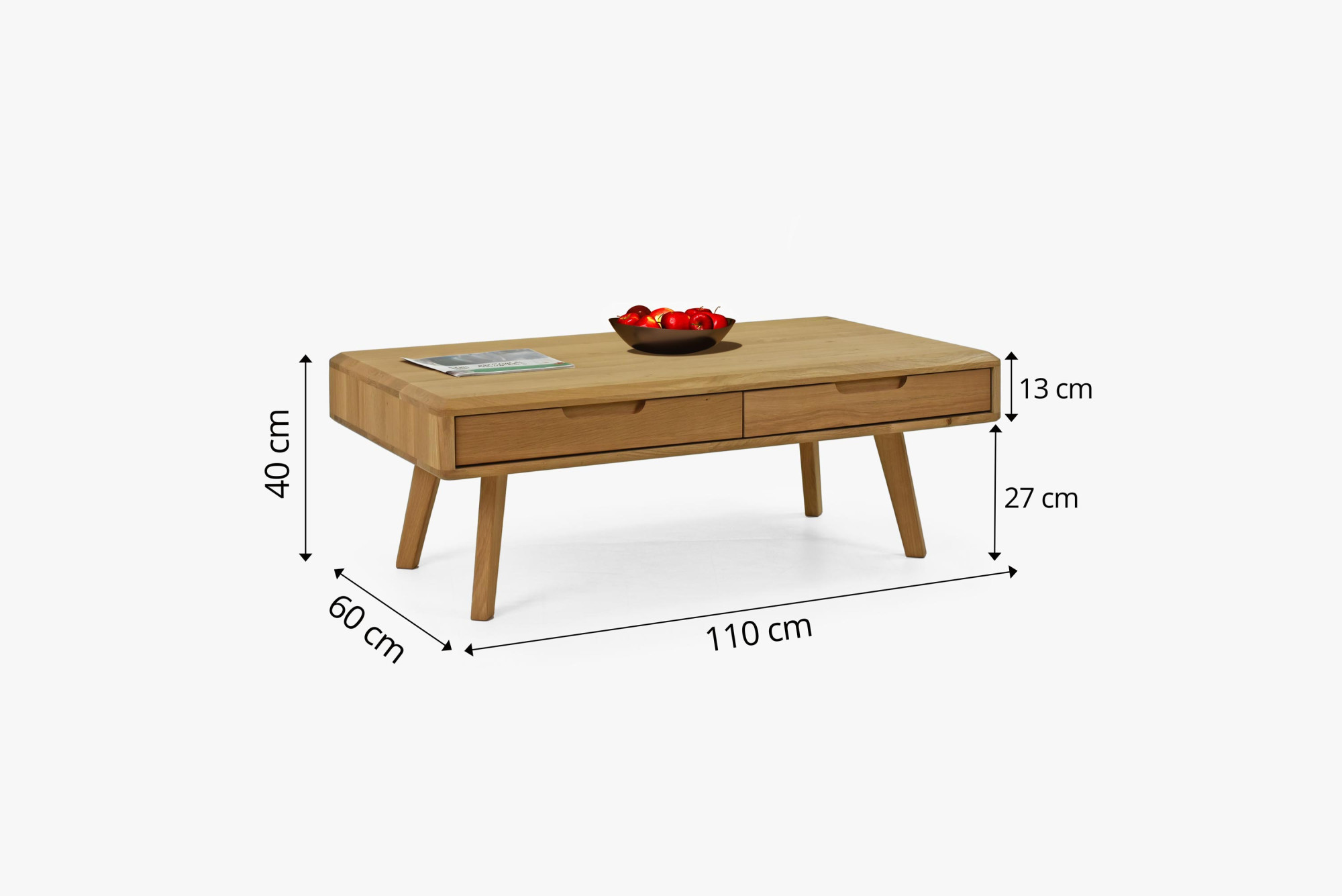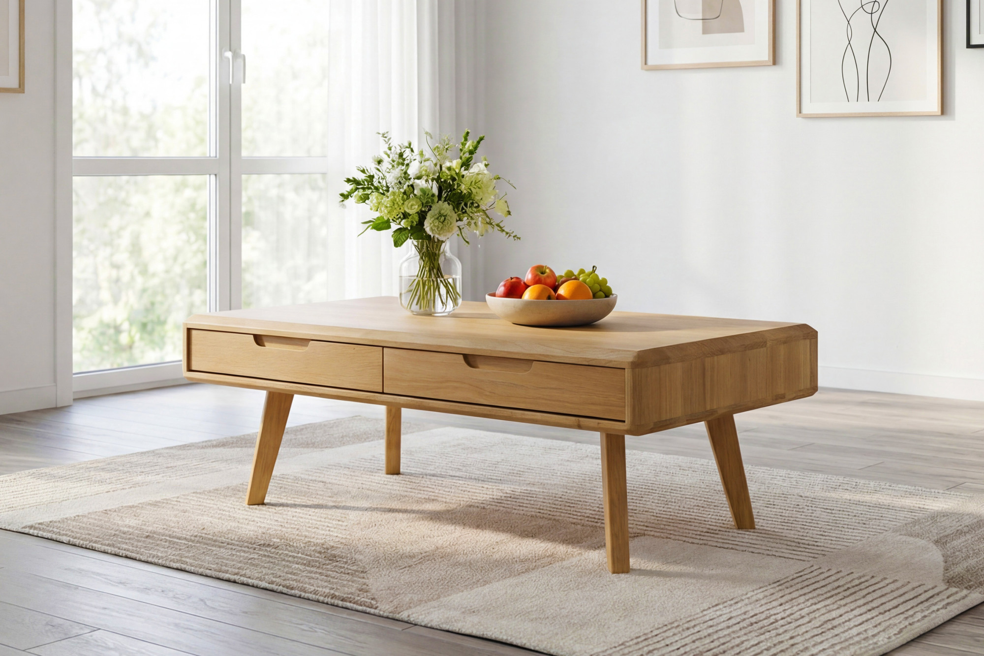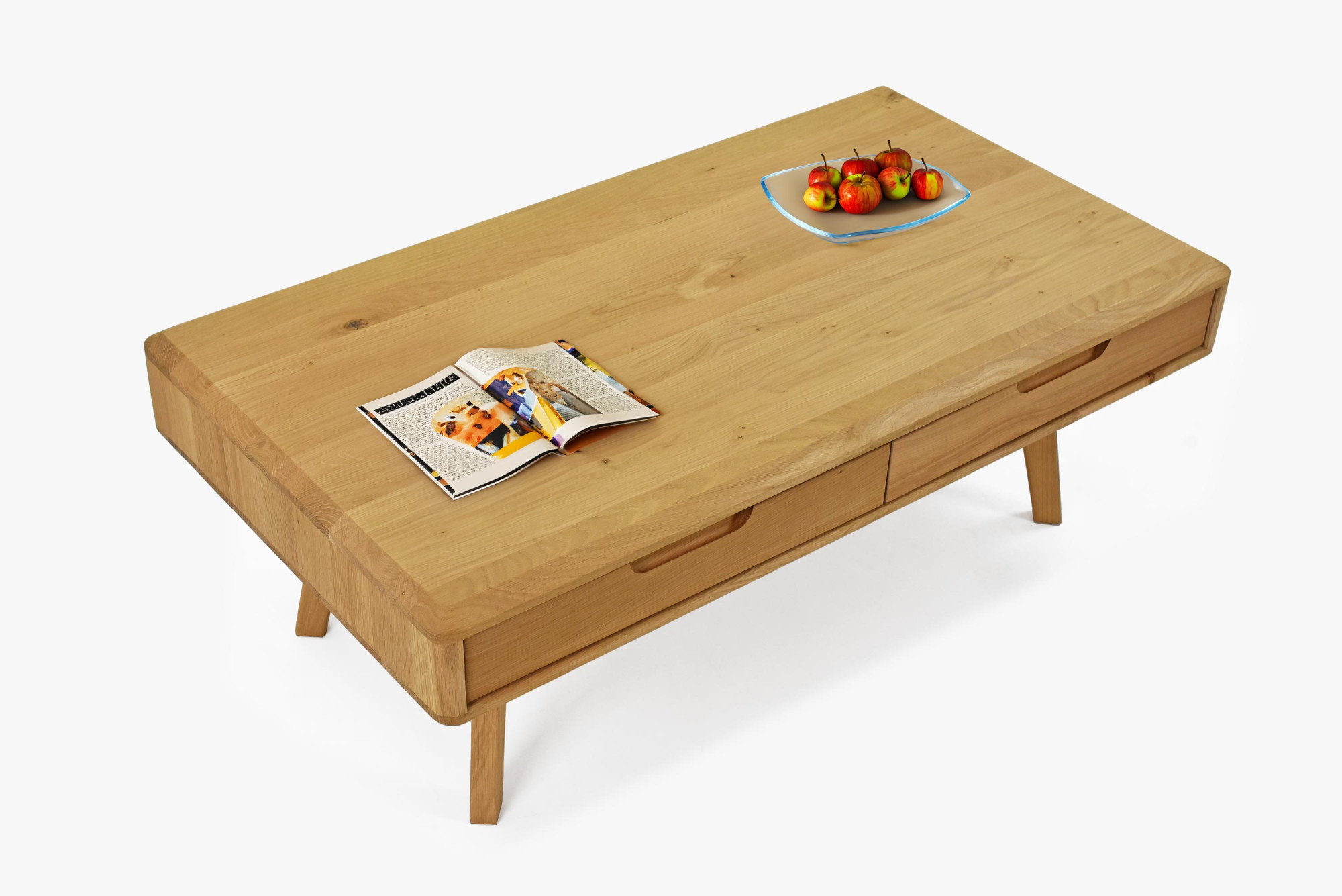 Masívny konferenčný stolík so zásuvkami, dub natural