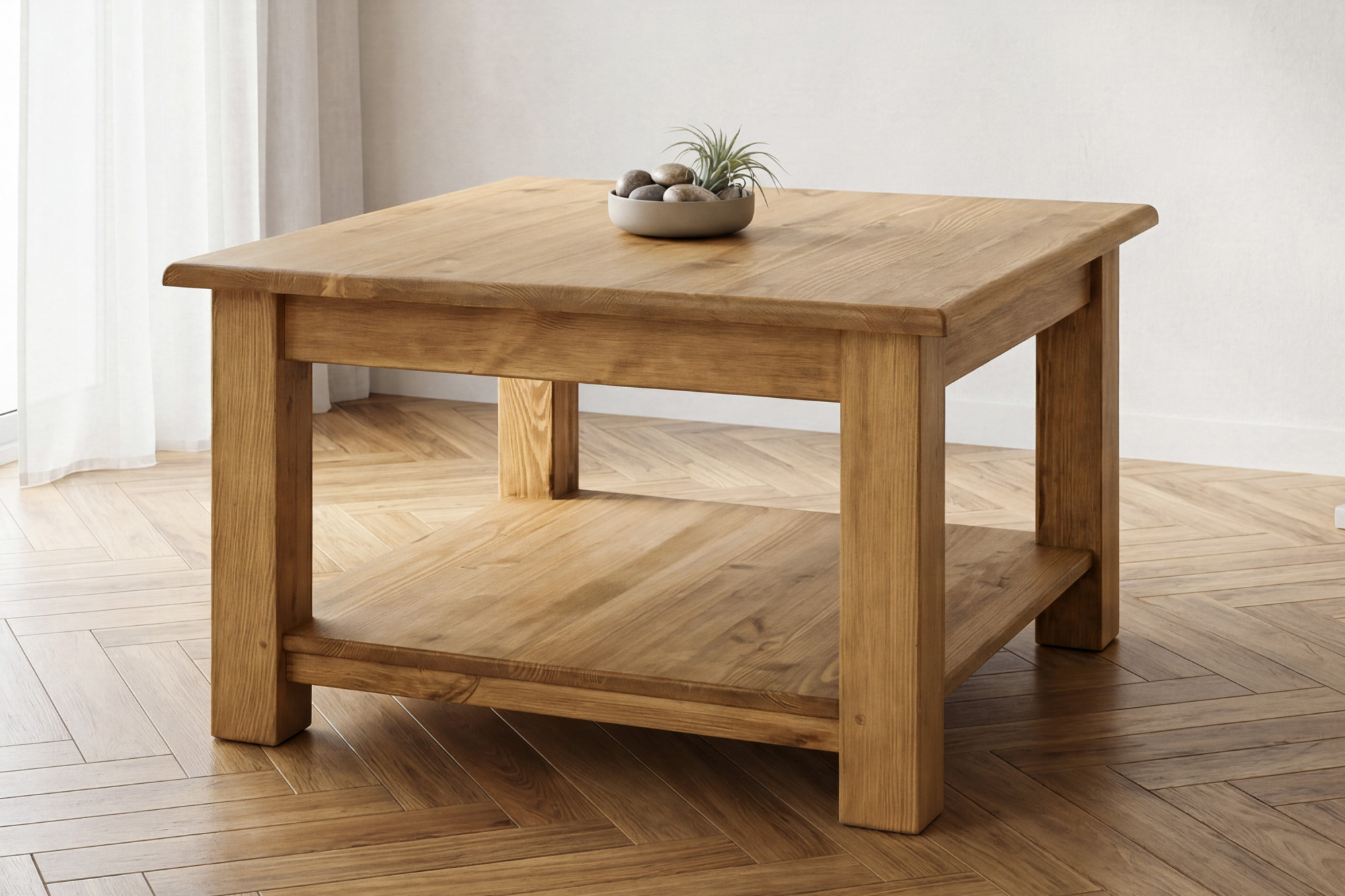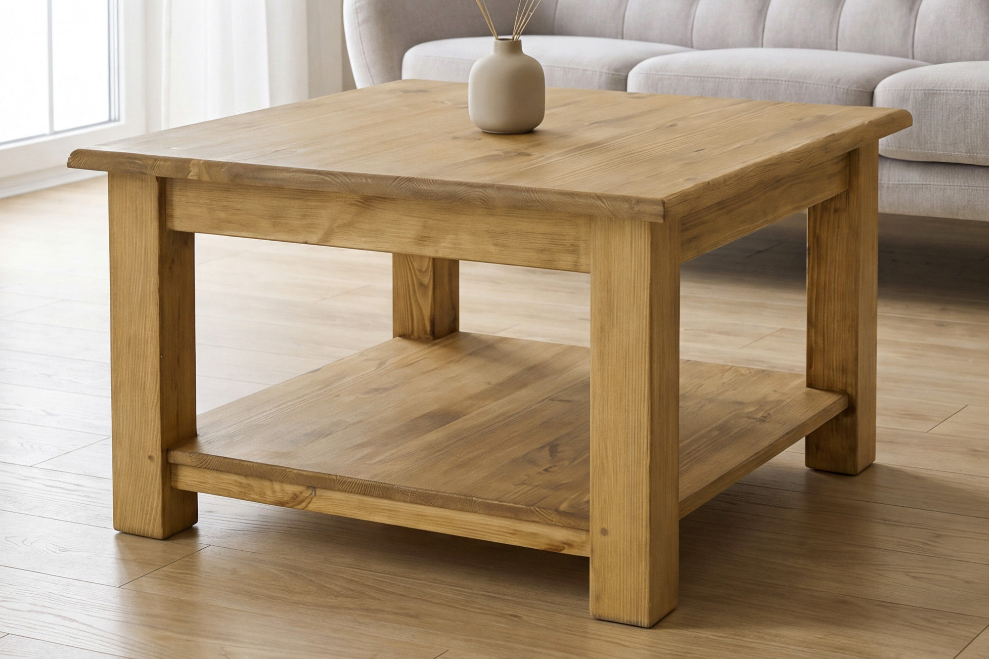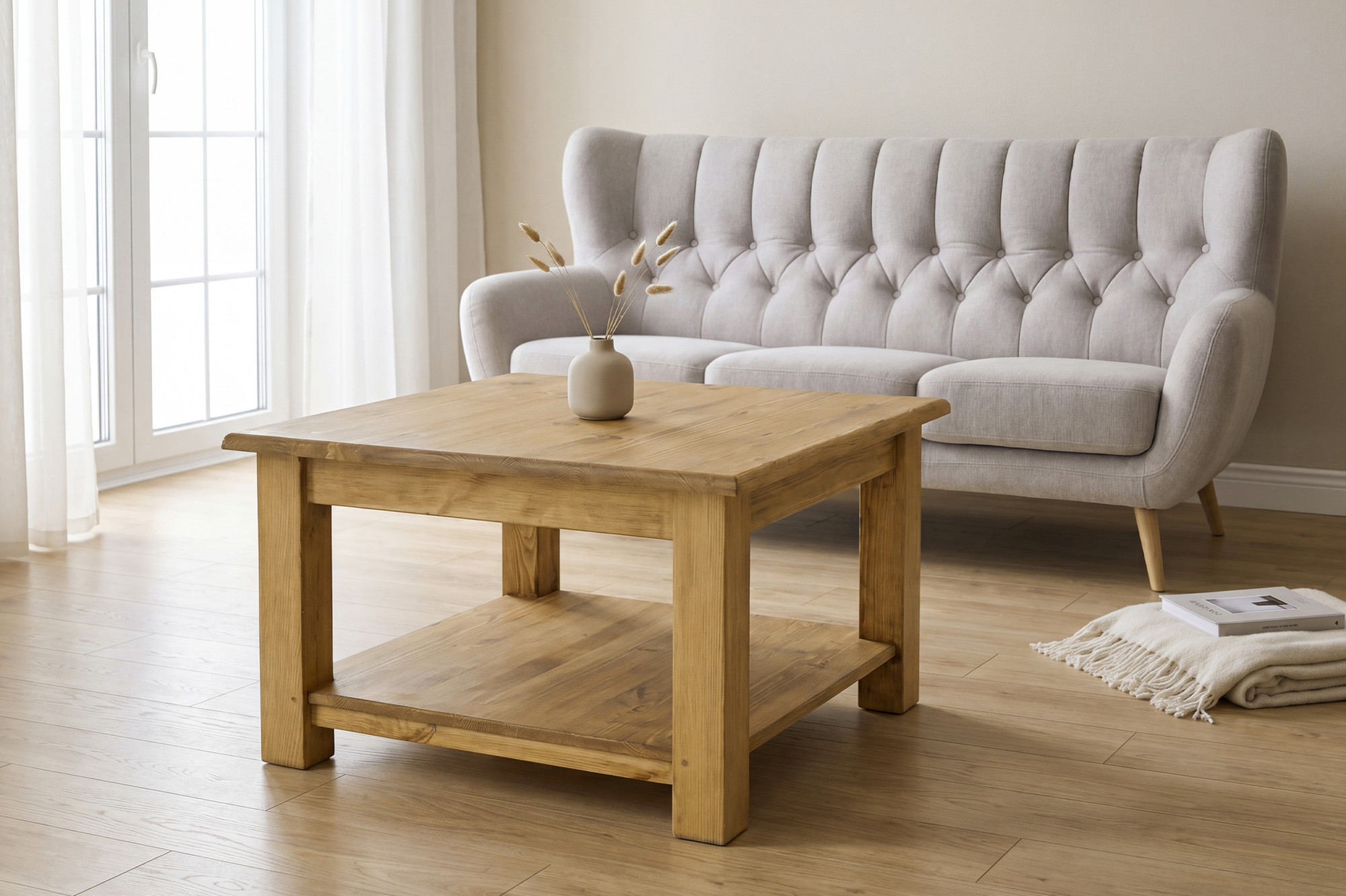 Masívna borovica je obľúbená pre svoju odolnosť i krásny prírodný vzhľad. Medový vosk navyše povrch jemne chráni a podčiarkuje rustikálny charakter celého nábytku. Ak zariaďujete obývaciu izbu v štýle Provence, vidiek, cottage alebo klasickej rustiky, tento stolík bude perfektným doplnkom vášho priestoru.
