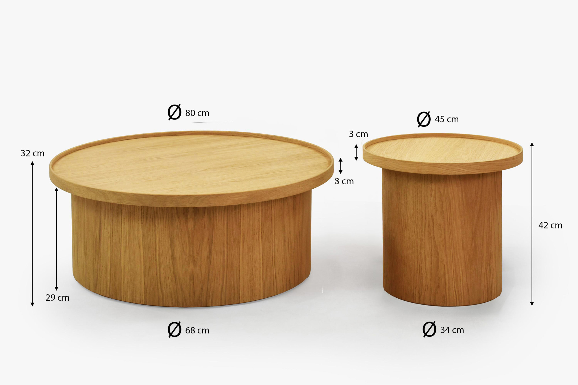 Stolík je nielen krásny, ale aj praktický – jeho rozmery sú ideálne pre menšie aj priestranné obývacie izby. Dodáva sa plne zmontovaný, ihneď pripravený na použitie. Vďaka univerzálnej prírodnej farbe ho ľahko skombinujete s ďalším dubovým nábytkom alebo s inými prírodnými materiálmi. V ponuke je tiež menšia varianta s priemerom 45 cm, ktorú je možné zakúpiť samostatne alebo ako doplnok. Dubový konferenčný stolík dub natural spĺňa aj náročné požiadavky na ekológiu – použitá dyha má FSC certifikáciu, čo zaručuje zodpovedný pôvod dreva.
