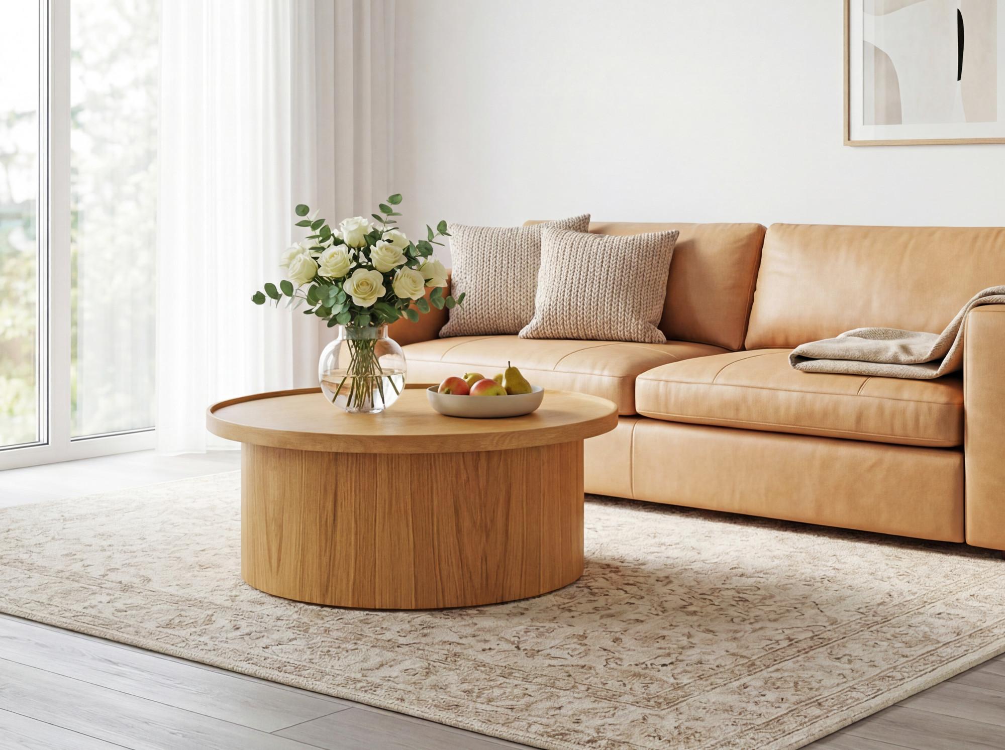 Dubový konferenčný stolík dub natural, Ø 80 cm tvar valec