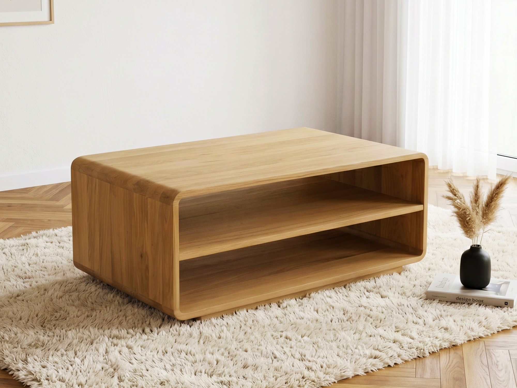 Praktické riešenie ponúkajú dvě otvorené odkladacie police, do ktorých pohodlne umiestnite knihy, časopisy, ovládače alebo dekorácie. Stolík má rozmery 100 x 60 x 44 cm, takže sa skvele hodí k dvojmiestnym aj rohovým sedacím súpravám. Povrch je ošetrený prírodným olejom, ktorý zvýrazňuje jedinečnú kresbu masívneho dubu a zároveň poskytuje spoľahlivú ochranu proti každodennému opotrebeniu. Olejovaná povrchová úprava umožňuje drevu dýchať a v prípade potreby je možné povrch ľahko renovovať. Stolík je dodávaný už kompletne zmontovaný – môžete ho po doručení ihneď používať. Skvelo sa kombinuje s ďalšími kusmi z kolekcie Avalon, čím vytvoríte harmonicky zladený obývací priestor.