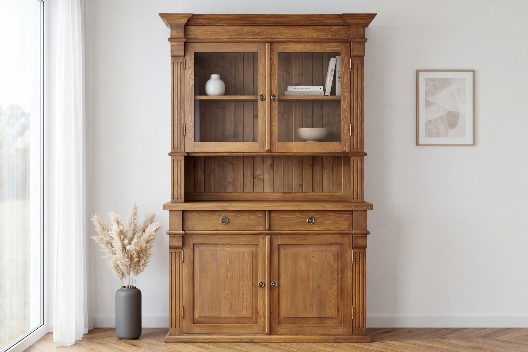 Príborník Prestige (D-KRI-64) z masívnej borovice – hnedý lak s patinou, 132 × 195 × 45 cm