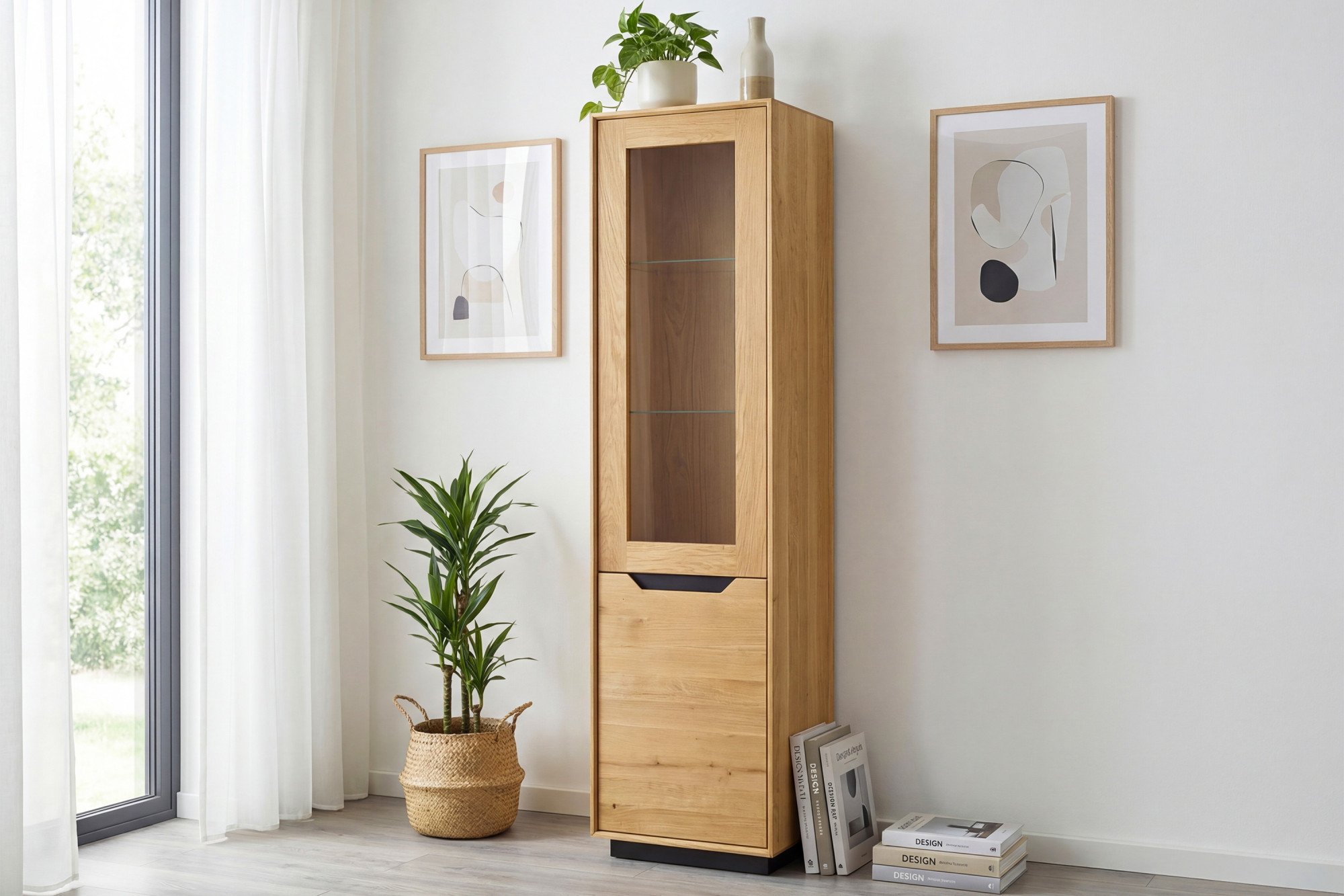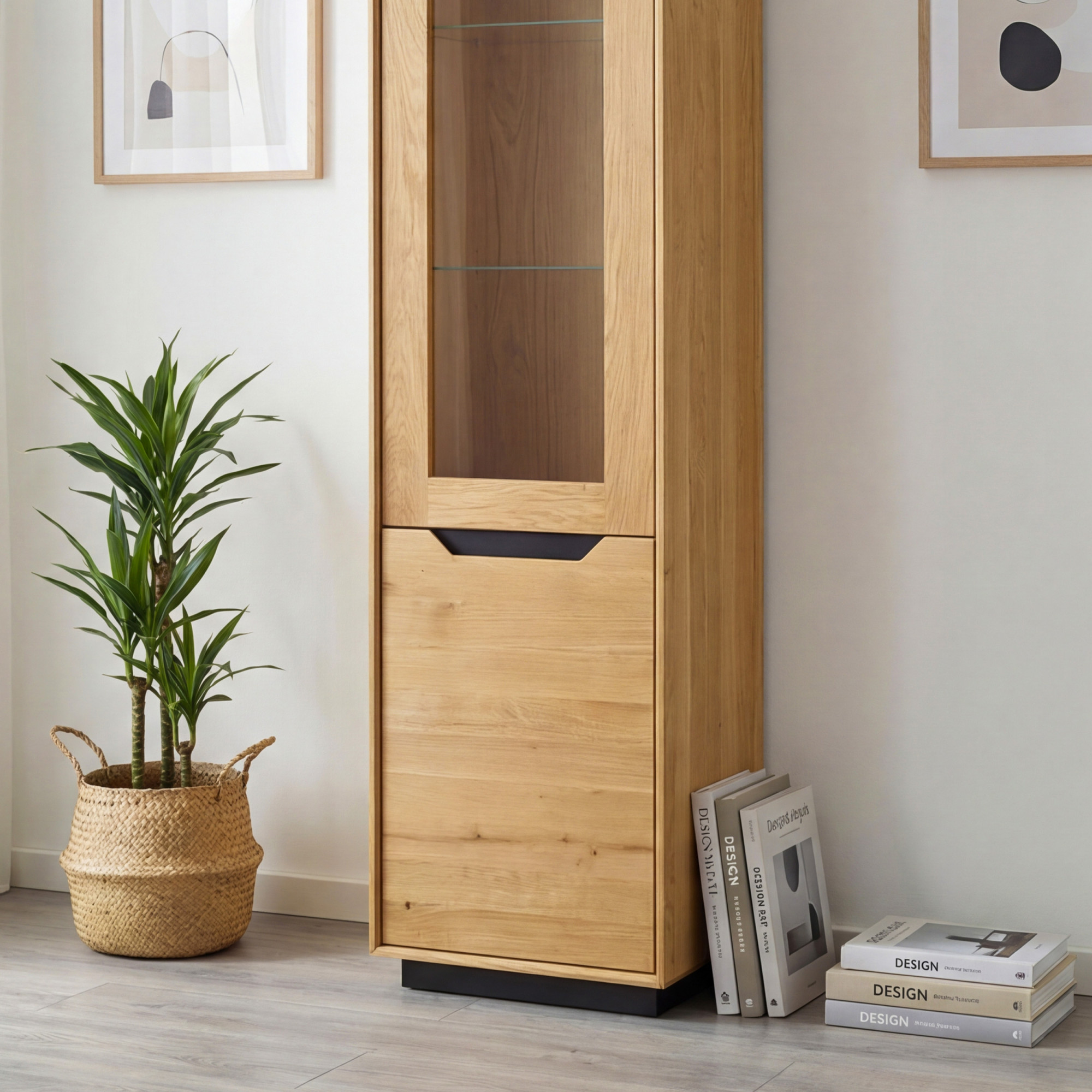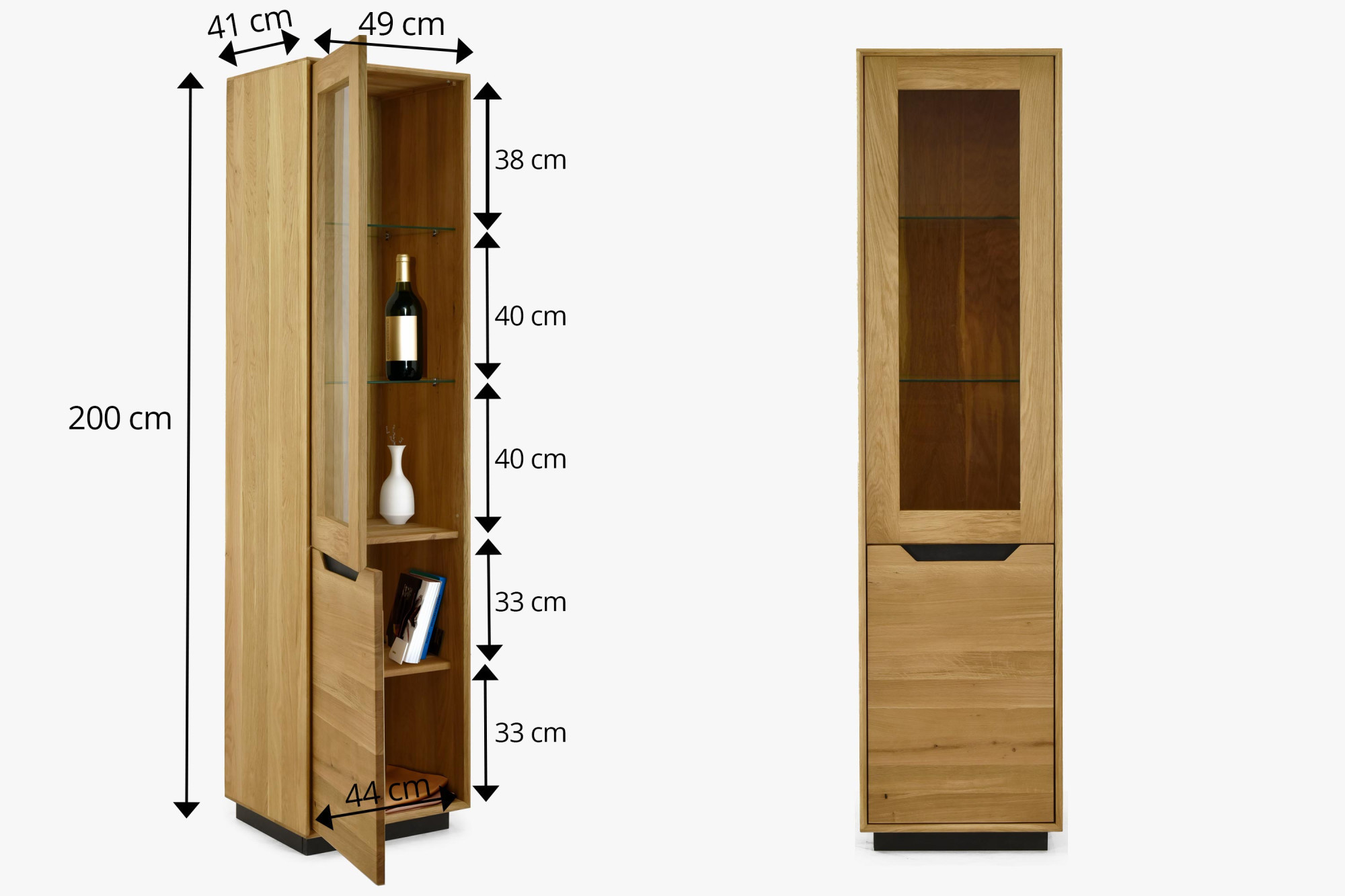 Drevená dubová jednodverová vitrína s presklenými dvierkami, dub natural - kolekcia Budapest