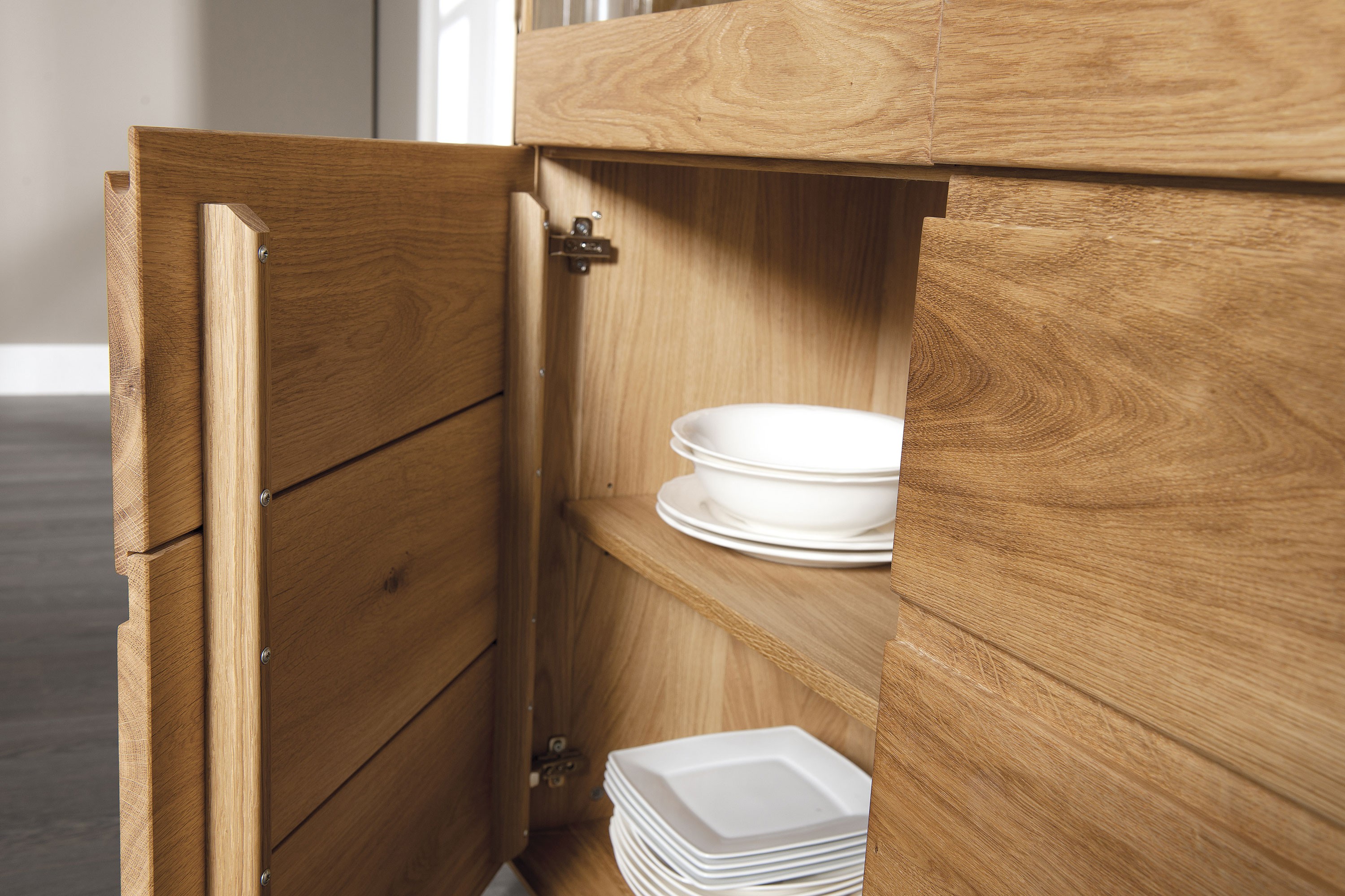 Zaslúži si váš čajový servis a moderný riadový servis dôstojný priestor, v ktorom by naplno vynikla jeho krása? Dubový kredenc z kolekcie Helsinki vyhovie presne týmto účelom! V jedálni vám bude šikovným pomocníkom, do ktorého uschováte utierky a zároveň vystavíte pekné riady. Vďaka tomu, že pochádza z celej série nábytku, kredenc ľahko skombinujete s ďalšími komponentmi v rovnakom dizajne, napríklad s jedálenským stolom alebo komodou.