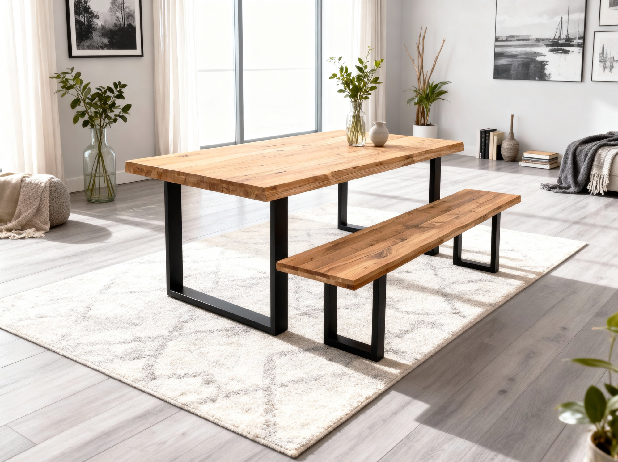 Áno, dubová lavica dokonale ladí s našimi jedálenskými stolmi z masívneho dubu. Vďaka čiernym kovovým nohám je navyše ideálna pre industriálne aj moderné štýly interiéru. Sedacia plocha s prírodným okrajom skvelo doplní akýkoľvek drevený nábytok.