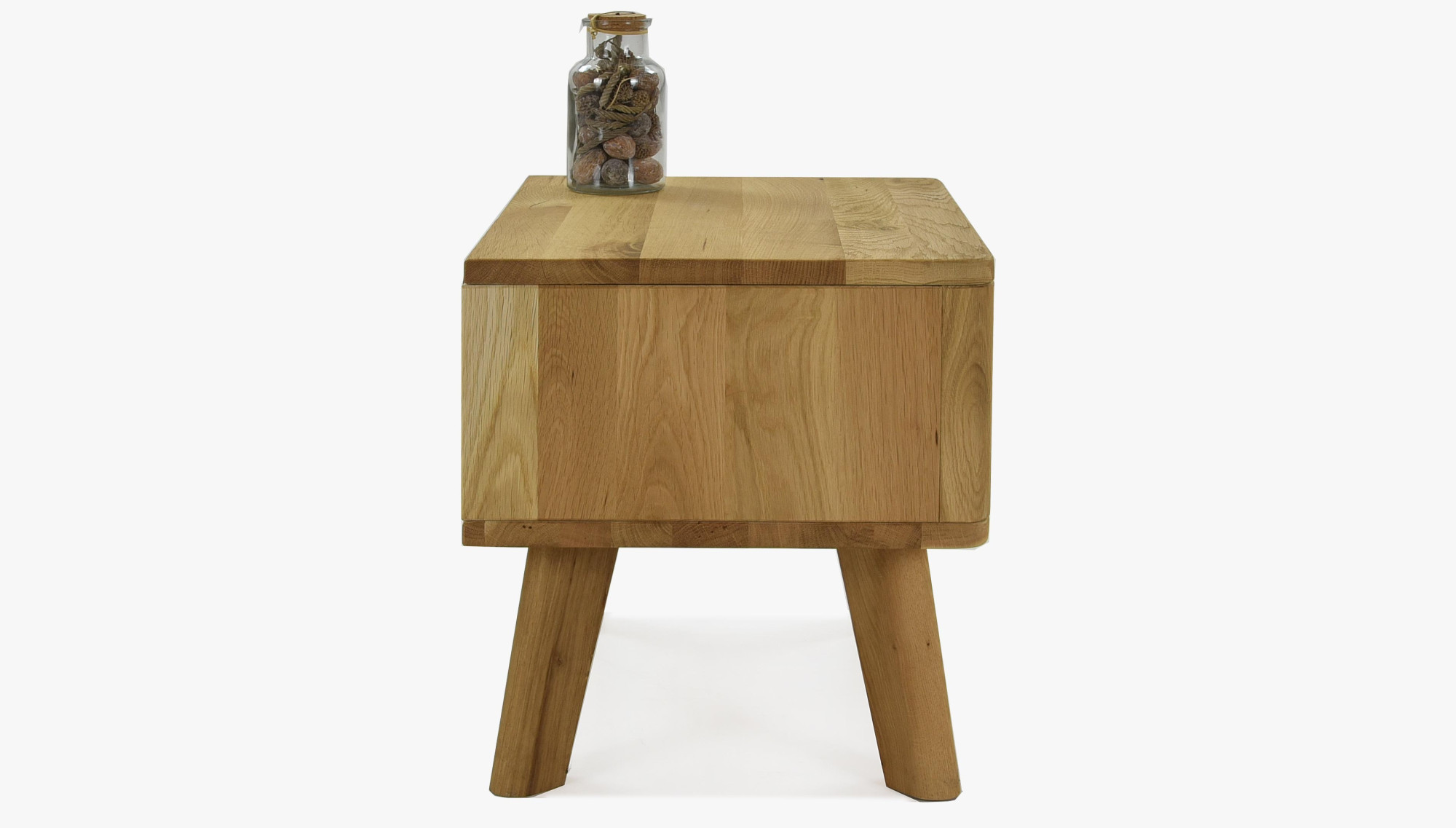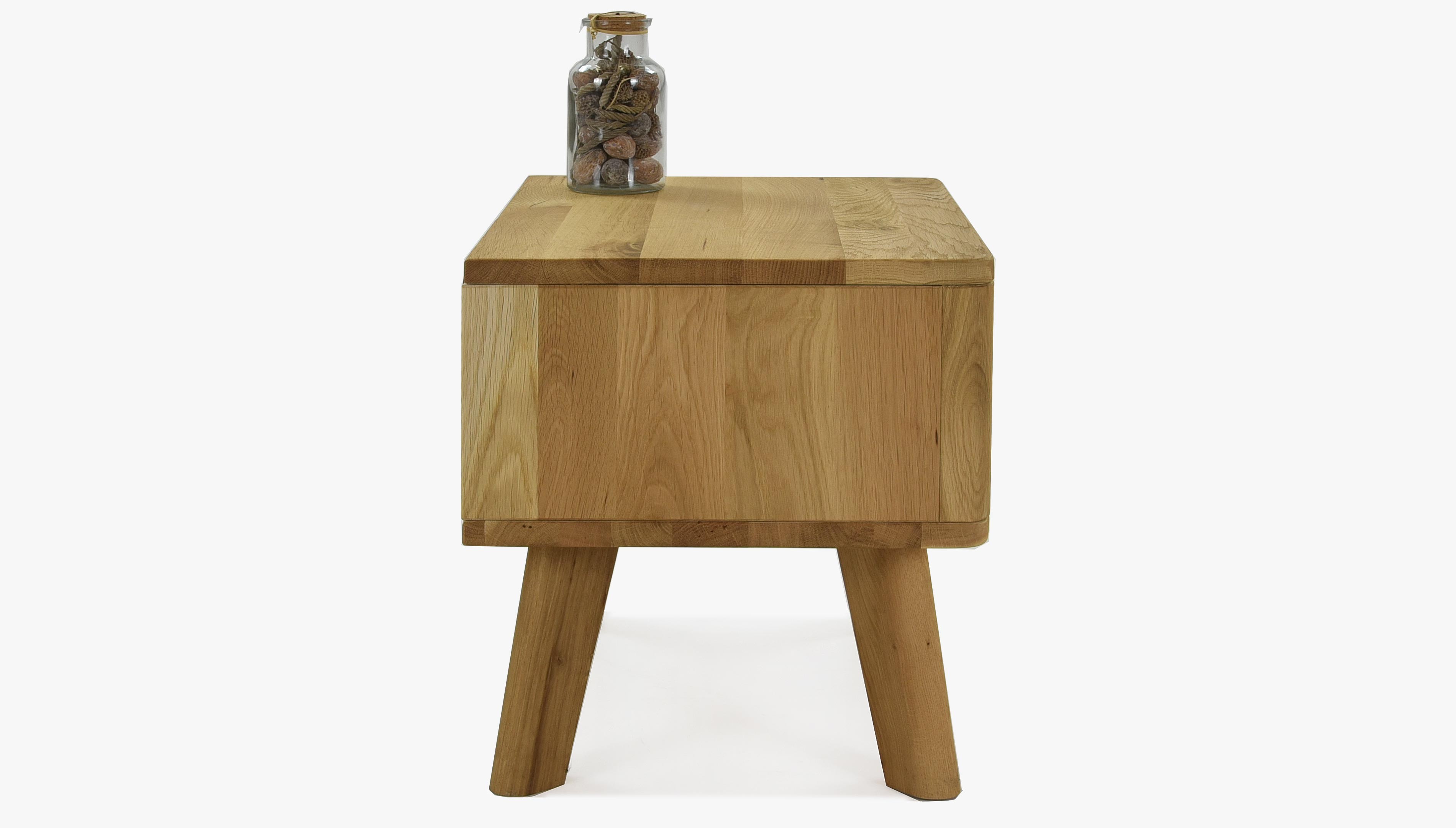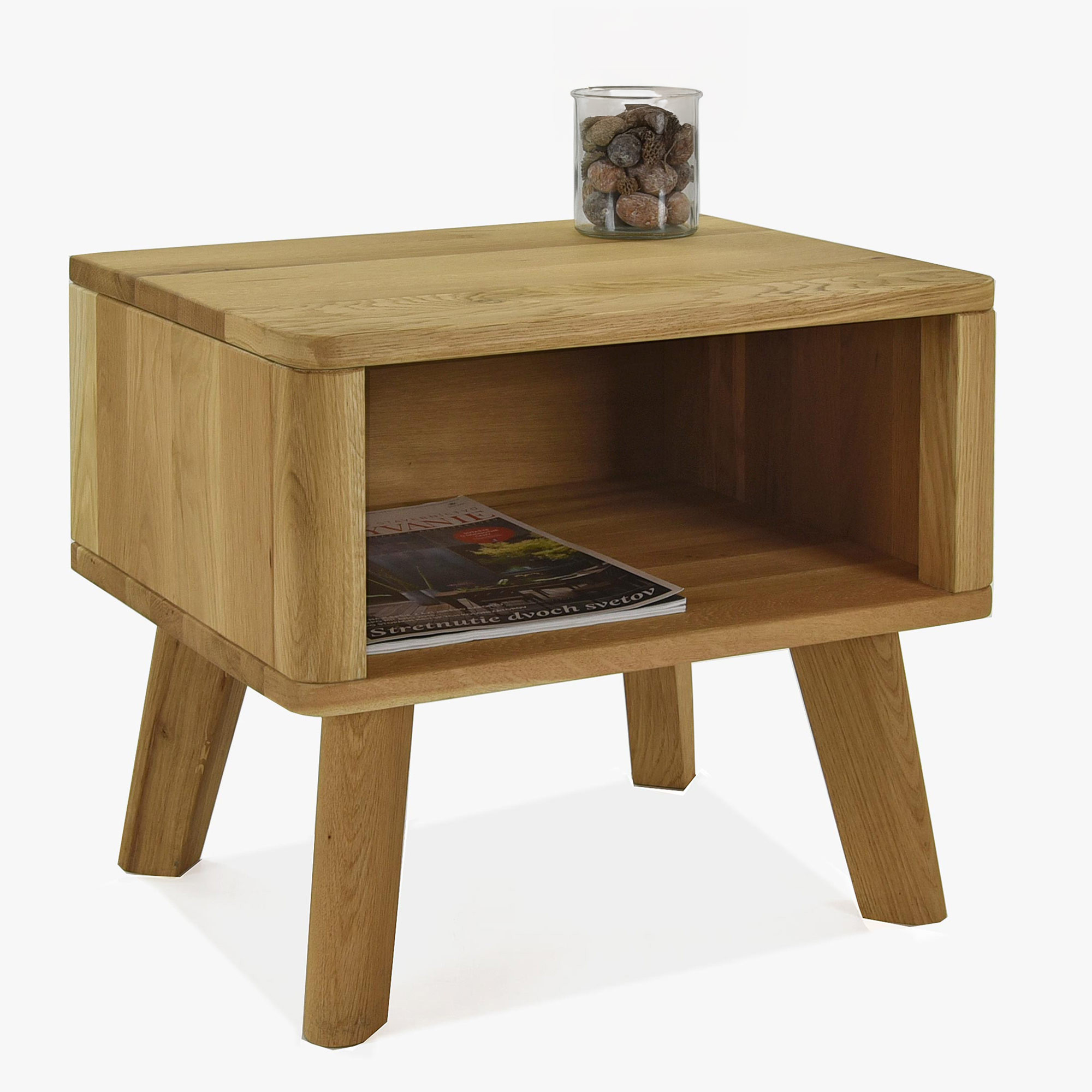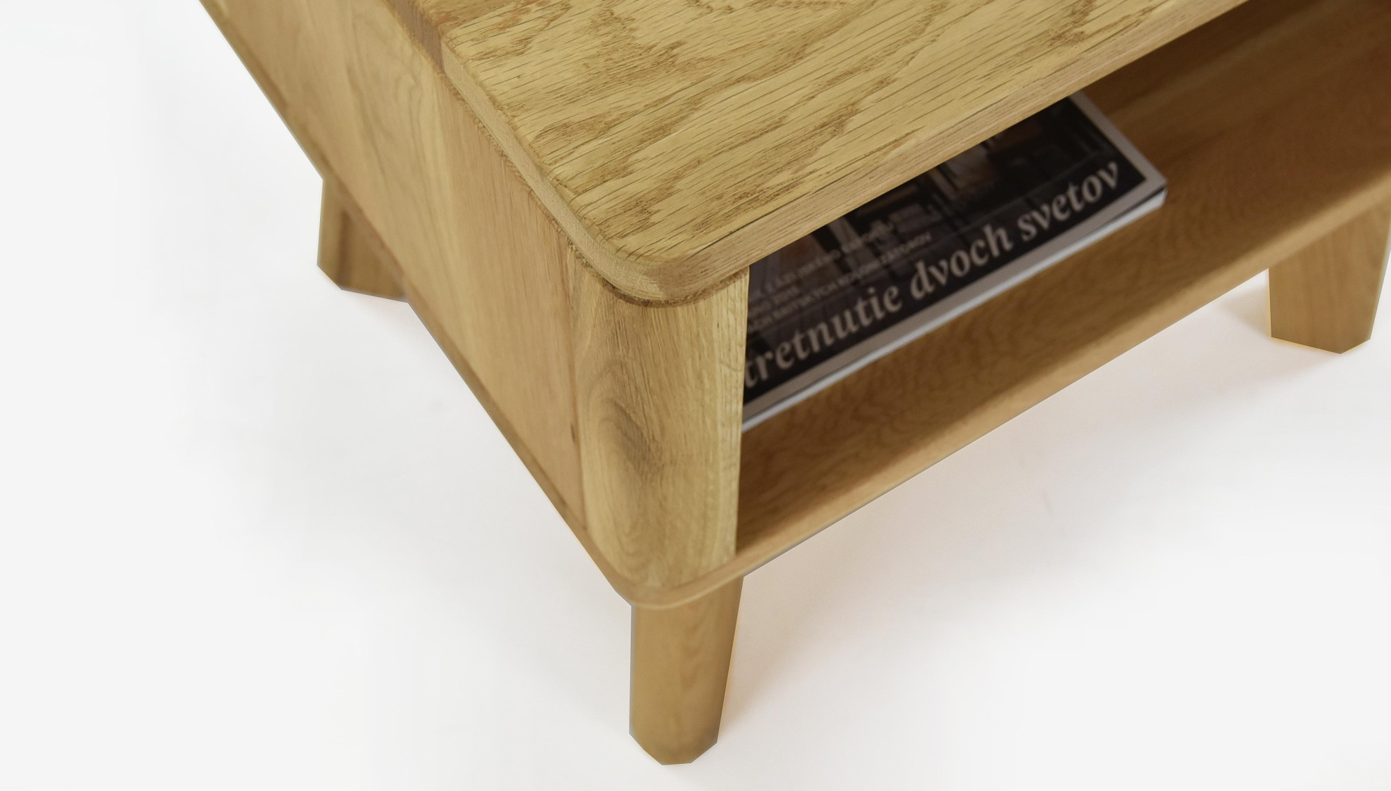 Nočný stolík Marina z masívneho dubu v prírodnom olejovanom prevedení je dokonalým doplnkom vašej spálne. Vyrobený zo 100% dubového masívu, tento praktický nočný stolík sa dodáva už kompletne zmontovaný a pripravený na okamžité použitie. Vďaka svojmu nadčasovému dizajnu s jemne zaoblenými hranami ideálne ladí s dubovými posteľami z hranolov a vytvára harmonický celok. Otvorená polica ponúka univerzálny úložný priestor – či už na knihy, časopisy, svetlo, budík alebo vaše obľúbené dekorácie. Masívne dubové drevo ošetrené prírodným olejom dodáva každému kusu jedinečnú textúru a charakteristický vzhľad, ktorý z vašej spálne urobí útulné miesto na oddych.