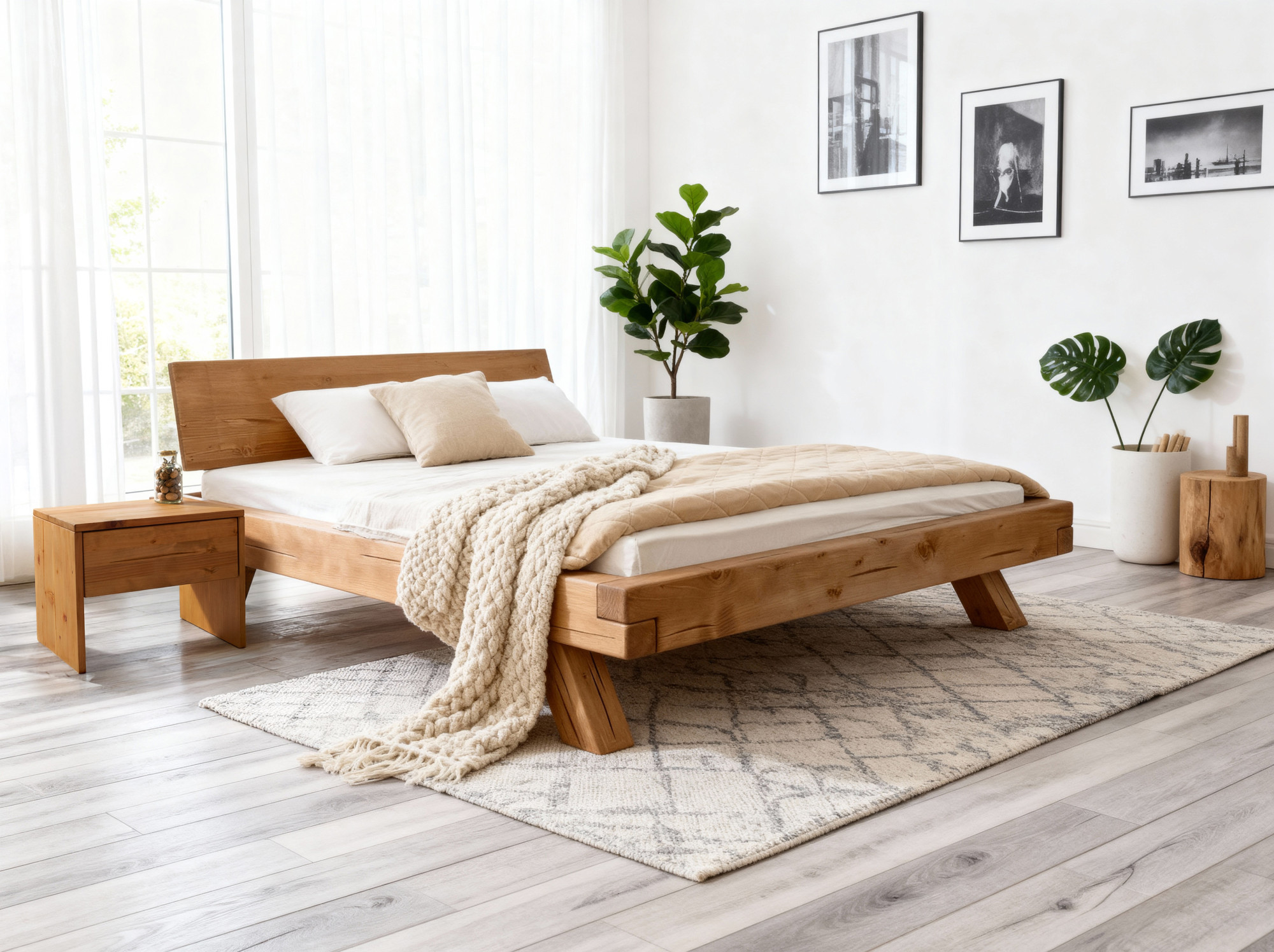 Nočný stolík smrekový z masívu v odtieni honey – praktický doplnok k masívnym posteľám