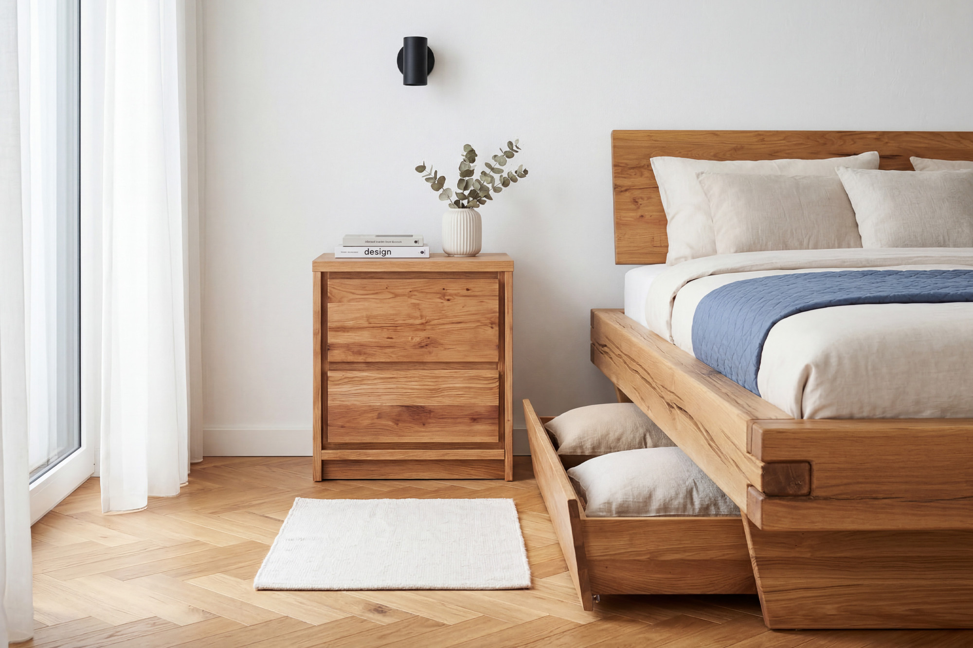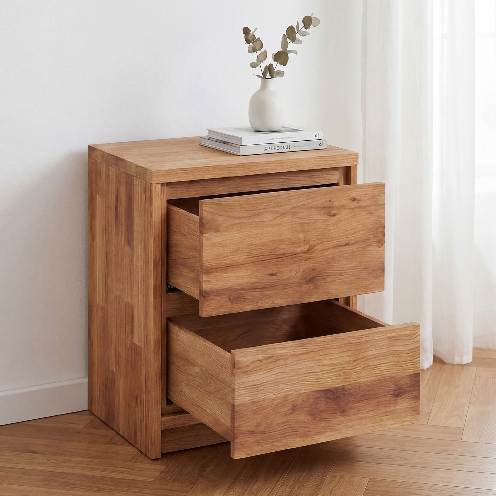 Nočný stolík z dubu – 2 zásuvky