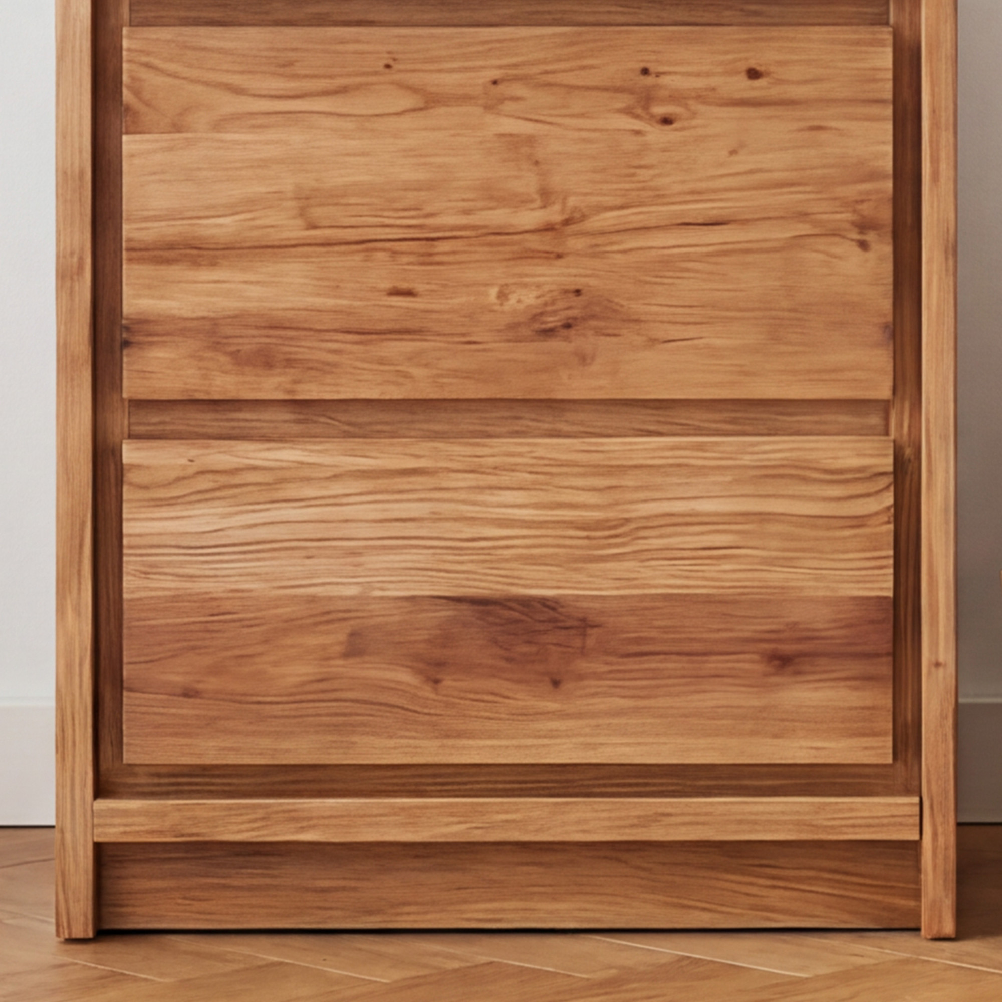 - Materiál: masívny divoký dub s výraznými sukmi a dekoratívnymi prasklinami