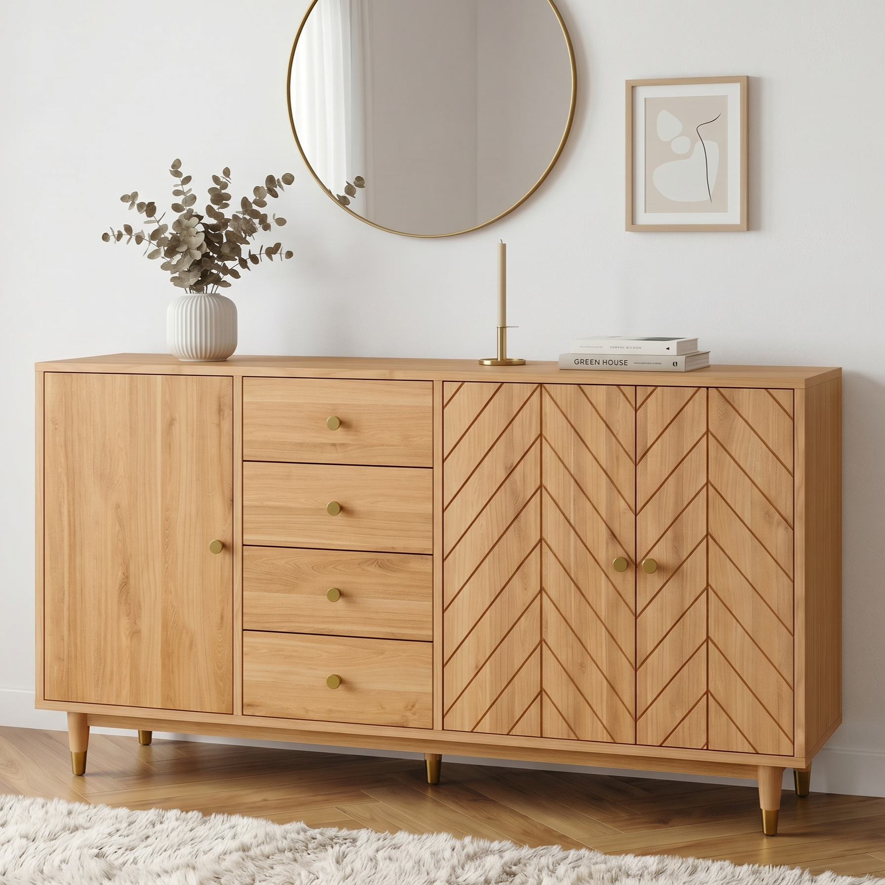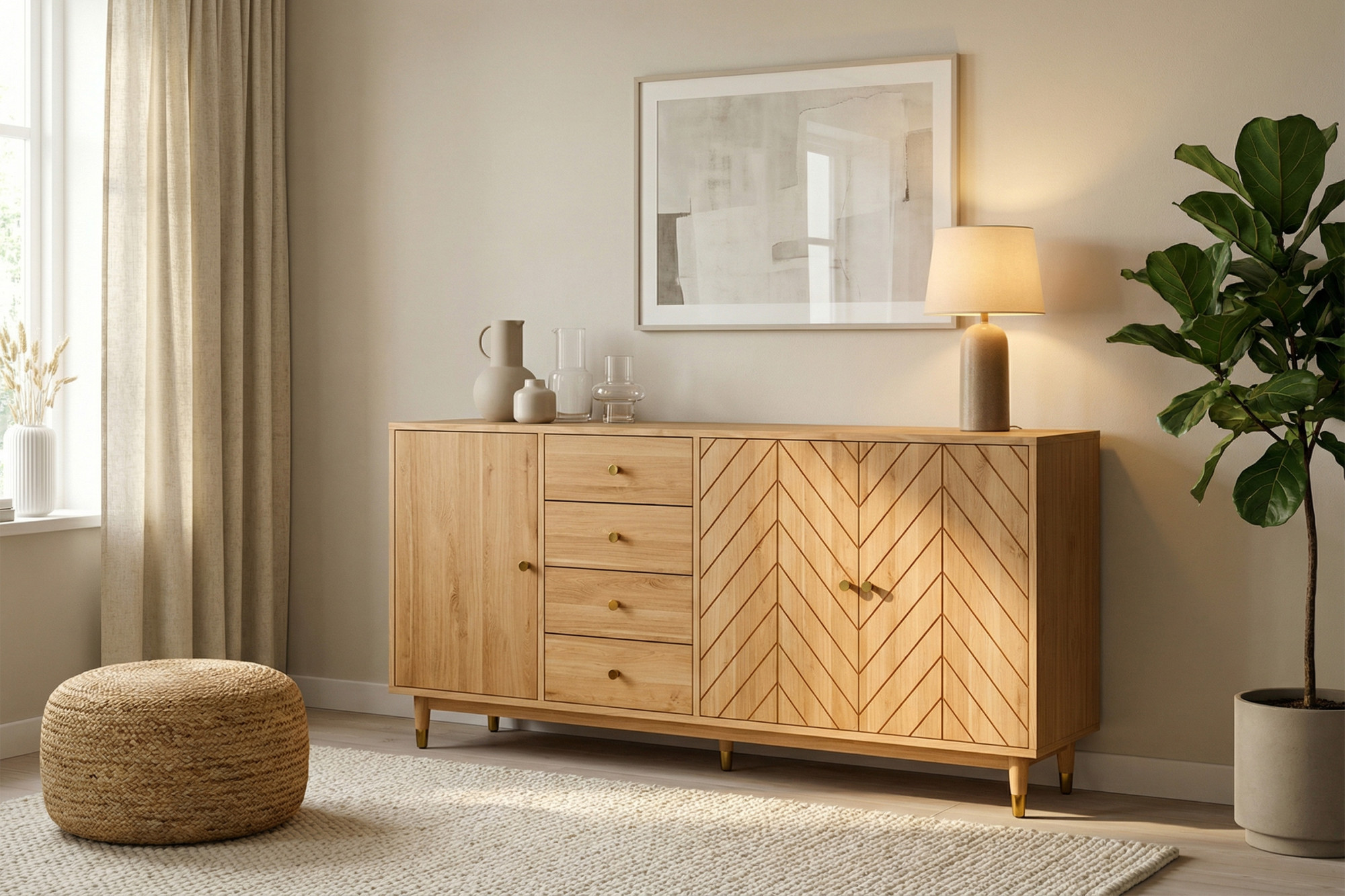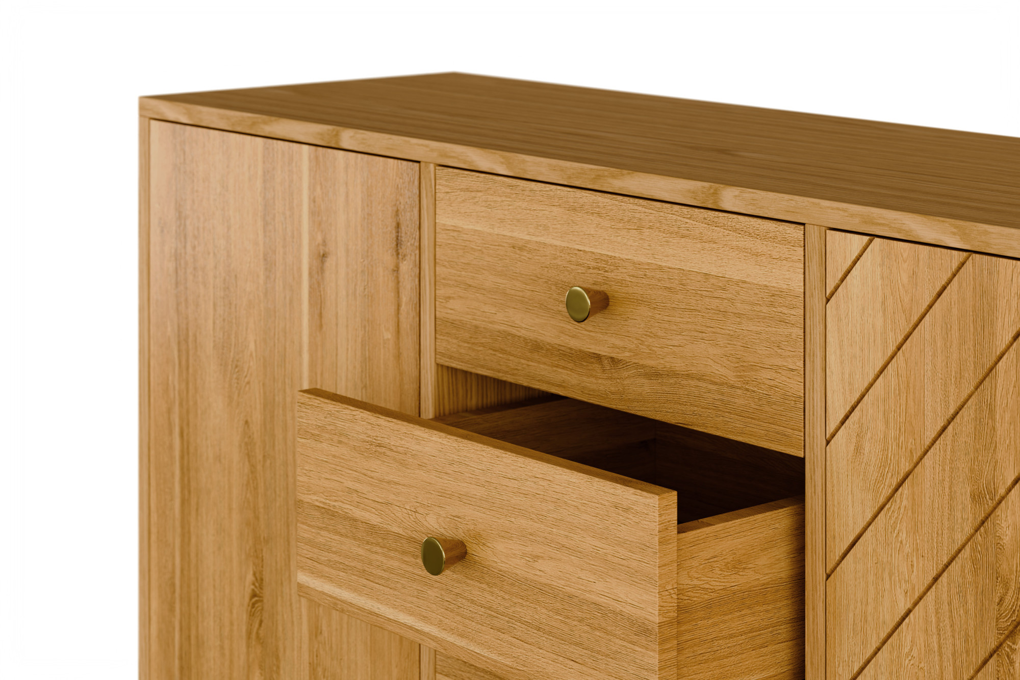 Masívna dubová komoda Jessica 190 cm s frézovaným vzorom rybej kosti – elegantná komoda do obývacej izby