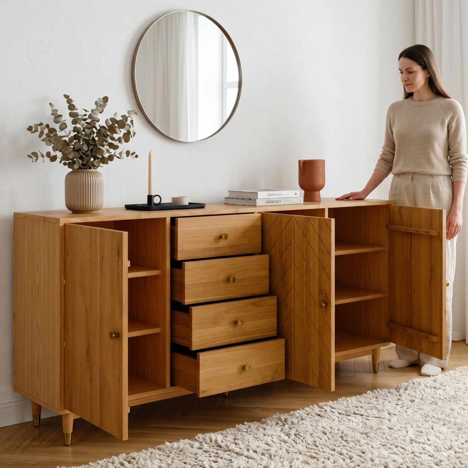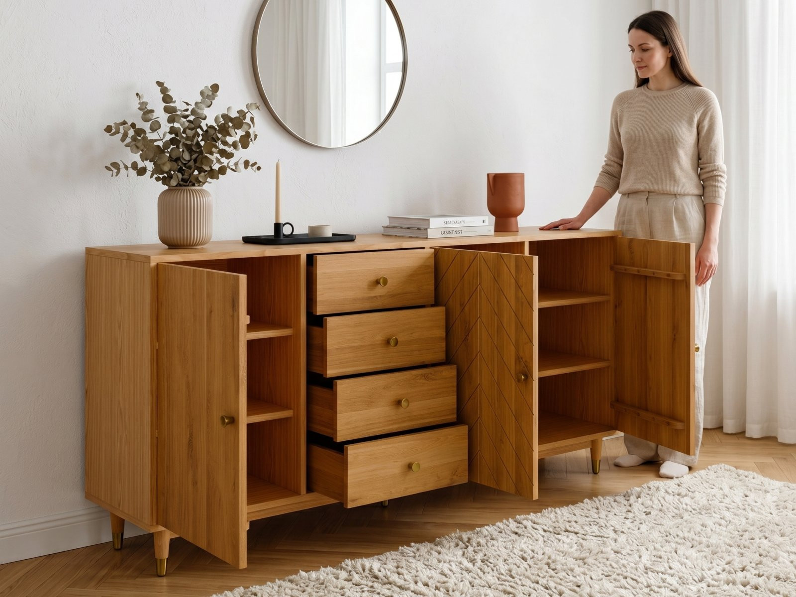 Povrch odporúčame pravidelne utierať suchou handričkou. Pre dlhodobé zachovanie krásy dreva je vhodné nábytok 1–2x ročne ošetriť olejom. Podrobný návod nájdete tu. - Má komoda dostatok úložného priestoru?