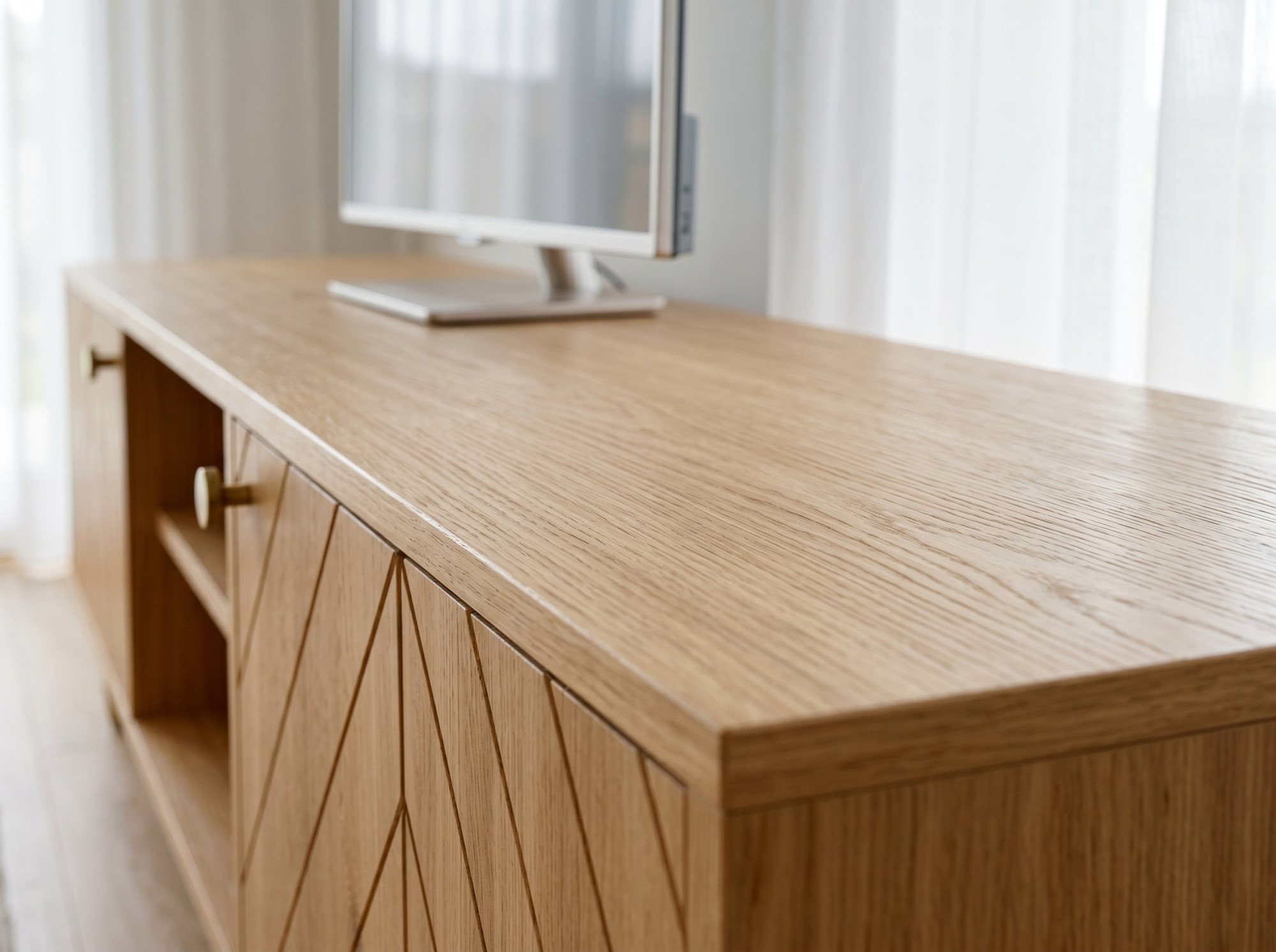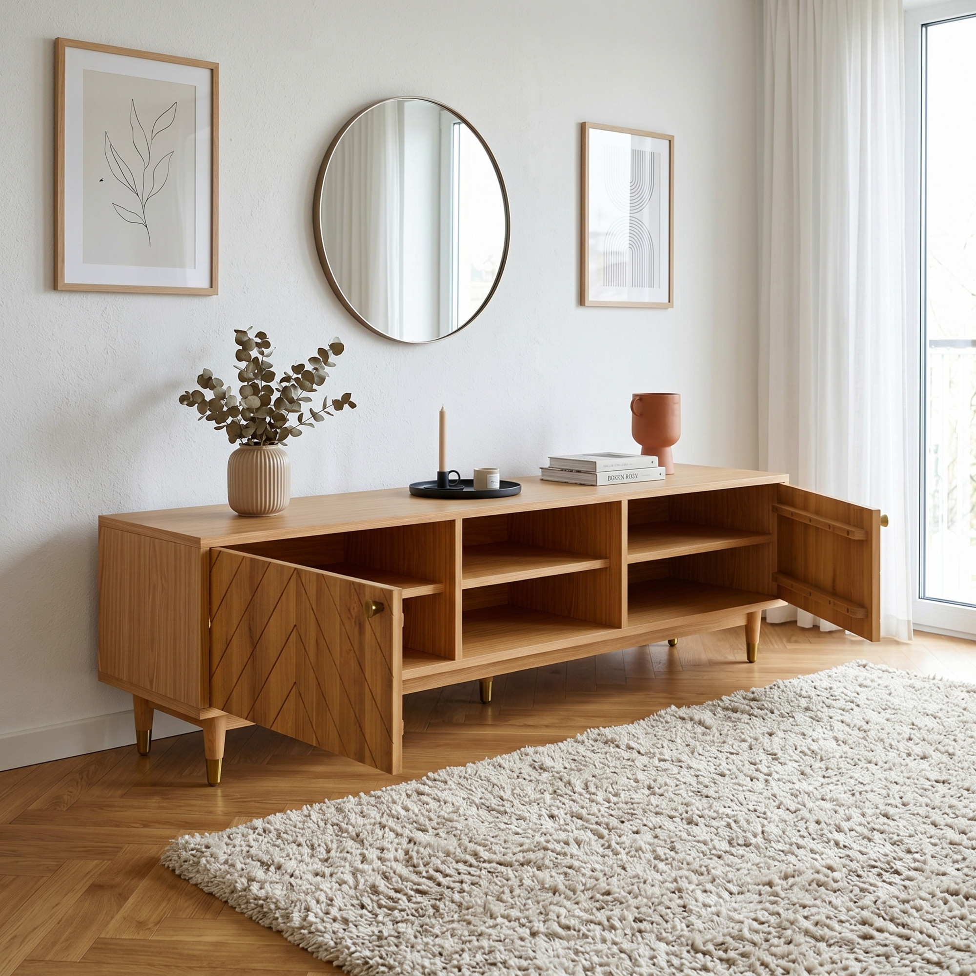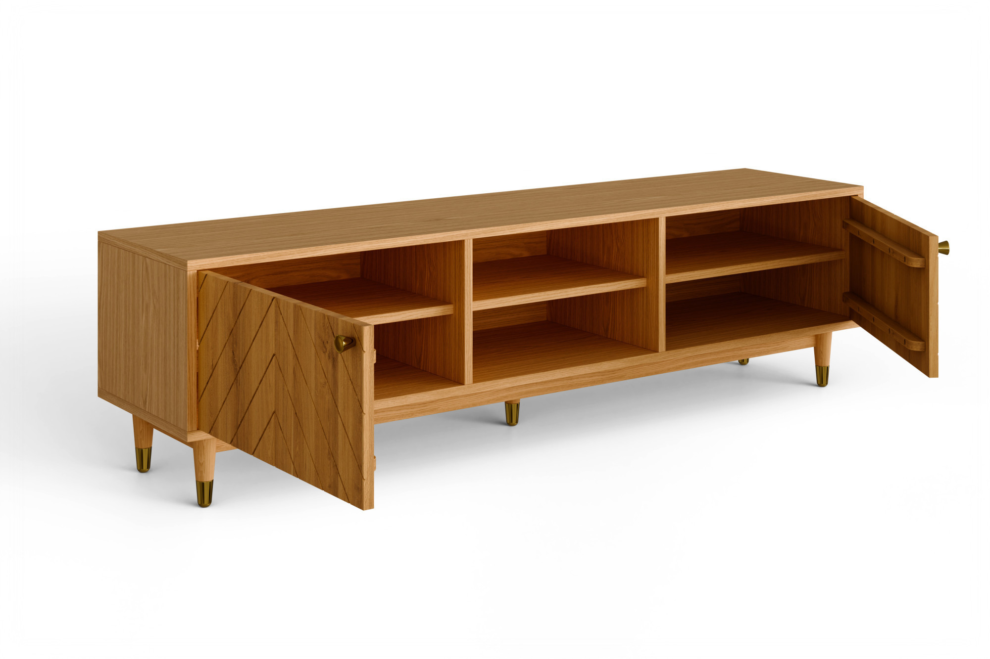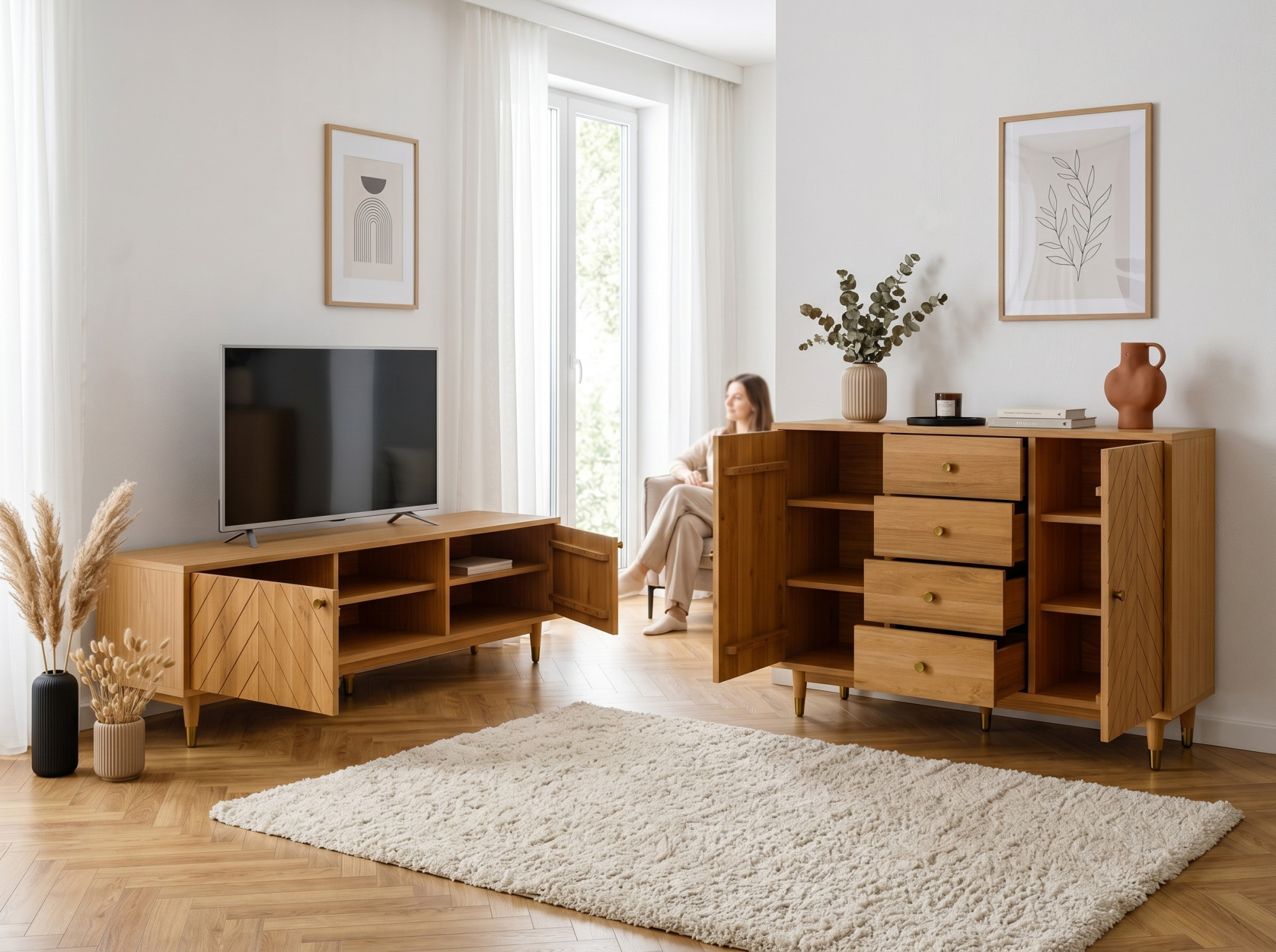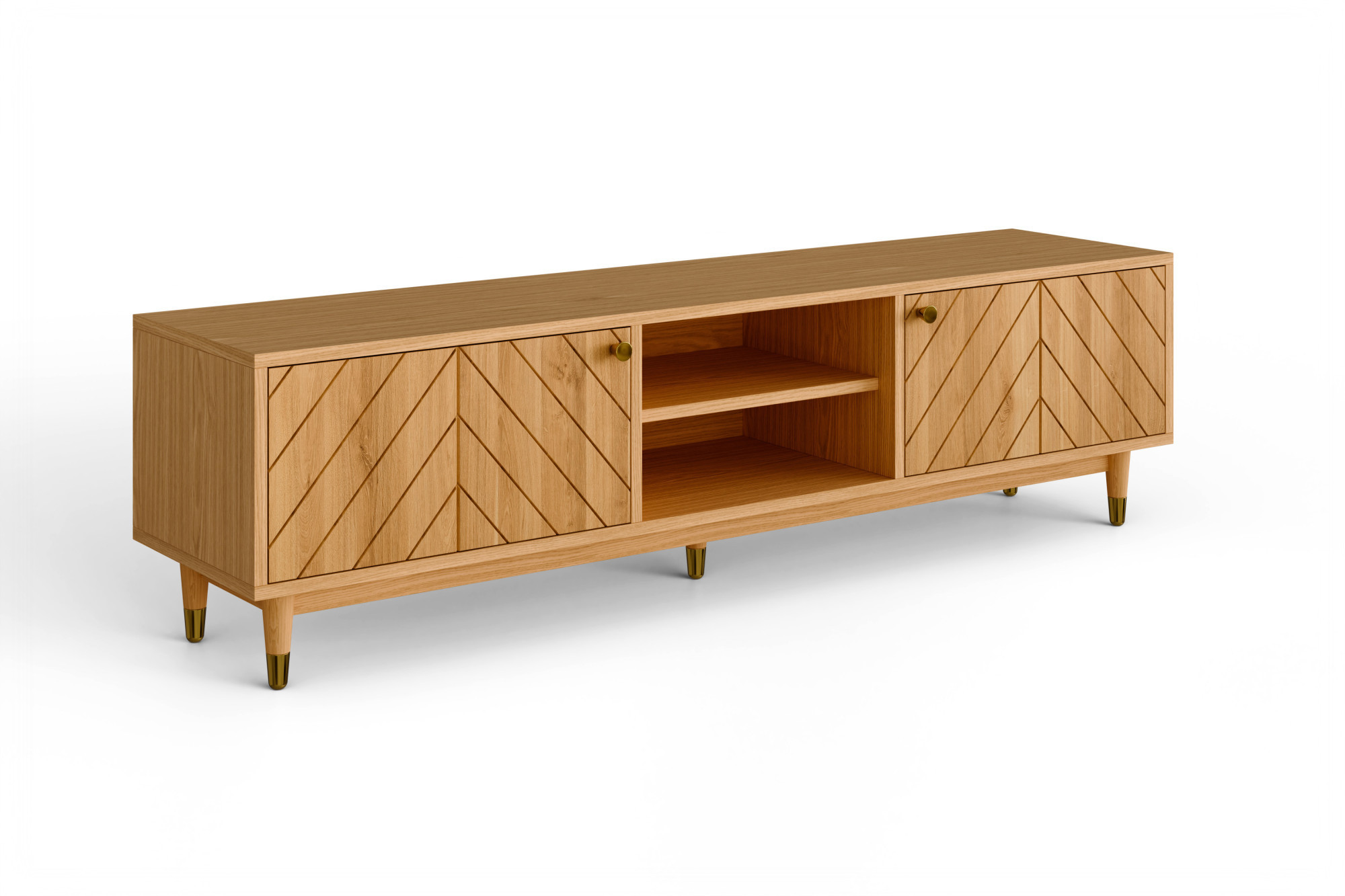 Masívna TV komoda Jessica 179 cm s frézovaným vzorom rybej kosti – dubová komoda do obývacej izby