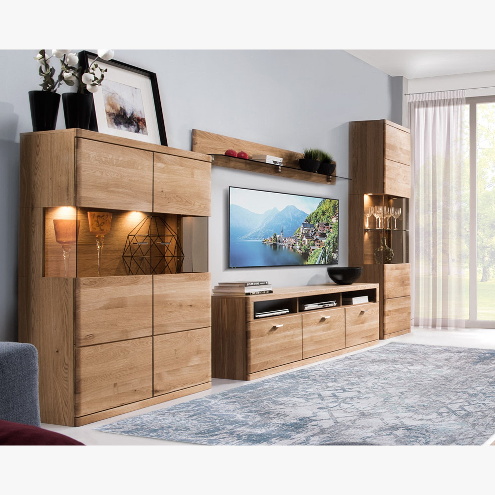 Nábytok do obývačky vyrobený z masívneho dubového dreva v kombinácii s prírodnou dubovou dyhou má krásny nadčasový moderný vzhľad. Nákupom u nás získate záruku najrýchlejšieho dodania, nábytok vám profesionálne doručíme vlastnou dopravou. Našou výhodou je aj to, že vám minimálne 48 hodín vopred oznámime presný čas dodania vašej novej obývacej zostavy. Obývacia stena Boston obsahuje 4 prvky, pričom výhodou je, že svoju zostavu môžete rozšíriť o ďalšie kusy nábytku.