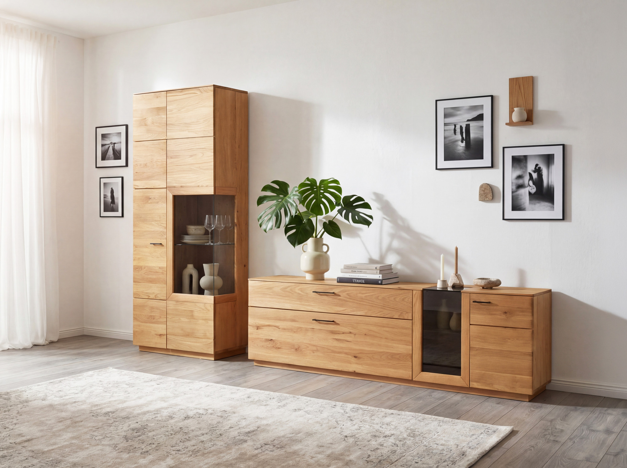 S touto trojdielnou obývacou stenou z masívneho dubu získate ucelené a harmonické riešenie pre vašu obývačku. Kombinácia vitríny, TV komody a nástenného panelu ponúka maximálny úložný aj prezentačný priestor v jednotnom elegantnom dizajne. Naša spoločnosť pôsobí na trhu od roku 1993 a ročne obslúžime viac než 50 000 spokojných zákazníkov po celej Európskej únii. Disponujeme vlastnou dopravou – nábytok nakladáme v našom sklade a vykladáme priamo u vás doma. Bežne doručujeme do SK, CZ, HU, AT a PL, za príplatok zabezpečíme aj výnos do bytu. Nakupujete priamo od výrobcu za výhodné ceny bez prirážok sprostredkovateľov. Objednajte ešte dnes!