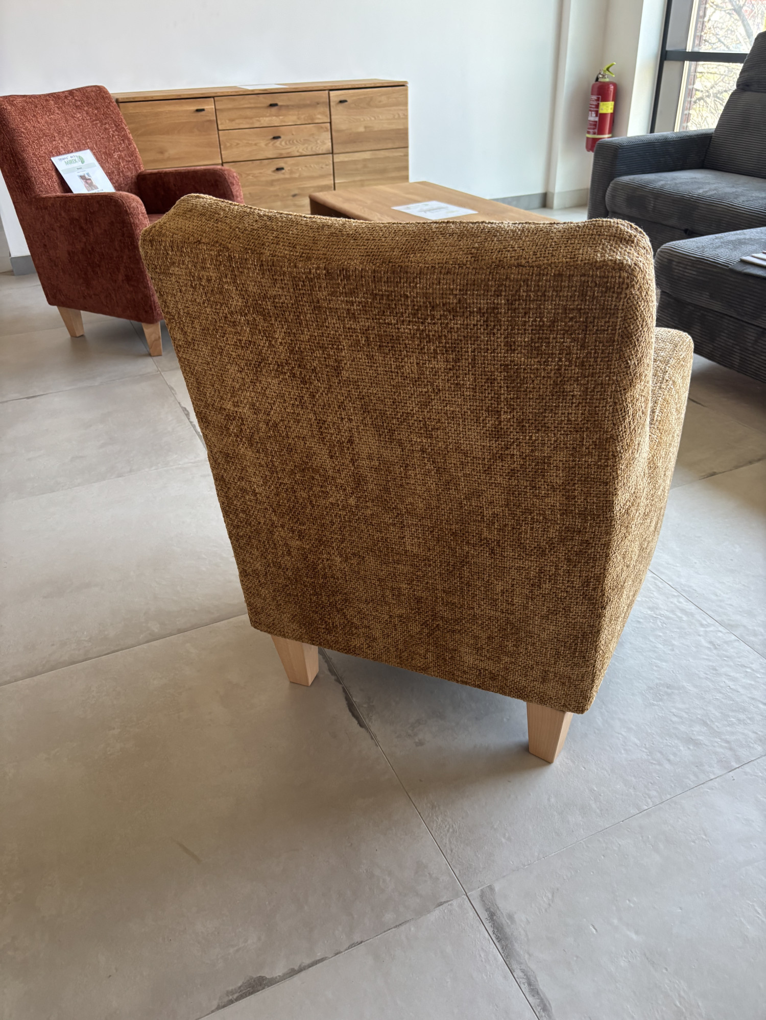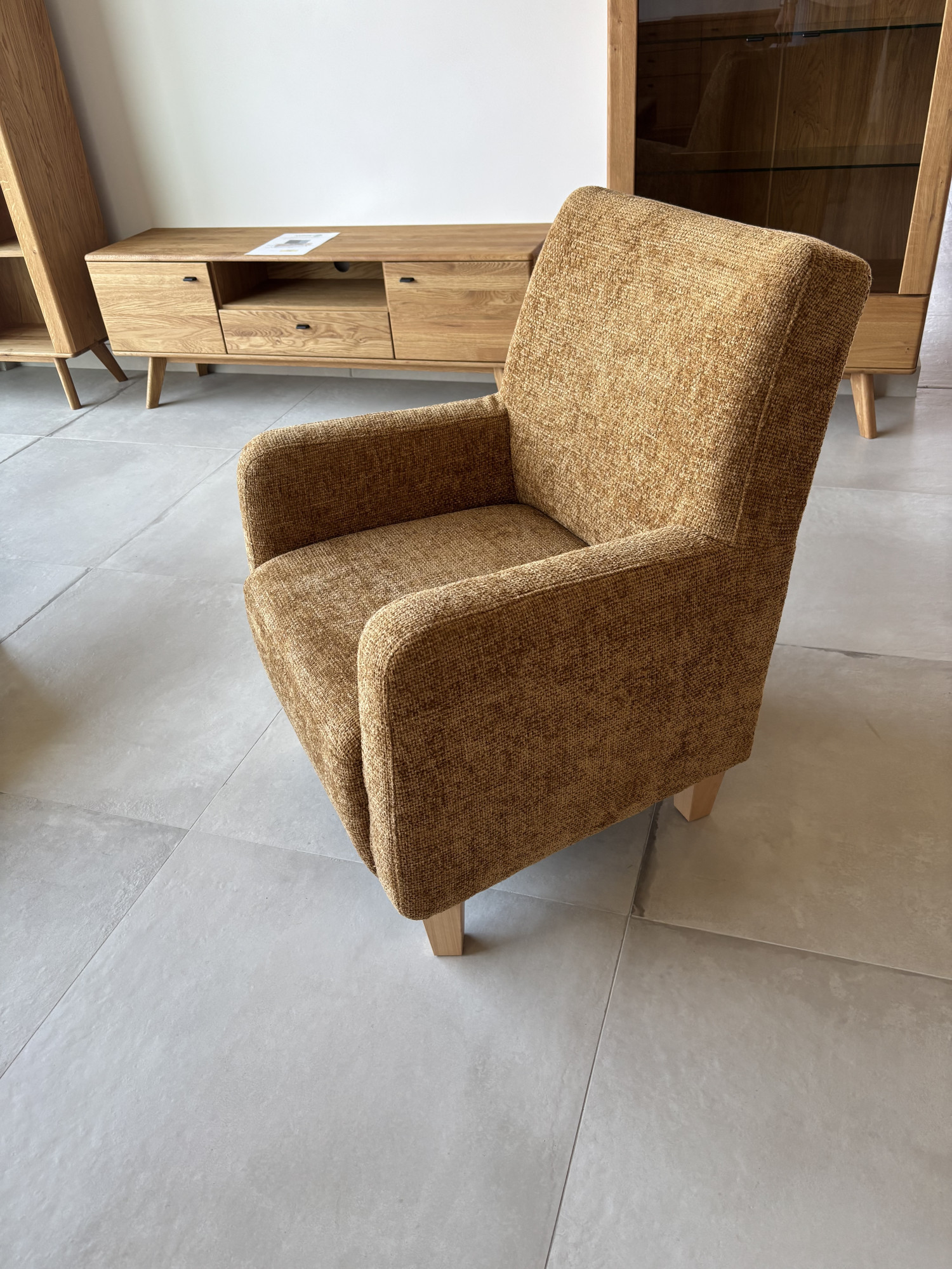 Pohodlné kreslo do obývacej izby Bosse – výstavný model