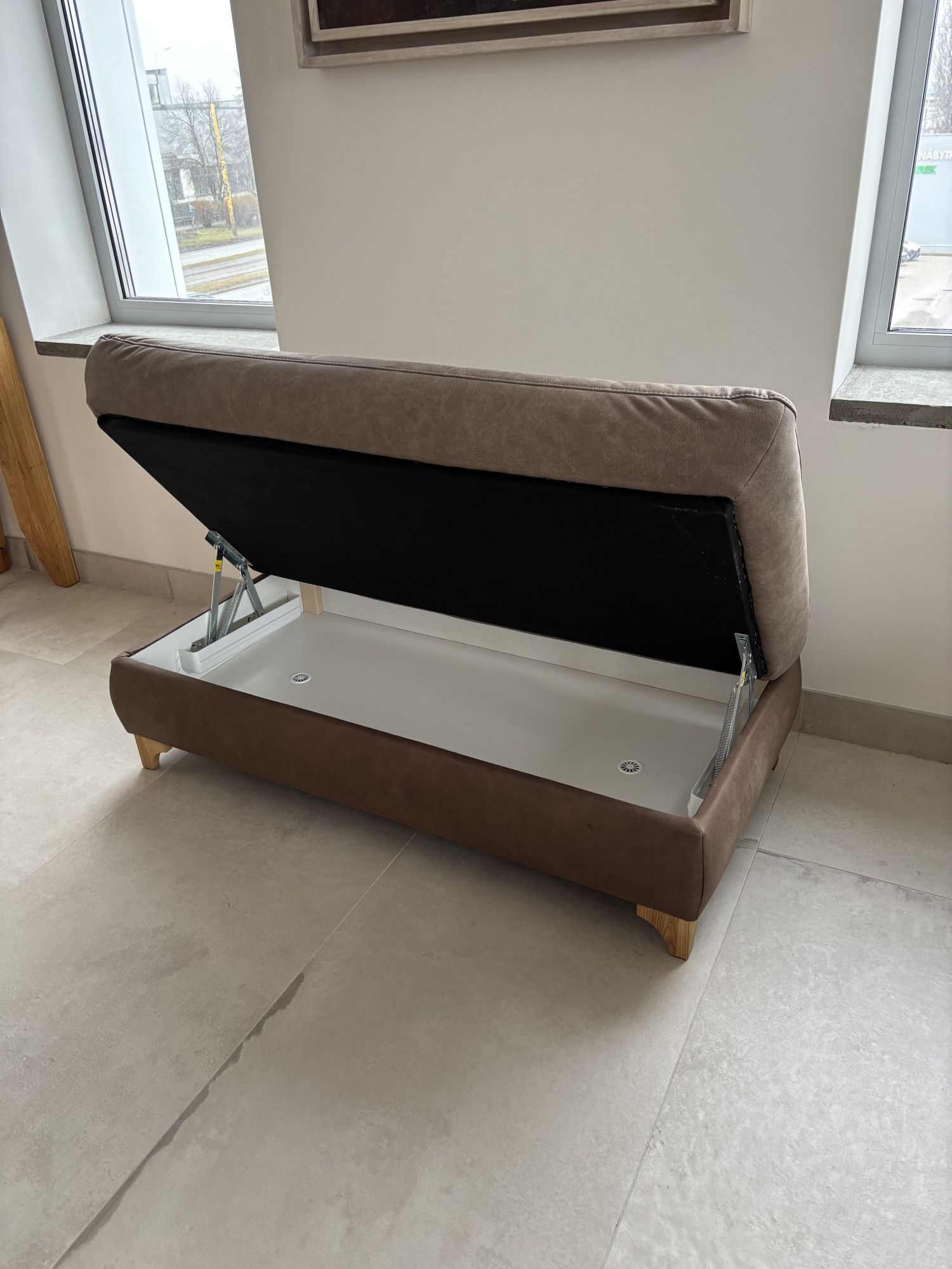 Vystavený kus z predajne v perfektnom stave, čalúnený kvalitnou látkou Bingo, ktorá svojim vzhľadom i štruktúrou pripomína pravú kožu a pôsobí elegantne a luxusne.