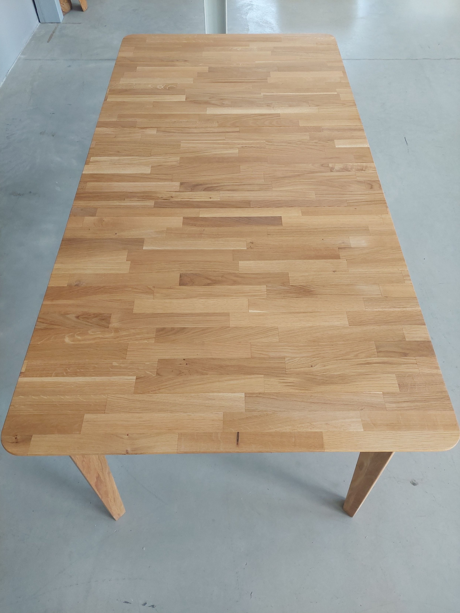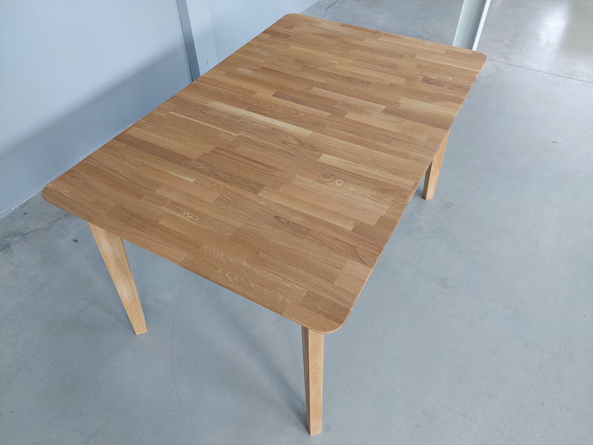 Povrch stola je ošetrený značkovým dánskym olejom Borma Wachs Hardwax Parquet Oil 1030, špeciálne určeným pre dubový masív. Olejová úprava: