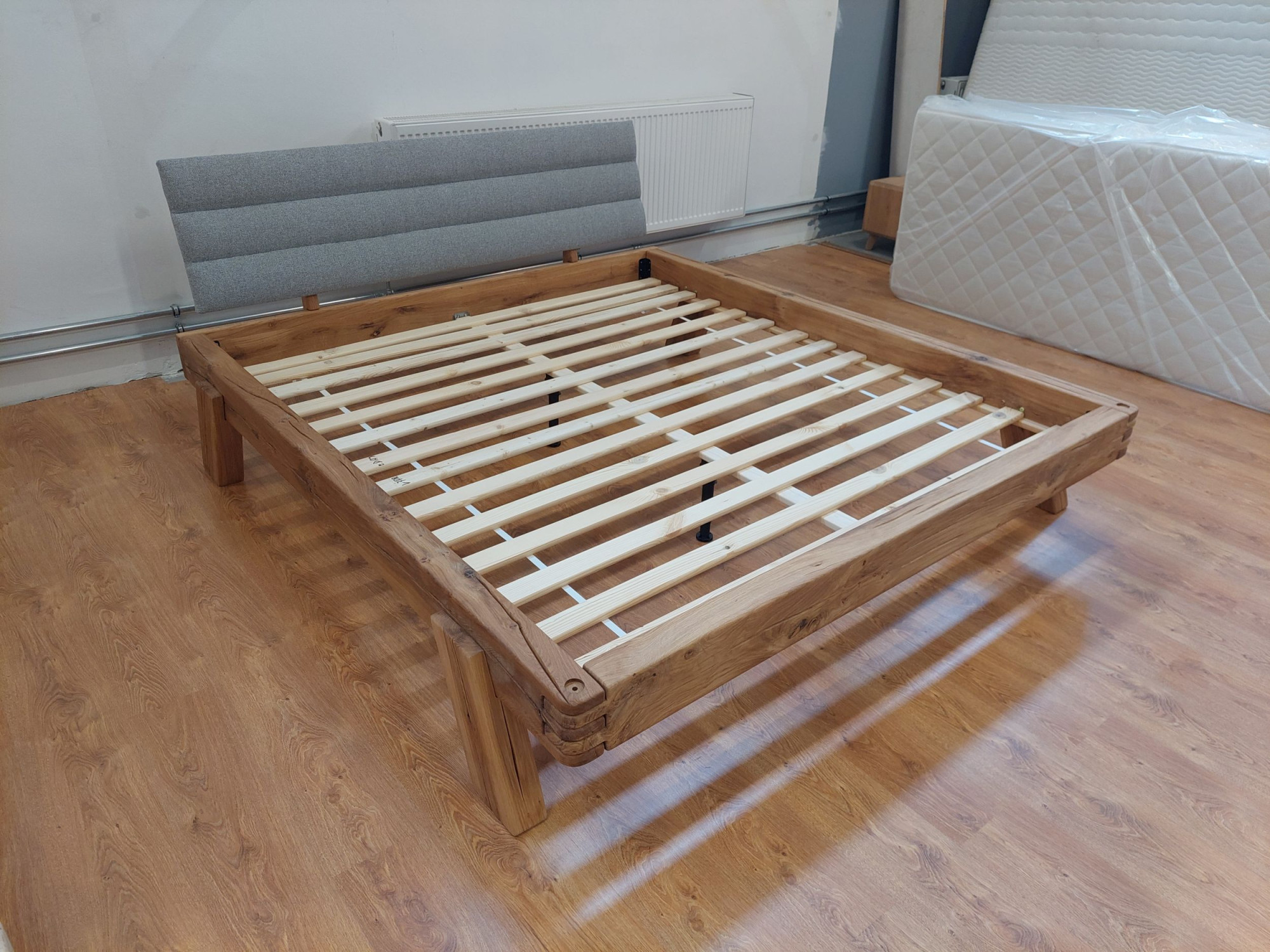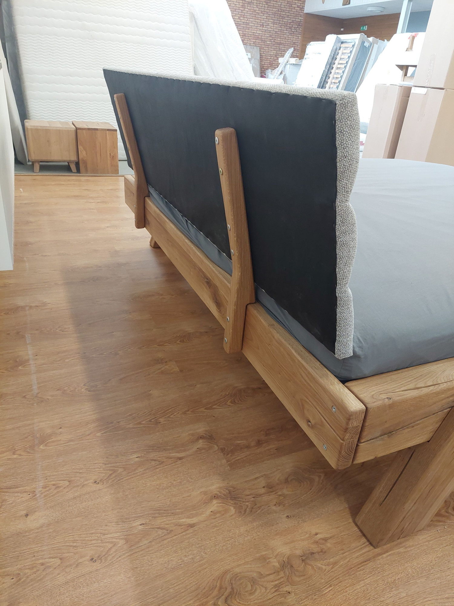 Dubová posteľ s čalúneným čelom 180×200 – výstavný kus